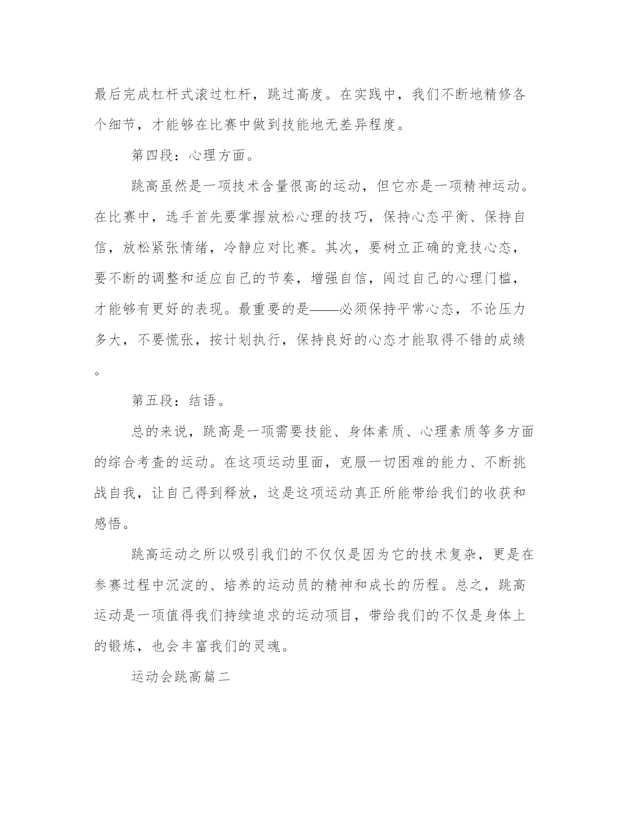 最新运动会跳高跳高运动心得体会(优秀9篇)