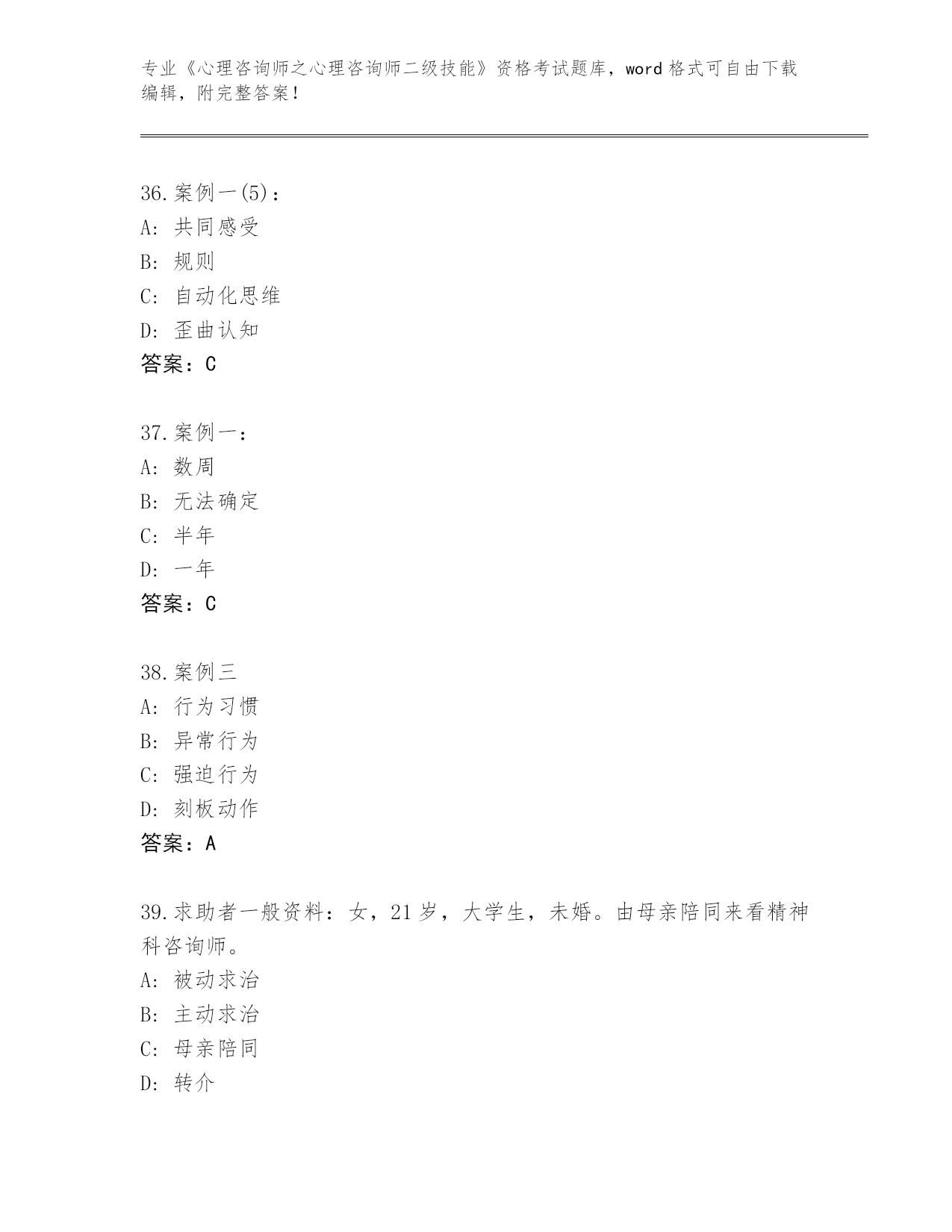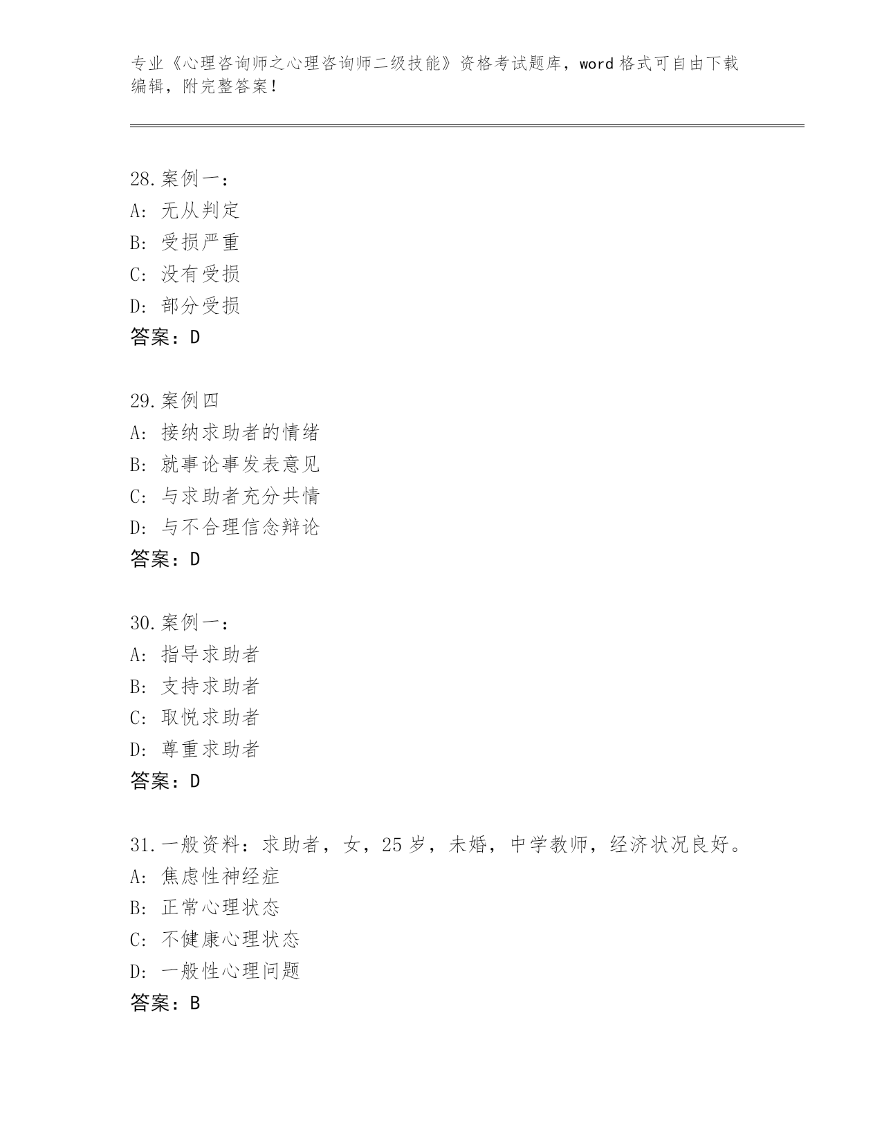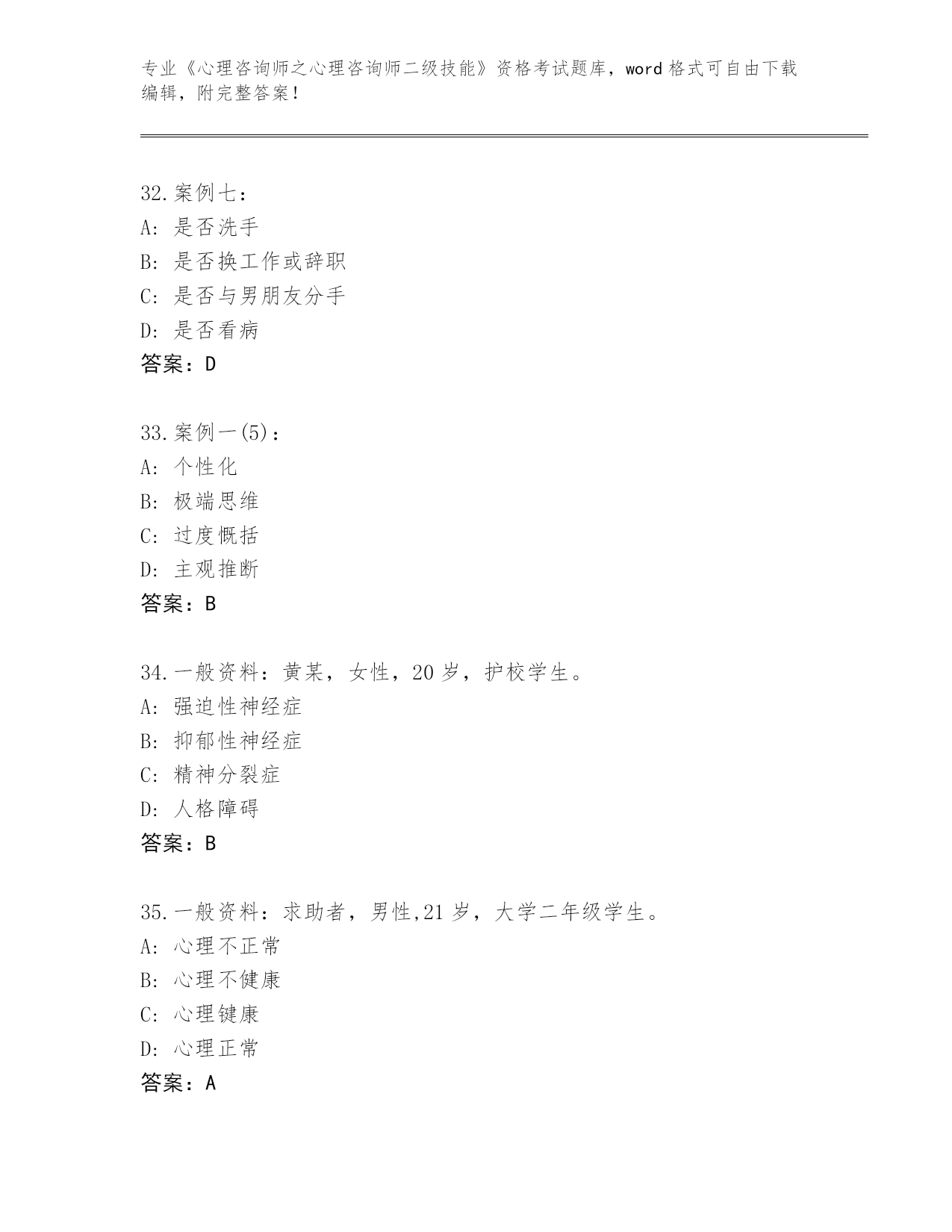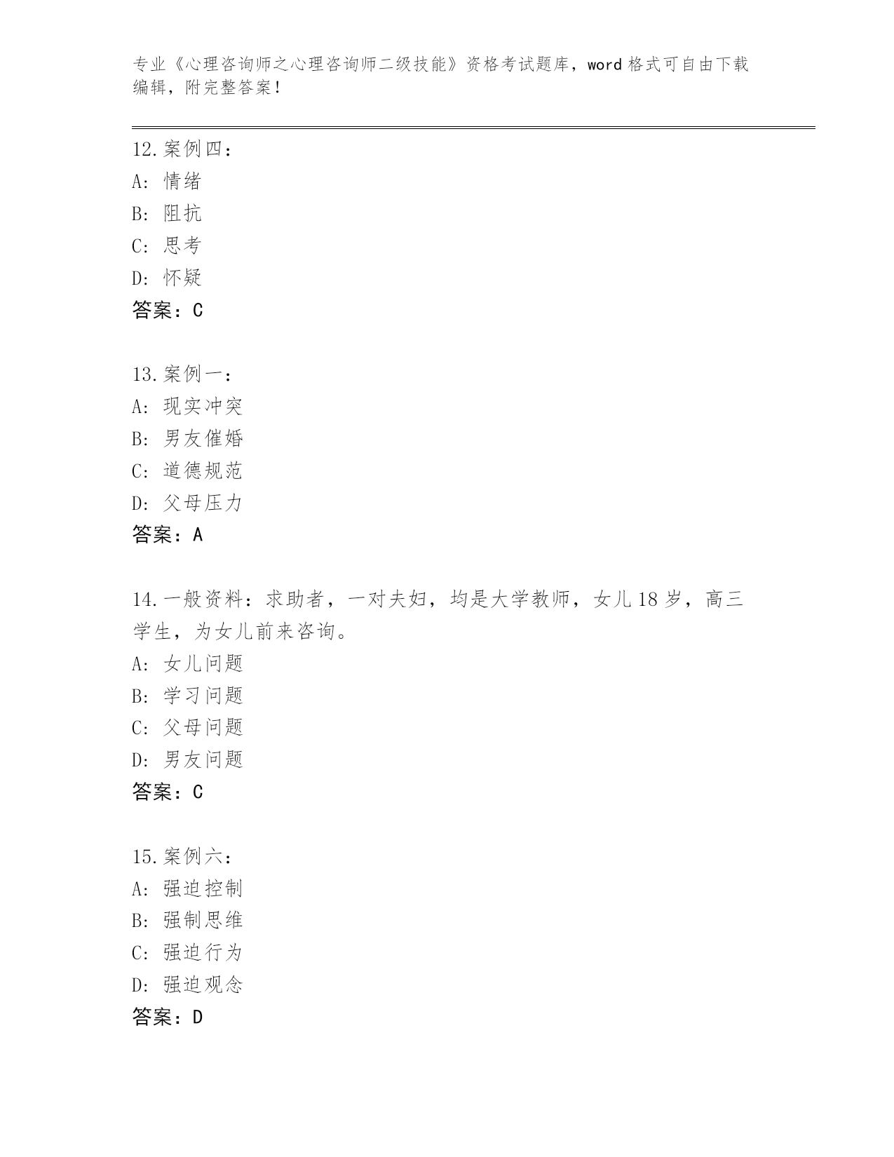 整理陕西省宝塔区《心理咨询师之心理咨询师二级技能》资格考试必刷200题(各地真题)