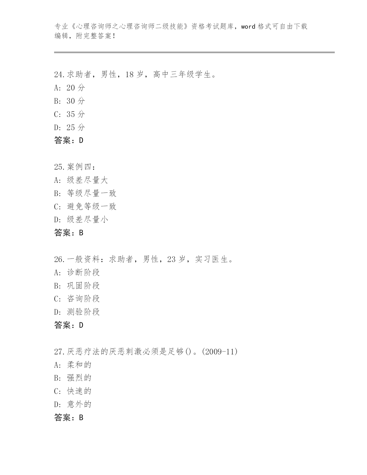 陕西省柞水县2024《心理咨询师之心理咨询师二级技能》考试必刷200题(名师推荐)