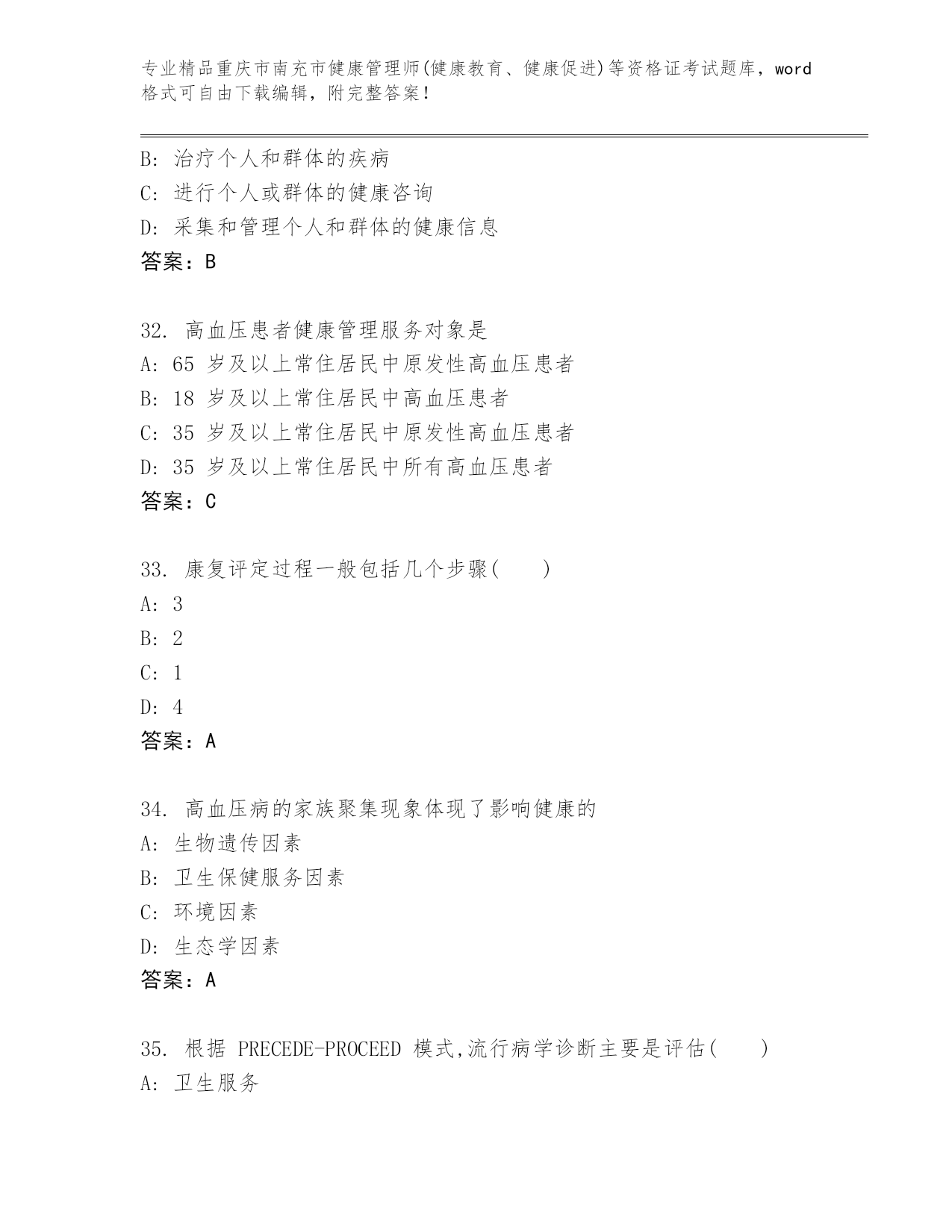 历年重庆市南充市健康管理师(健康教育、健康促进)等资格证考试真题题库(全优)