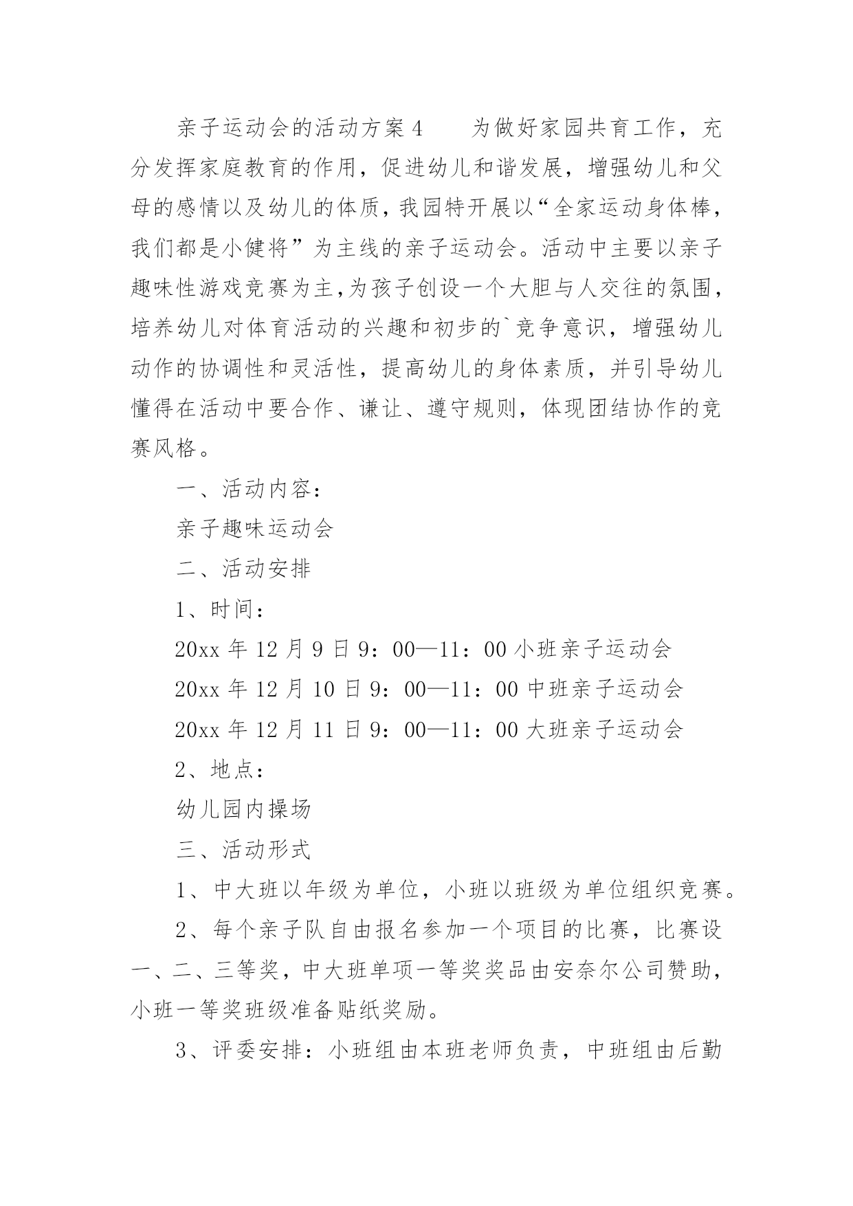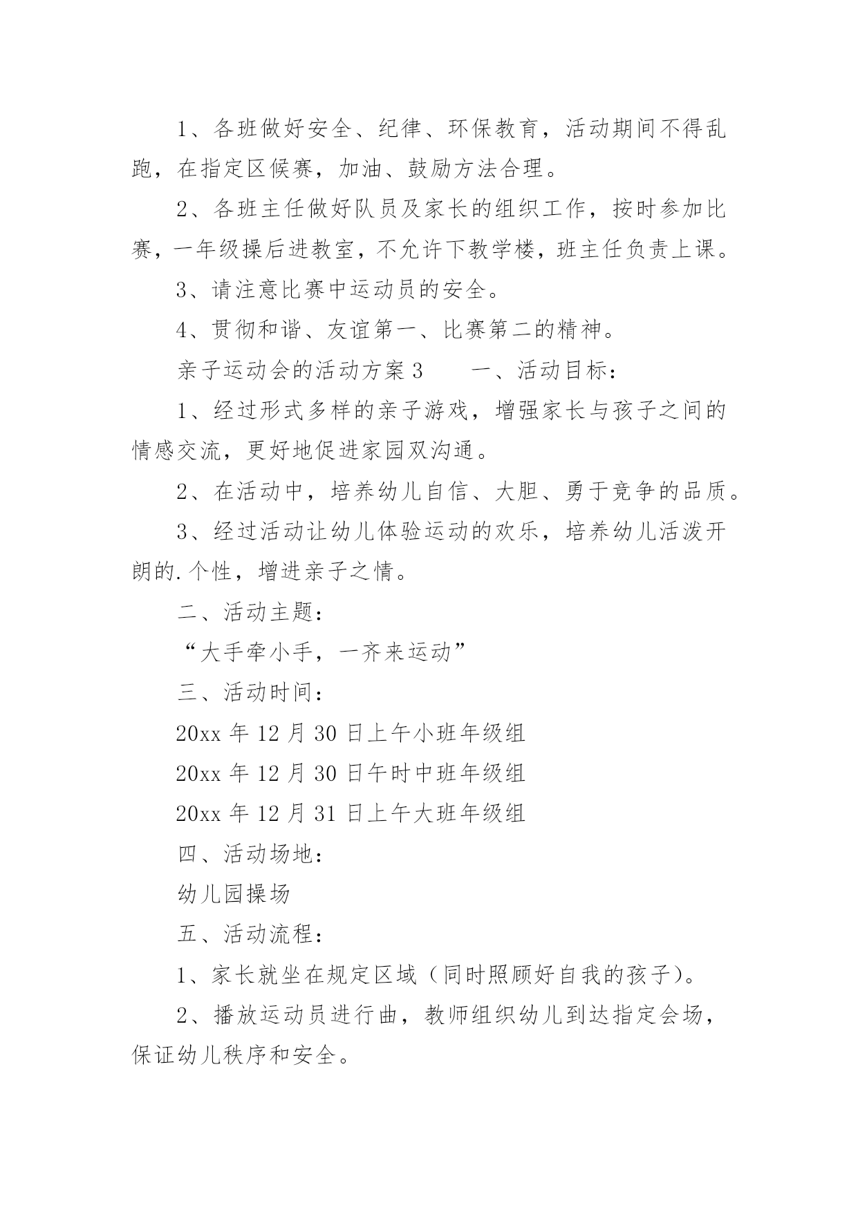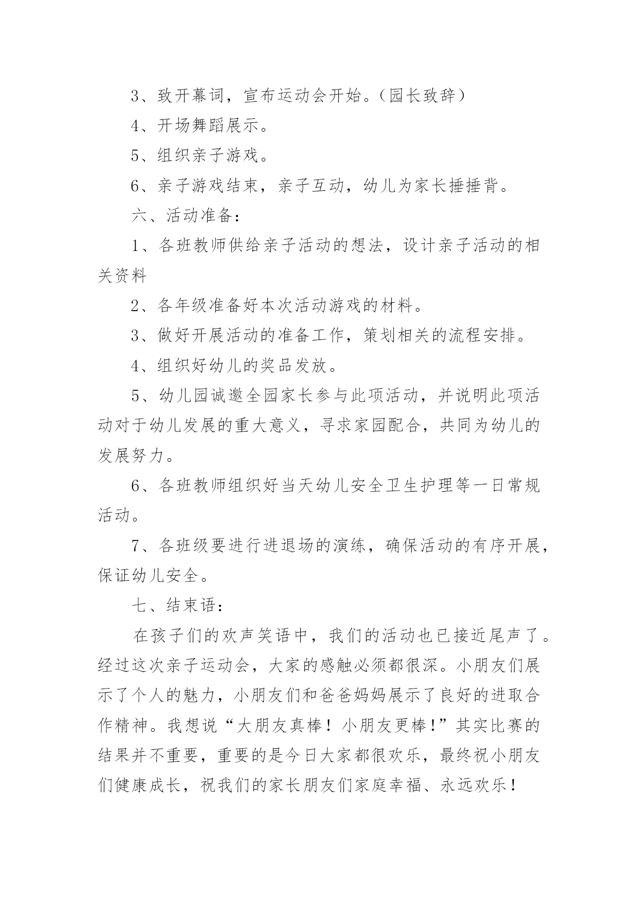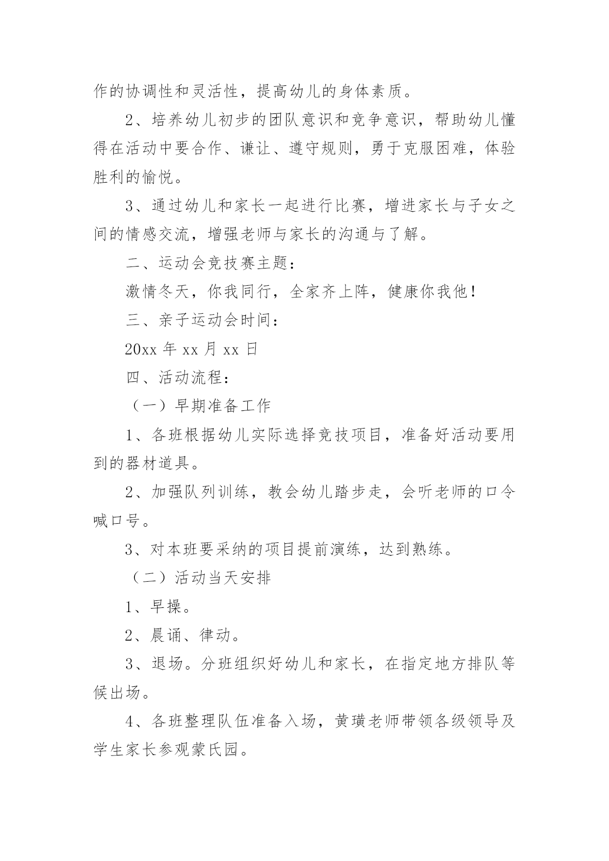 亲子运动会的活动方案亲子运动会的活动方案(通用6篇)为有力保证活动开展的质量水平,我们需要提前开始活动方案制定工作,活动方案是综合考量活动相关的因素后所制定的书面计划。活动方案应该怎么制定才好呢?以下是小编帮大家整理的亲子运动会的活动方案(通用6篇),希望能够帮助到大家。亲子运动会的活动方案1一、活动背景:幼儿园这一学期开园已有,为了让家长对幼儿在园情景有一个更全面的了解,也为了增进亲子之间的感情。我园准备举办这次冬季亲子趣味运动会。经过好玩的亲子游戏,体验活动所带来的乐趣,增进幼儿与家人之间的.情感。同时增进家长和教师之间的沟通,促进家园合作,共同呵护幼儿成长。二、活动时间:20xx年12月18日三、活动地点:四、活动目标:经过幼儿歌舞表演,展示幼儿在园学习成果。开展亲子游戏,加强家长与子女之间的情感交流。增加教师与家长之间的沟通机会。五、活动准备:1、制定好亲子活动方案。2、所需材料准备:凳子(小班28个,大班31个),桌子(2张),标志牌(小班1个,大班1个),呼啦圈(2个),小鱼(小班2盒,大班2盒),筷子(小班1双,大班1双)3、活动场地布置:画好活动区,家长入座区,幼儿入座区,游戏起止线。4、通知家长来园参加亲子活动。六、活动流程:(一)家长幼儿入场。(二)主持人致欢迎词讲注意事项。幼儿在班主任的带领下带凳子按序入场,依次坐好。欢迎各位家长抽出时间参加此次由幼儿园举办的亲子趣味运动会活动。为了保证此次活动的顺利进行,请所有参加活动的幼儿、家长以及教师在活动中注意以下几点:1、坚持安静,将手机调成震动或静音。2、在活动过程中请不要随意走动。参加游戏时请遵守活动规则,不要拥挤。3、如有幼儿需要上厕所,请告知保育教师,由保育教师带领如厕。(三)幼儿园园长致辞。(四)小班舞蹈欣赏《我爱运动》(五)大班舞蹈欣赏《多谢,你好》(六)亲子游戏――“跑跑呼啦圈”游戏规则:1、小班、大班幼儿分别找到自我的场地。2、每个班的幼儿男生女生分成两队相对站立,家长站到自我的孩子后面。3、每对孩子和家长为一组,合作把呼啦圈套在自我腰上快速往前走,走到终点将呼啦圈交给对面等候的孩子和家长。然后回到座位上。4、如果呼啦圈掉下来或者摔跤了,将呼啦圈套好继续往前走。5、哪个班先结束则哪个班获胜。(七)亲子游戏――“筷子夹小鱼”游戏规则:1、小班大班分区准备。2、每个孩子和家长为一组。将盘子里两种颜色混在一齐的小鱼用筷子夹起来分别放进两个小盒里。3、哪一组先完成哪一组获胜。(八)全园幼儿合唱手语歌曲《感激》(九)全体幼儿、教师和家长合影。(十)主持人宣布幼儿园亲子趣味运动会结束。指导幼儿和家长离场。亲子运动会的活动方案2一、活动目的:本次运动会竞技赛是以幼儿和家长进行亲子类活动为主的竞赛活动。主要达到以下方面的目标:1、培养幼儿对体育活动的.兴趣,增强本年龄段幼儿动作的协调性和灵活性,提高幼儿的身体素质。2、培养幼儿初步的团队意识和竞争意识,帮助幼儿懂得在活动中要合作、谦让、遵守规则,勇于克服困难,体验胜利的愉悦。3、通过幼儿和家长一起进行比赛,增进家长与子女之间的情感交流,增强老师与家长的沟通与了解。二、运动会竞技赛主题:激情冬天,你我同行,全家齐上阵,健康你我他!三、亲子运动会时间:20xx年xx月xx日四、活动流程:(一)早期准备工作1、各班根据幼儿实际选择竞技项目,准备好活动要用到的器材道具。2、加强队列训练,教会幼儿踏步走,会听老师的口令喊口号。3、对本班要采纳的项目提前演练,达到熟练。(二)活动当天安排1、早操。2、晨诵、律动。3、退场。分班组织好幼儿和家长,在指定地方排队等候出场。4、各班整理队伍准备入场,黄璜老师带领各级领导及学生家长参观蒙氏园。5、入场。顺序为国旗会徽方阵、花环方阵、彩旗方阵、班级代表队入场、教师代表队、舞龙方阵。6、表演。舞龙、健身操表演、学前一班表演、教师表演、学前二班表演、合唱。7、致辞。8、各裁判将将参加活动的家长和孩子带到比赛场地进行比赛,做好赛场纪律和统计工作。五、人员分工国旗会徽方阵负责人:徐纯文、刘威花环方阵负责人:宋菊彩旗方阵负责人:张选雄舞龙方阵负责人:林冬翠教师健身操负责人:林冬翠、钟玲玲会场指挥、布置:钟学坤、张显雄、潜继森后勤服务:靳文义、钱道友、张世国安保人员:保安和各班教师入场解说:陈百灵人员分配:小中班王德军,中三班刘厚玲,大一班刘春琴,学前二班赵发香,学前三班张飞,学前四班方白云,学前五班张之刚,学前六班李加珍,学前七班张桂琴。一年级安全潜继森负责,学前班安全钟学坤负责,小中大班徐纯文负责,蒙氏园安全宋菊、林冬翠负责。六、注意事项:1、各班做好安全、纪律、环保教育,活动期间不得乱跑,在指定区候赛,加油、鼓励方法合理。2、各班主任做好队员及家长的组织工作,按时参加比赛,一年级操后进教