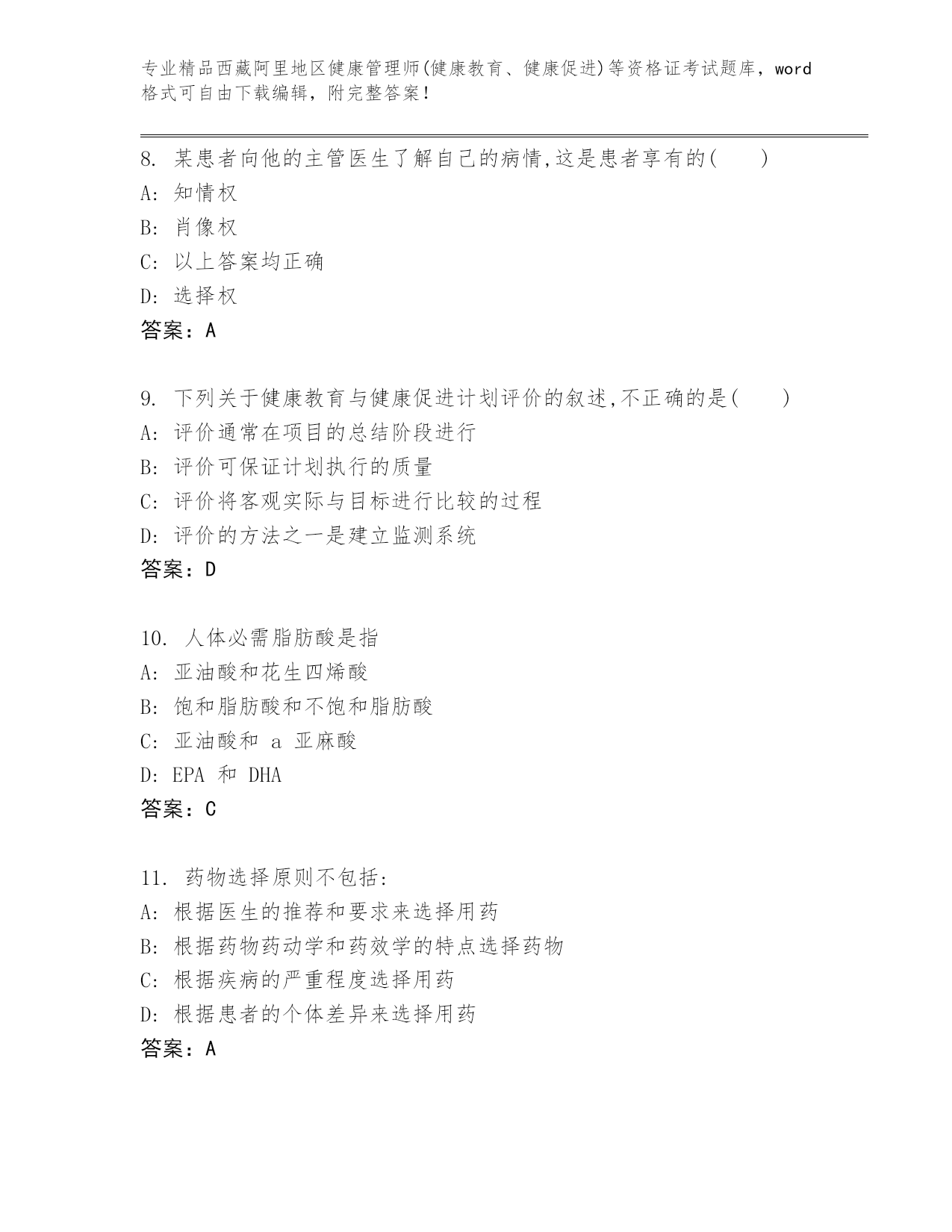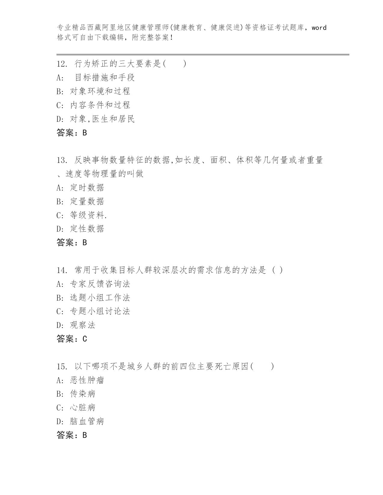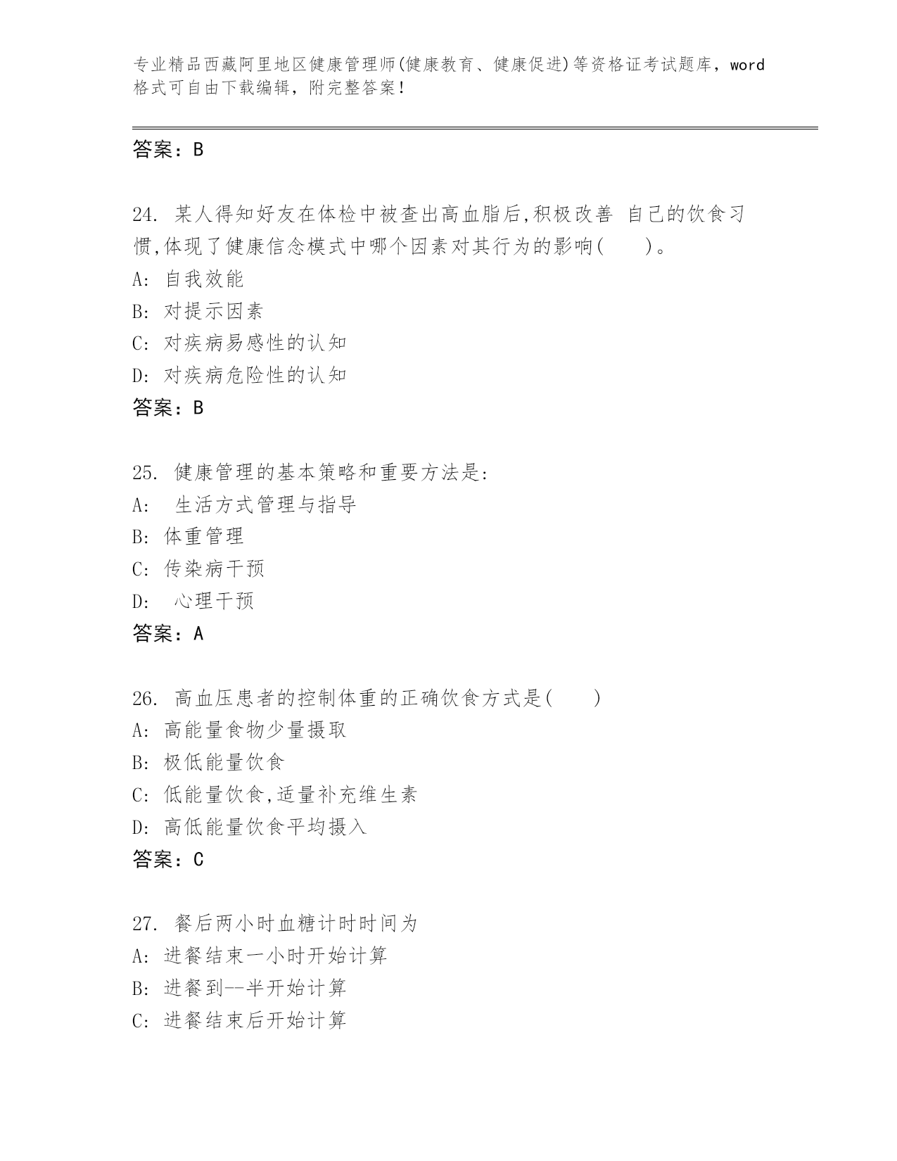 内部培训西藏阿里地区健康管理师(健康教育、健康促进)等资格证考试内部题库含答案(巩固)