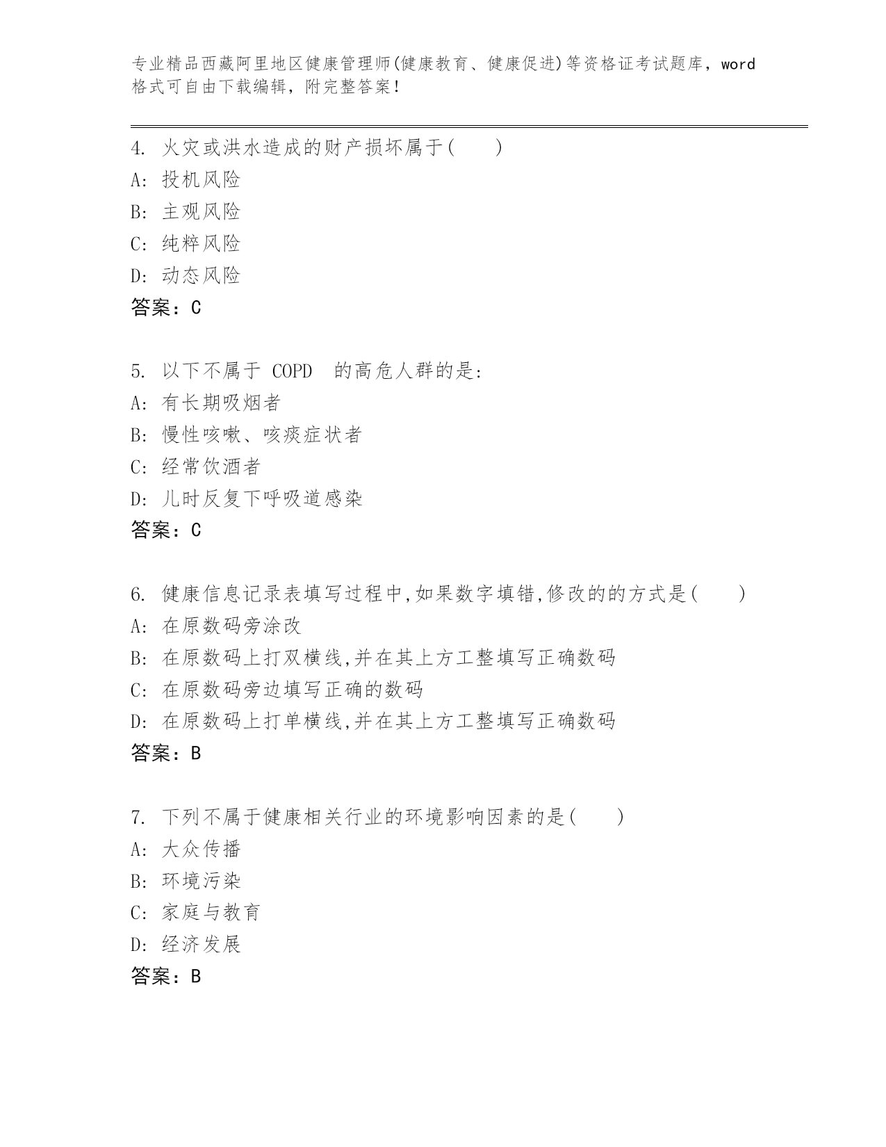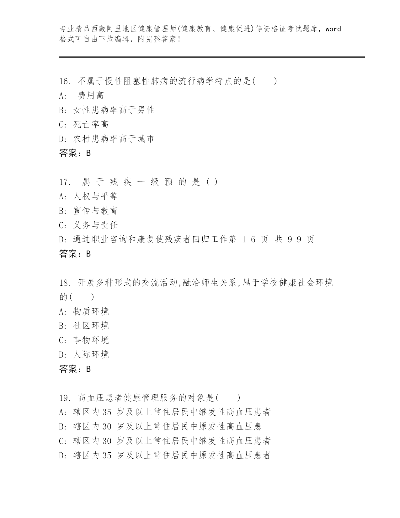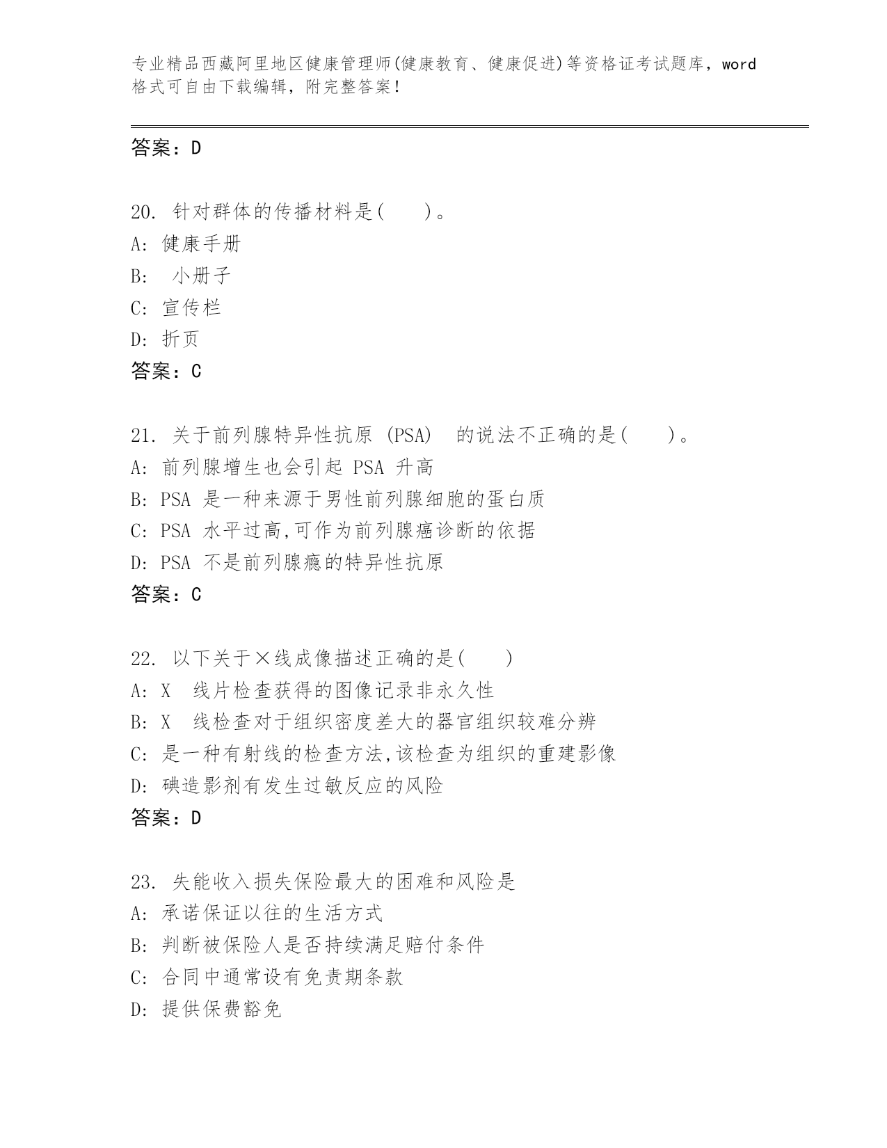内部培训西藏阿里地区健康管理师(健康教育、健康促进)等资格证考试内部题库含答案(巩固)