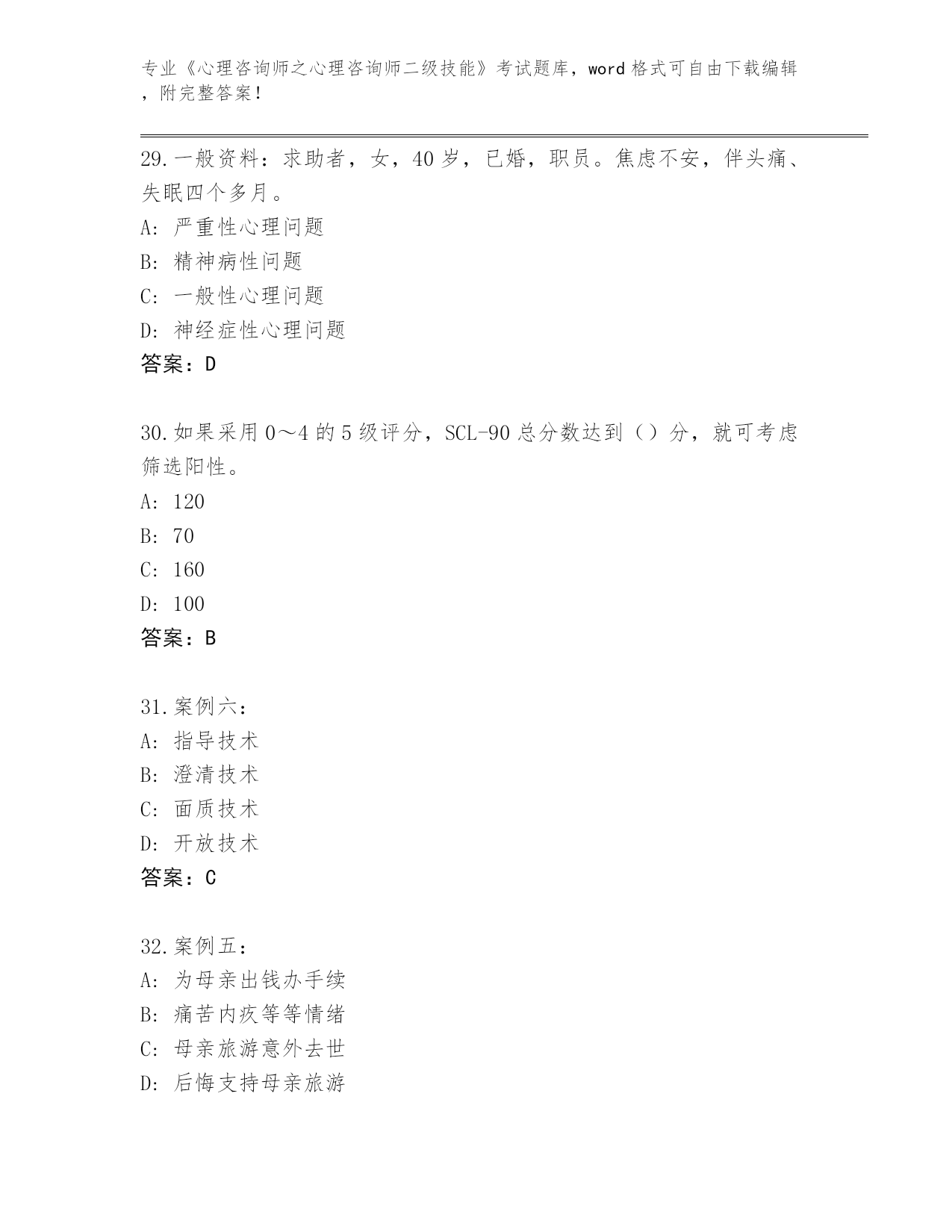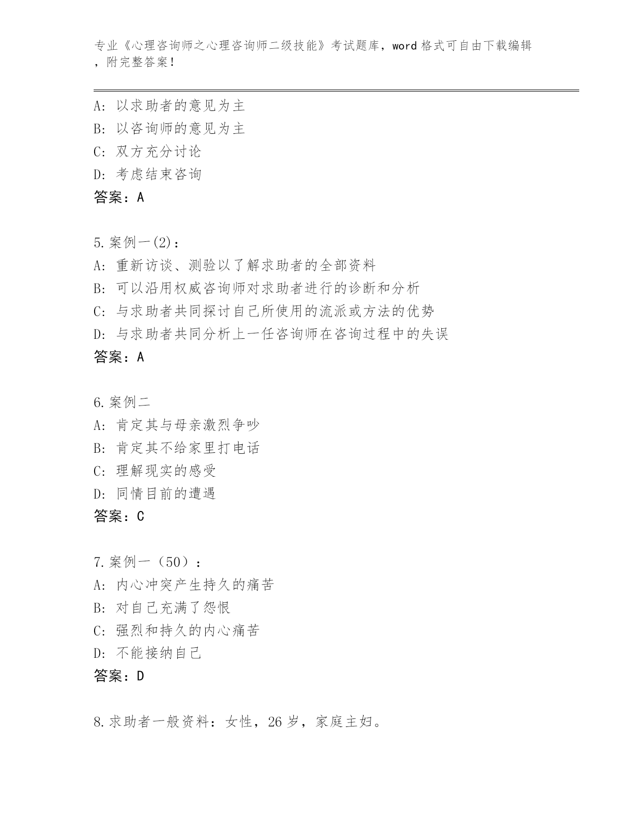 2024年辽宁省《心理咨询师之心理咨询师二级技能》考试题库大全带答案.docx