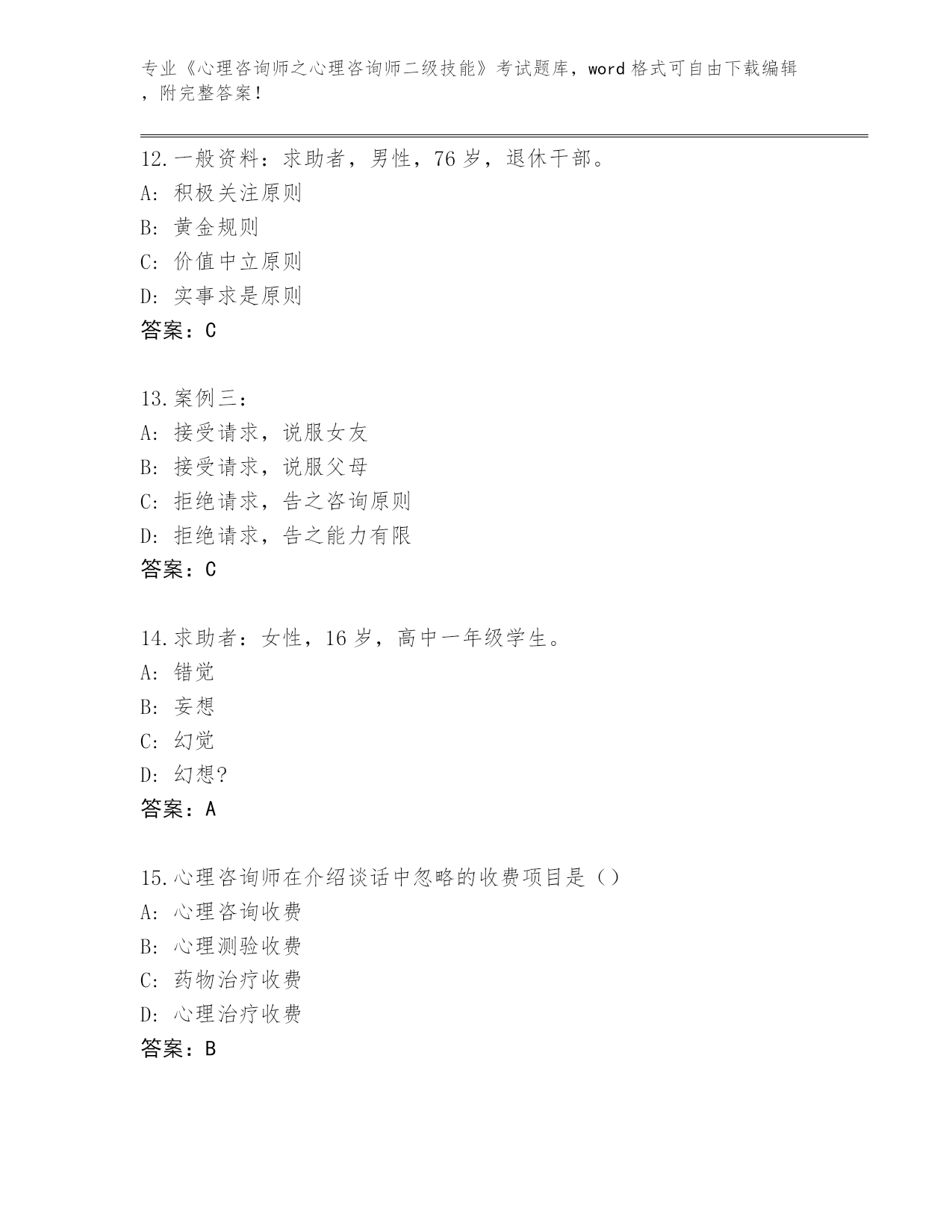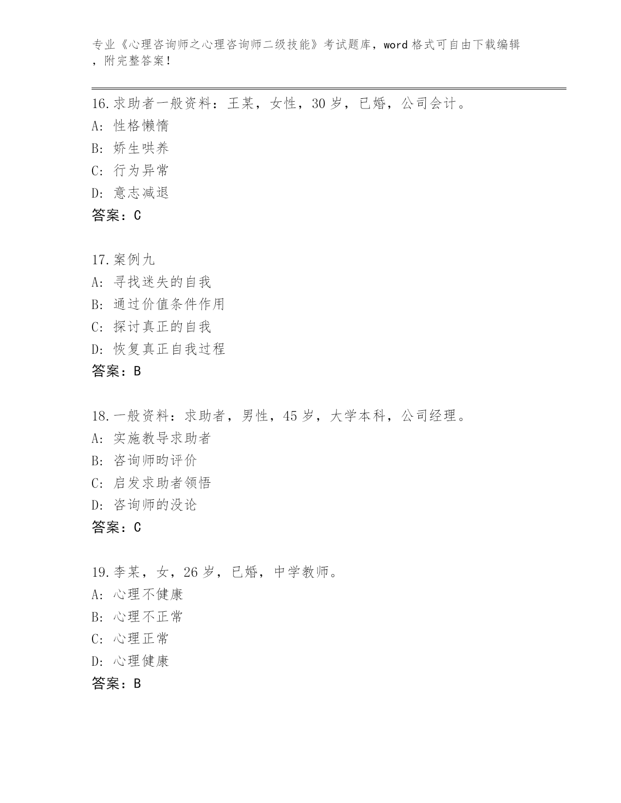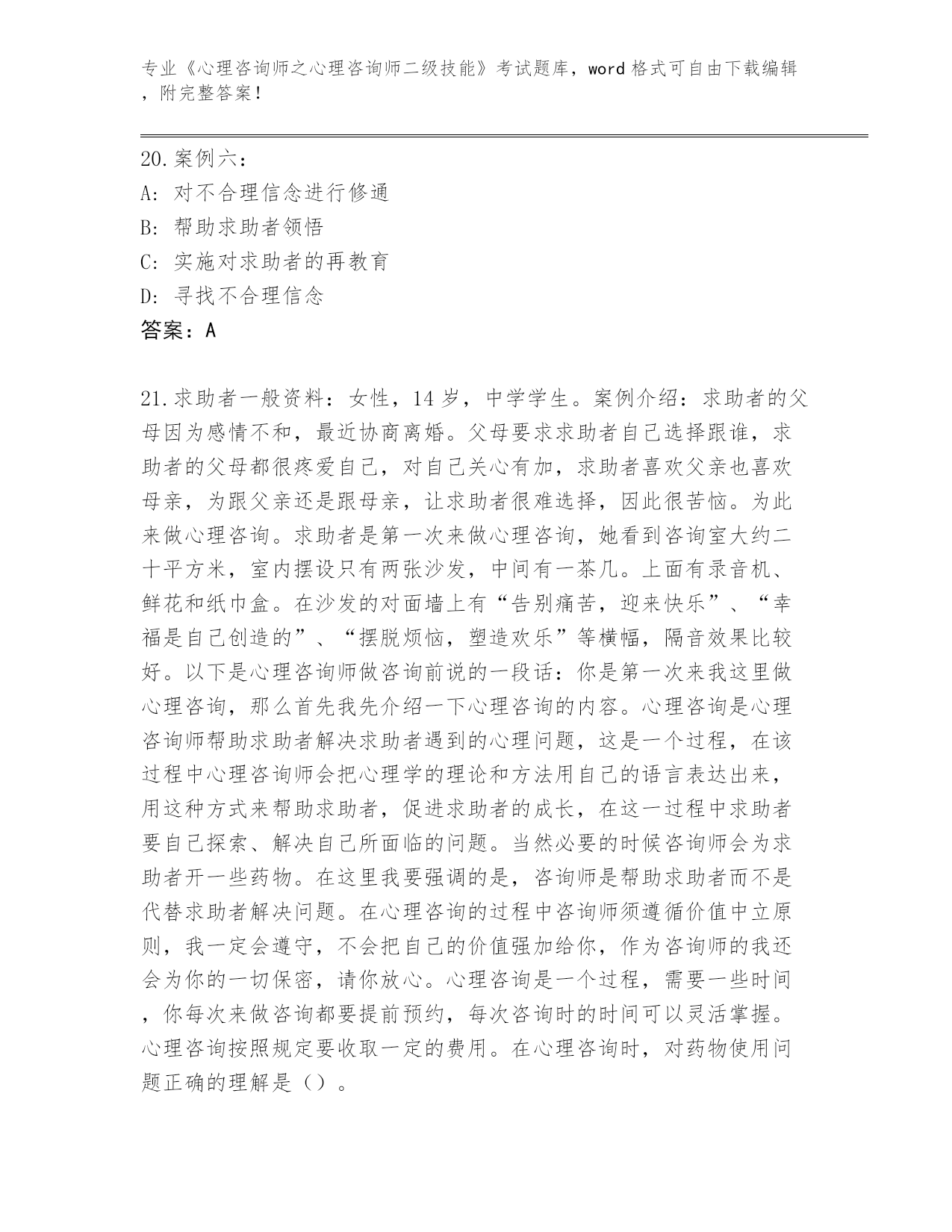 2024年辽宁省《心理咨询师之心理咨询师二级技能》考试题库大全带答案