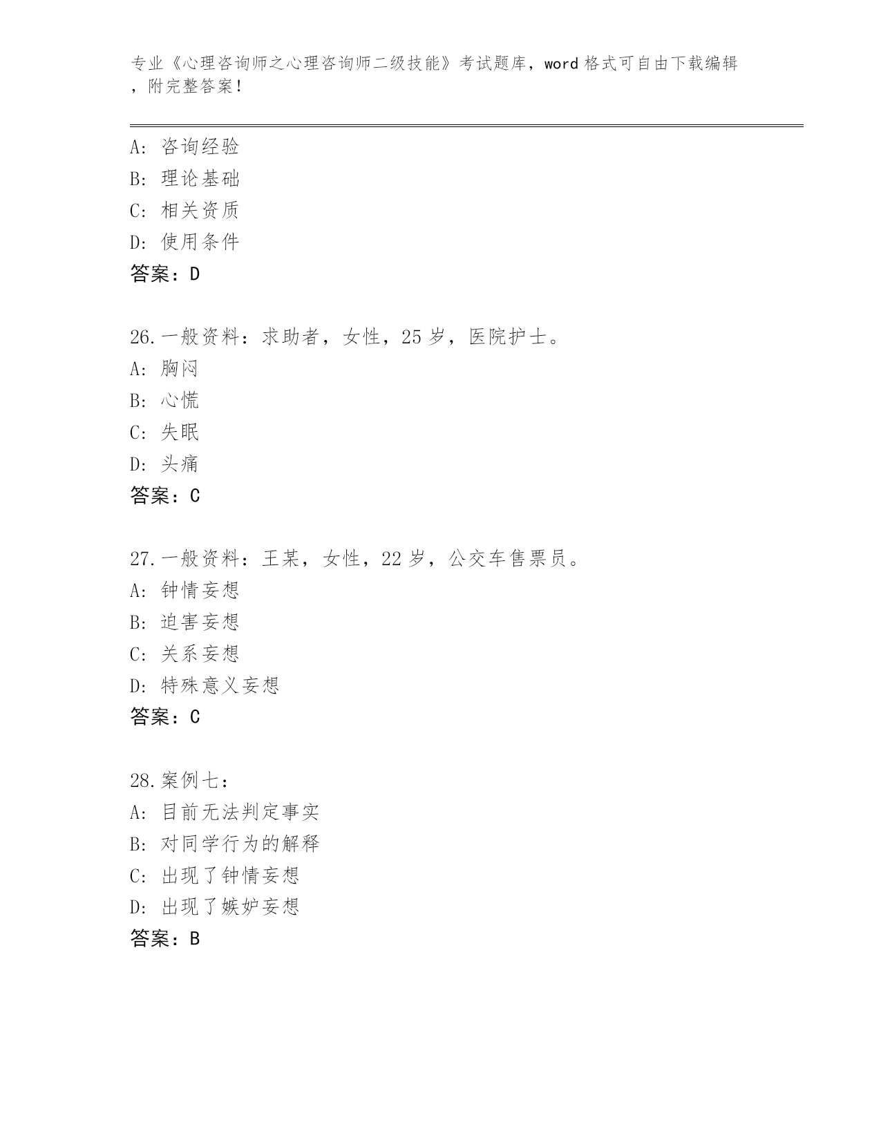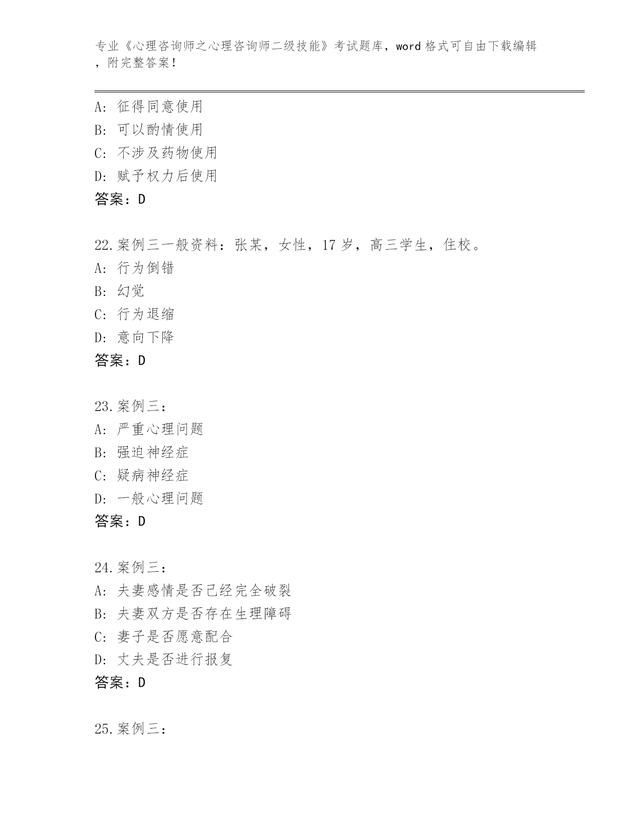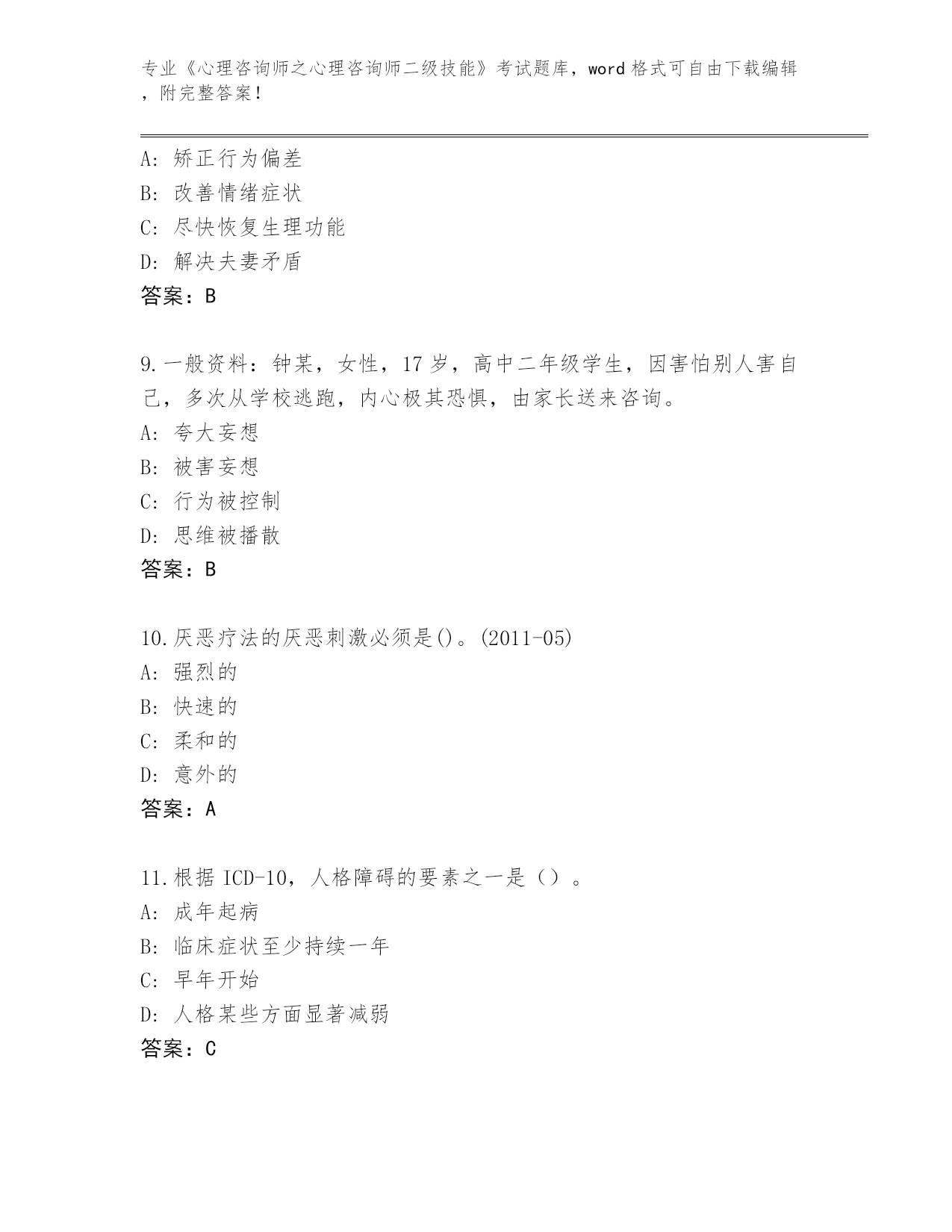 2024年辽宁省《心理咨询师之心理咨询师二级技能》考试题库大全带答案