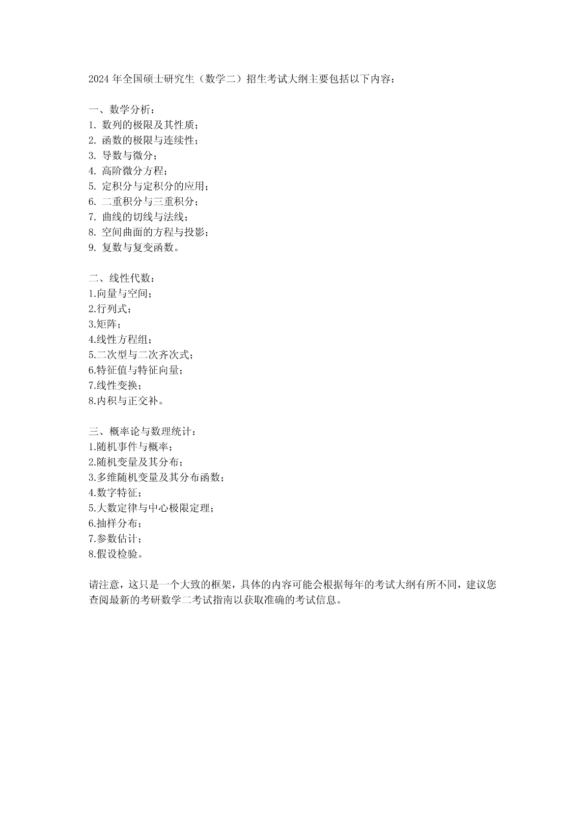 2024年全国硕士研究生招生考试大纲数学二.pdf