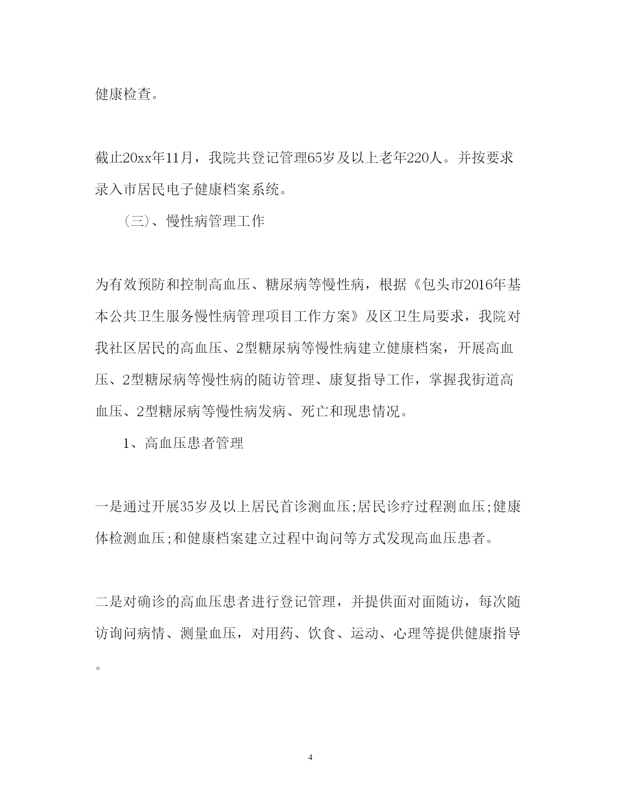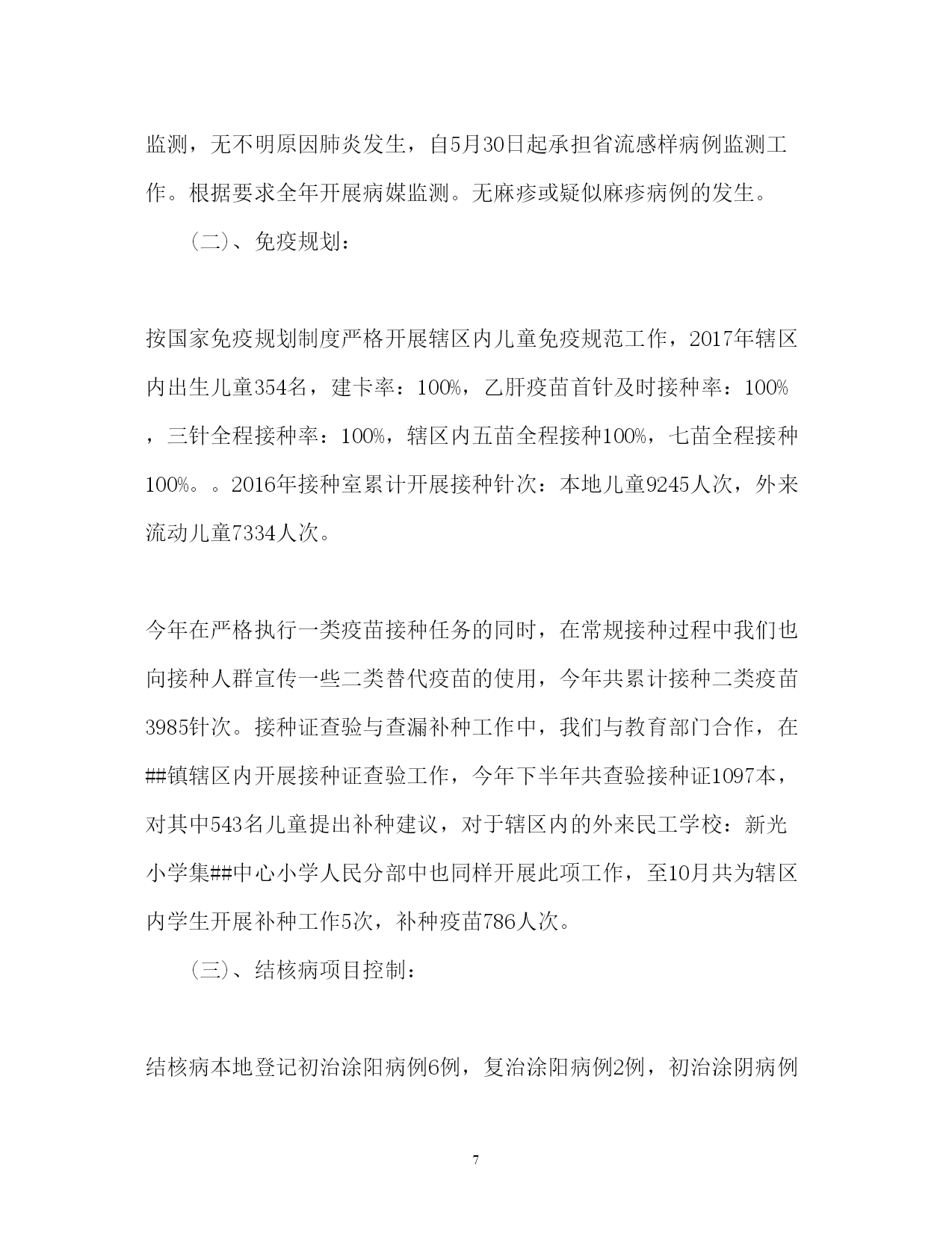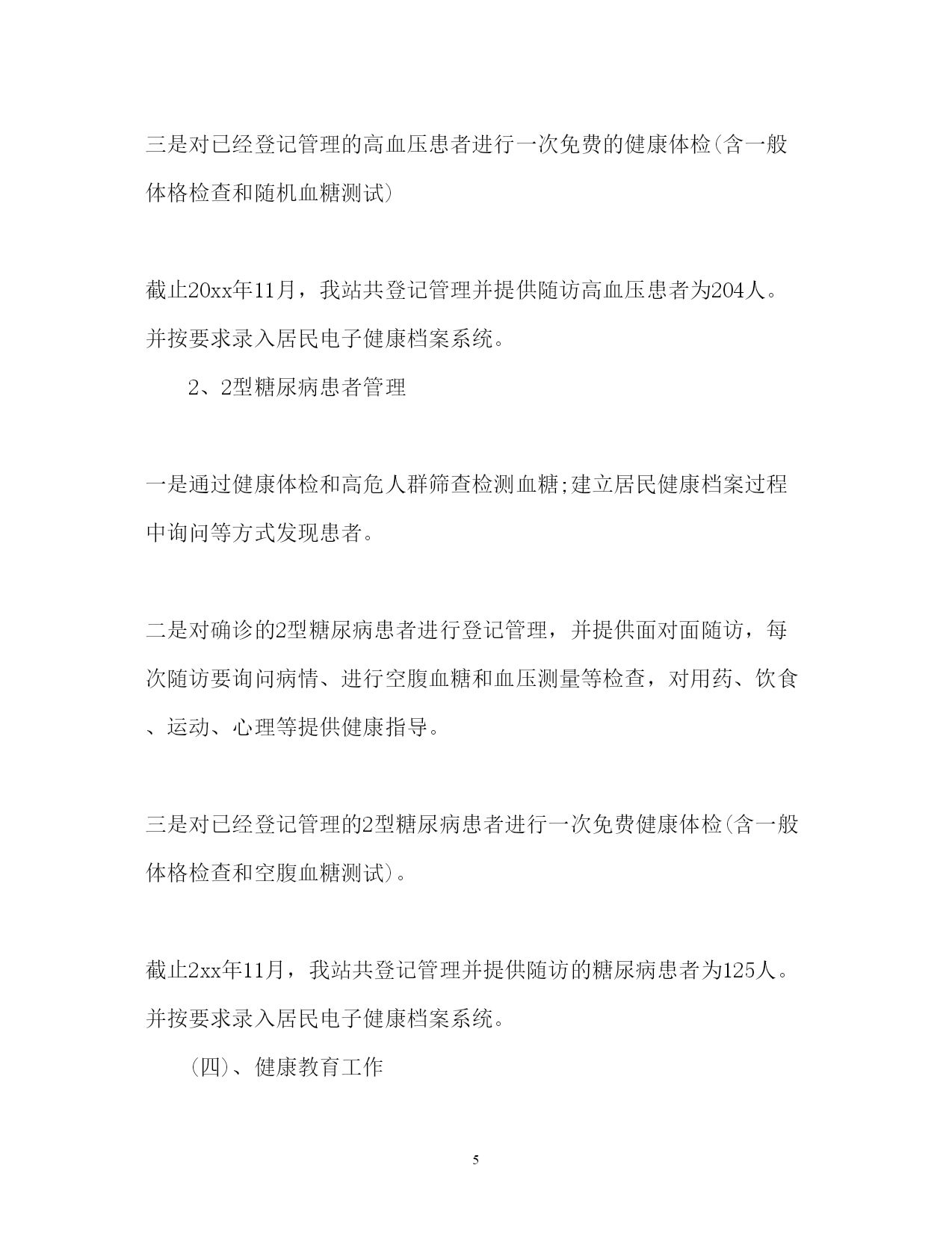 此资料由网络收集而来,如有侵权请告知上传者立即删除。资料共分享,我们负责传递知识。PAGEPAGE13度公共卫生服务工作总结2017年度公共卫生服务工作总结公共卫生服务工作已经告一段落,我们的工作总结不能忽视。下面是小编搜集整理的2017年度公共卫生服务工作总结,欢迎阅读。2017年度公共卫生服务工作总结12017年,我站在卫生局的正确领导下,严格执行《国家基本公共卫生服务规范》认真贯彻落实《包头市基本公共卫生服务项目工作方案》以及卫生局各类文件精神,加强内部管理,严抓基本公共卫生服务项目工作,充分调动全站职工的工作积极性和主动性,取得了较好效果,现将我院基本公共卫生服务项目工作总结汇报一、基本公共卫生服务项目开展落实情况(一)、居民健康档案工作根据《20xx年基本公共卫生服务建立居民健康档案项目工作方案》要求,在区卫生局统一部署下,我院于今年3月份开展了2017年建立居民健康档案工作。一是争取领导重视,搞好综合协调。为迅速落实建档工作,我院多次向办事处居会等基层管理组织单位进行协调与沟通,得到党委政府的大力支持,分管领导亲自组织召开协调会,亲自安排部署,使居委会对居民健康档案工作十分重视,每个辖区都安排专人负责协助建档工作。二是加强组织领导,落实工作责任。为确保居民健康档案工作的顺利进行,我站专门成立了由站长任组长的居民健康档案工作领导小组,加强整个街道居民健康档案工作组织领导,制定了操作性强、切实可行的实施方案。成立专门建档工作小组和居民健康体检小组相互积极配合采取进入户调查统一体检服务的方式为居民建立健康档案建档工作。三、是加大宣传力度,提高居民主动建档意识。为提高我辖区居民主动参与建档意识,我站大力宣传发放各类宣传材料让每一名社区居民了解居民健康档案,积极主动配合我院建档工作小组顺利完成居民建档工作。四、加强人员培训,强化服务意识。为确保居民健康档案保质保量完成,我站对每一名参与居民健康档案建立的工作人员进行了多次业务培训,让每一名工作人员熟悉居民健康档案建立的重要性和必要性,熟练掌握自己的本职工作和建档程序。截止20xx年11月底,我站共为七社区居民建立家庭健康档案纸质档案3974份,并把纸质居民健康档案完善合格录入居民电子健康档案系统(二)、老年人健康管理工作根据《包头市基本公共卫生服务老年人健康管理项目工作方案》及区卫生局要求,我院开展了老年人健康管理服务项目。一、结合建立居民健康档案对我街道65岁及以上老年人进行登记管理,并对所有登记管理的老年人免费进行一次健康危险因素调查和一般体格检查及空腹血糖测试,并提供自我保健及伤害预防、自救等健康指导。二、开展老年人健康干预。对发现已确诊的高血压和2型糖尿病患者纳入相应的慢性病患者进行管理;对存在危险因素且未纳入其他疾病管理的老年居民进行定期随访,并告知该居民一年后进行下一次免费健康检查。截止20xx年11月,我院共登记管理65岁及以上老年220人。并按要求录入市居民电子健康档案系统。(三)、慢性病管理工作为有效预防和控制高血压、糖尿病等慢性病,根据《包头市2016年基本公共卫生服务慢性病管理项目工作方案》及区卫生局要求,我院对我社区居民的高血压、2型糖尿病等慢性病建立健康档案,开展高血压、2型糖尿病等慢性病的随访管理、康复指导工作,掌握我街道高血压、2型糖尿病等慢性病发病、死亡和现患情况。1、高血压患者管理一是通过开展35岁及以上居民首诊测血压;居民诊疗过程测血压;健康体检测血压;和健康档案建立过程中询问等方式发现高血压患者。二是对确诊的高血压患者进行登记管理,并提供面对面随访,每次随访询问病情、测量血压,对用药、饮食、运动、心理等提供健康指导。三是对已经登记管理的高血压患者进行一次免费的健康体检(含一般体格检查和随机血糖测试)截止20xx年11月,我站共登记管理并提供随访高血压患者为204人。并按要求录入居民电子健康档案系统。2、2型糖尿病患者管理一是通过健康体检和高危人群筛查检测血糖;建立居民健康档案过程中询问等方式发现患者。二是对确诊的2型糖尿病患者进行登记管理,并提供面对面随访,每次随访要询问病情、进行空腹血糖和血压测量等检查,对用药、饮食、运动、心理等提供健康指导。三是对已经登记管理的2型糖尿病患者进行一次免费健康体检(含一般体格检查和空腹血糖测试)。截止2xx年11月,我站共登记管理并提供随访的糖尿病患者为125人。并按要求录入居民电子健康档案系统。(四)、健康教育工作一是严格按照健康教育服务规范要求,认真贯彻落实区卫生局及上级部门的各项健康教育项目工作。采取了发放宣传材料、开展健康宣教、设置宣传栏的各种方式,针对重点人群、重点疾病和我苏木主要卫生问题和危险因素开展健康