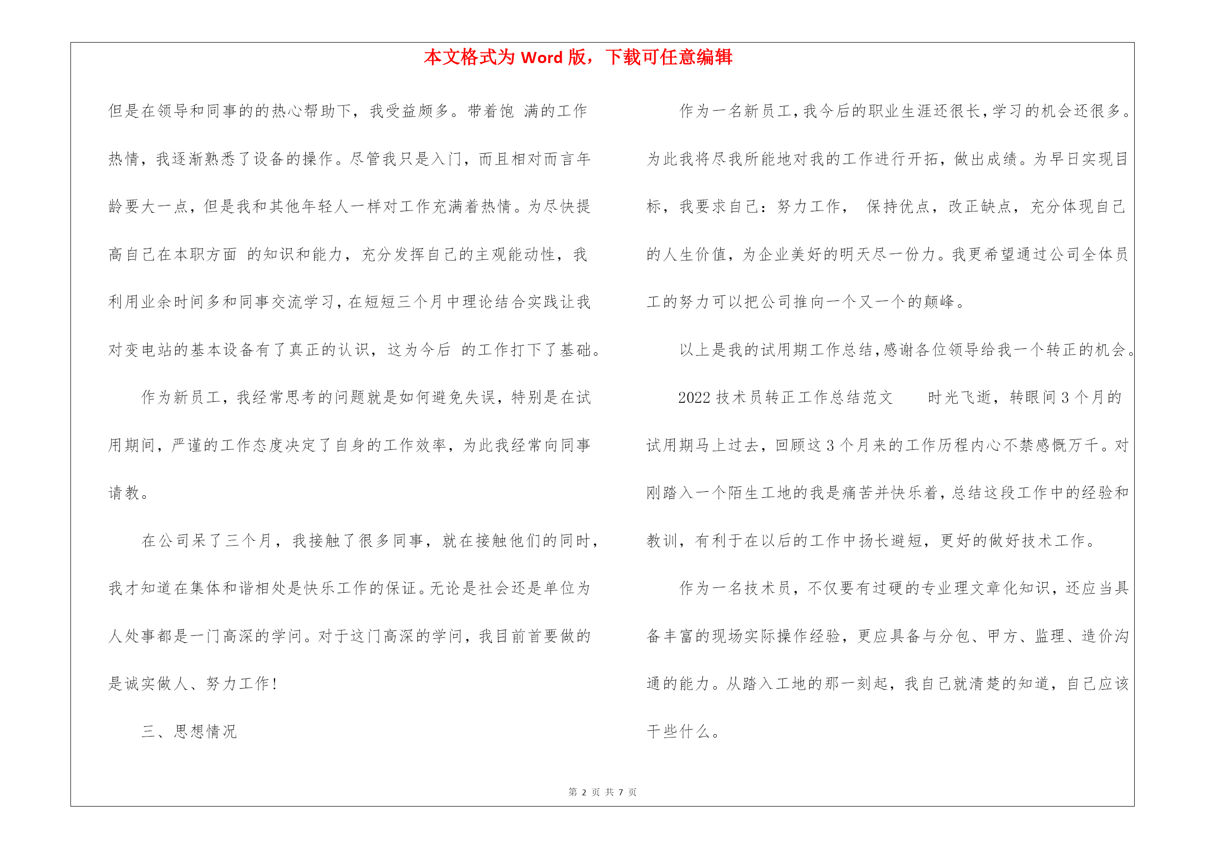 本文格式为Word版,下载可任意编辑第PAGE\*MERGEFORMAT7页共NUMPAGES\*MERGEFORMAT7页2022技术员转正工作总结4篇2022技术员转正工作总结范文4篇总结必须有情况的概述和叙述,有的比较简单,有的比较详细。下面是2022技术员转正工作总结范文4篇,一起来看一下吧。2022技术员转正工作总结范文进公司以来,本人尊敬领导,与同事关系融洽。为尽快进入工作角色,本人自觉认真学习本公司、本部门、本岗位的各项制度、规则,严格按照公司里制定的工作制度开展工作。在这近三个月的工作和学习中,接触了不少人和事,在为自己的成长欢欣鼓舞的同时,我也明白自己尚有许多缺点需要改正。工作以来,在领导的教导和培养下,在同事们的关心和帮助下,自己的思想、工作等各方面都取得了一定的成绩,个人综合素质也得到了一定的提高,现将这三个月来的个人工作总结如下:一、工作情况怀着对生活的无限憧憬,我进入了林洋公司。在试用期的工作中,一方面我严格遵守公司的各项规章制度,不迟到、不早退、严于律己,自觉的遵守各项工作制度;另一方面,吃苦耐劳、积极主动、努力工作;在完成领导交办工作的同时,积极主动的协助其他同事开展工作,并在工作过程中虚心学习以提高自身各方面的能力;工作细节中,我看到公司正逐步做大做强,以目前的趋势,我可以预见公司将有一个辉煌的明天。作为新员工,目前我所能做的就是努力工作,让自己在平凡的岗位上挥洒自己的汗水,焕发自己的热情;使自己在基层得到更多的锻炼。二、学习情况现在是我努力学习的阶段。三人行,必有我师,公司中的每一位同事都是我的老师,他们的丰富经验和工作行为对于我来说就是一笔宝贵的财富。记得我刚到公司的时候,对生产线上的一切都感到陌生而新奇。因为我之前没有过类似的工作经验,所以知道的也有限,但是在领导和同事的的热心帮助下,我受益颇多。带着饱满的工作热情,我逐渐熟悉了设备的操作。尽管我只是入门,而且相对而言年龄要大一点,但是我和其他年轻人一样对工作充满着热情。为尽快提高自己在本职方面的知识和能力,充分发挥自己的主观能动性,我利用业余时间多和同事交流学习,在短短三个月中理论结合实践让我对变电站的基本设备有了真正的认识,这为今后的工作打下了基础。作为新员工,我经常思考的问题就是如何避免失误,特别是在试用期间,严谨的工作态度决定了自身的工作效率,为此我经常向同事请教。在公司呆了三个月,我接触了很多同事,就在接触他们的同时,我才知道在集体和谐相处是快乐工作的保证。无论是社会还是单位为人处事都是一门高深的学问。对于这门高深的学问,我目前首要做的是诚实做人、努力工作!三、思想情况作为一名新员工,我今后的职业生涯还很长,学习的机会还很多。为此我将尽我所能地对我的工作进行开拓,做出成绩。为早日实现目标,我要求自己:努力工作,保持优点,改正缺点,充分体现自己的人生价值,为企业美好的明天尽一份力。我更希望通过公司全体员工的努力可以把公司推向一个又一个的颠峰。以上是我的试用期工作总结,感谢各位领导给我一个转正的机会。2022技术员转正工作总结范文时光飞逝,转眼间3个月的试用期马上过去,回顾这3个月来的工作历程内心不禁感慨万千。对刚踏入一个陌生工地的我是痛苦并快乐着,总结这段工作中的经验和教训,有利于在以后的工作中扬长避短,更好的做好技术工作。作为一名技术员,不仅要有过硬的专业理文章化知识,还应当具备丰富的现场实际操作经验,更应具备与分包、甲方、监理、造价沟通的能力。从踏入工地的那一刻起,我自己就清楚的知道,自己应该干些什么。首先,我要对图纸有一个透彻的理解,做到工人看不到的我能看到,图纸中的重点难点做好交底,对应提的配电箱做好具体的统计;其次,对前阶段干的工程有个细致的了解,包括资料、现场、材料等,重点查处楼里有毛病、错误的地方,并做详细的记录;再者,对材料计划的提取,做到省钱但不违反规范、图纸要求,掌握现场材料,并计算出以后将用的材料,配管及防雷马上结束,争取做到不浪费,不过多剩余;最后,与分包、甲方、监理、造价沟通,做到不卑不亢,合理的地方按要求做,不合理的地方,坚决提出,与分包做好配合,干好主楼的同时干好现场临电,与甲方勤沟通,做好应变的准备,与造价据理力争,不错过应拨给的每一分钱。在现场的每个人都是我的老师,朋友,虽然他们也许没有一定的专业文化知识,但是他们的施工经验却比我丰富,阅历比我丰富,对生活、工作上给予我很大的帮助及肯定,帮助我迅速的适应这里的工作、学习、生活;公司里又有总工,专业上遇到不明白的,含糊的多请教,确实也让自己学到了好多,遇到问题多想多问,绝对不会不懂装懂。通过这几个月的工作,也找出自己在工作中的不足,首先自己的专业知识还是相对欠缺,其次在沟通能力及一些特殊的情况处理方面还是缺乏相关的经验。所以在以后的