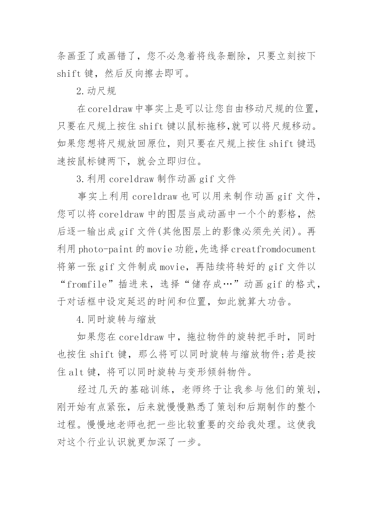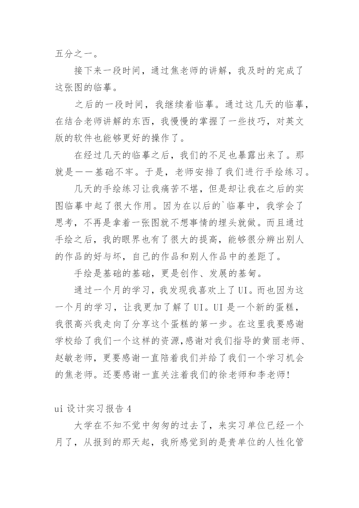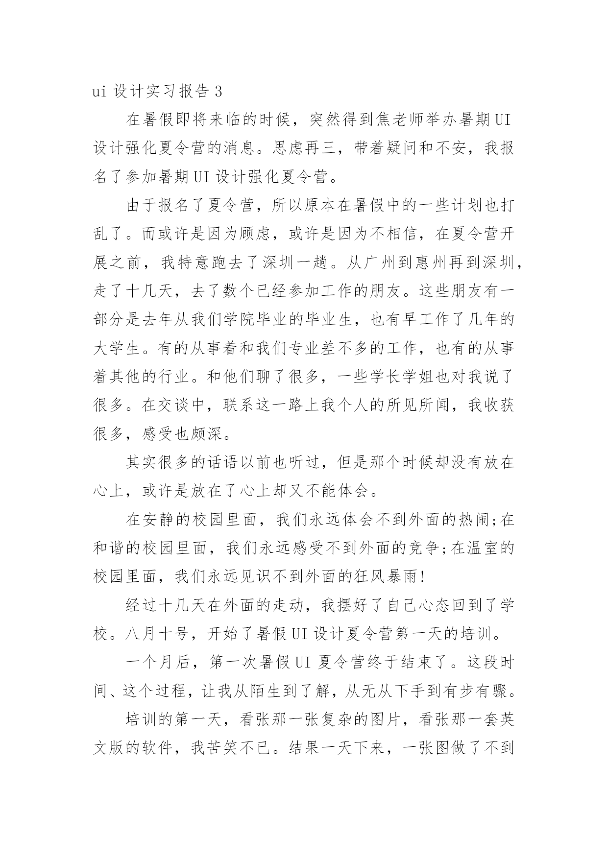 ui设计实习报告随着社会一步步向前发展,需要使用报告的情况越来越多,报告具有成文事后性的特点。你知道怎样写报告才能写的好吗?以下是小编收集整理的ui设计实习报告,希望对大家有所帮助。ui设计实习报告1一、实习目的实习目的是,通过UI设计相关工作岗位实习使我了解以后再UI设计相关工作岗位工作的特点、性质,学习体验UI设计相关岗位工作的实际情况,学习与积累工作经验,为以后真正走上UI设计相关工作岗位做好岗前准备。同时通过UI设计相关工作岗位的实习,熟悉实际工作过程的运作体系和管理流程,把自己所学UI设计工作岗位理论知识应用于实际,锻炼UI设计工作岗位业务能力和社会交际实践能力,并在工作中学习UI设计相关工作岗位的新知识,对自己所学的知识进行总结并提升,以指导未来在UI设计相关工作岗位的学习重点和发展方向。二、实习时间201×年03月01日~201×年06月15日(修改成自己UI设计相关工作岗位实习时间)三、实习地点苏州市经济开发区江南大道(修改成自己UI设计工作岗位实习地点)四、实习单位江苏省苏杭教育集团(修改成自己UI设计相关工作岗位实习单位)此处可以继续添加具体你UI设计工作岗位实习单位的详细介绍五、实习主要内容我很荣幸进入江苏省苏杭教育集团(修改成自己UI设计相关工作岗位实习单位)开展UI设计岗位实习。为了更好地适应从没有UI设计岗位工作经验到一个具备完善业务水平的工作人员,实习单位主管领导首先给我们分发UI设计相关工作岗位从业相关知识材料进行一些基础知识的自主学习,并安排专门的老前辈对UI设计岗位所涉及的.相关知识进行专项培训。在实习过程,单位安排的了杜老师作为实习指导,杜老师是位非常和蔼亲切的人,他从事UI设计相关工作岗位领域工作已经有二十年。他先带领我们熟悉实习工作环境和UI设计相关工作岗位的工作职责和业务内容,之后他亲切的和我们交谈关于实习工作具体性质以及UI设计相关工作岗位容易遇到的问题。杜老师带领我们认识实习单位的其他工作人员,并让我们虚心地向这些辛勤地在UI设计相关工作岗位上的前辈学习,在遇到不懂得问题后要积极请教前辈。毕竟是人生第一次在UI设计工作岗位上,所以真正掌握这一份工作是需要一个过程的。一开始我对实际UI设计岗位的工作内容比较陌生,都不太清楚自己的工作范围和职责,对实习单位的情况也不太了解,不过杜老师会告诉我该怎样处理自己在UI设计岗位上遇到的问题。慢慢的我也就熟悉了自己的UI设计岗位工作内容,在UI设计岗位上的一些棘手问题也能自己独立解决,每天把工作做得井井有条。在单位实习期间,我从事的UI设计工作岗位相关的工作之外,还负责协助其他部门的日常工作,包括制定计划,利用新学习的UI设计相关工作岗位业务知识处理相关文书。六、实习总结对于第一次在UI设计相关工作岗位的的我来说,还没有足够的社会经验。经过了这半年来的UI设计相关工作岗位实习,我学到了很多,感悟了很多。特别是在实习单位领导和UI设计工作岗位的相关同事的关心和指导下,认真完成领导交付的工作,和同事之间能够通力合作,关系相处融洽而和睦。在工作中积极学习新知识、技能,注重自身发展和进步,我学会了很多UI设计相关工作岗位理论实践技能,增加了UI设计相关工作岗位相关工作经验。ui设计实习报告2这次的暑假实习我选择了一家装潢设计公司,因为平时在学校从事编辑排版工作很想有机会到外面类似的公司里面实习一下,使自己的基础更牢固,技术更全面,实习的内容是学习平面设计(Photoshop和CorelDraw的使用)。因为考虑到以后毕业有可能从事这个行业的工作,因此我非常珍惜这次实习的机会,在有限的时间里加深对各种平面设计的了解,找出自身的不足。这次实习的收获对我来说有不少,我自己感觉在知识、技能、与人沟通和交流等方面都有了不少的收获。总体来说这次是对我的综合素质的培养,锻炼和提高。第一天来到公司,不知道该做些什么,什么也插不上手,只是这里看看,那里逛逛,最终还是公司里的老师给我指了条路,让我用Photoshop和CorelDraw软件模仿教程做一些简单的图片,终于找到事情做了,于是我就乖乖的'做起了图片。说实话我以前在学校的时候也这样做过,不过效果没有这么好,因为以前一遇到难的或不懂的就停下来不做了,而现在有老师在旁边,有不懂的就问,这使我受益匪浅。假如在作图的过程中如果使用几个小技巧,确实可以达到事半功倍的效果。一、photoshop小技巧1.制作圆角矩形方块首先在photoshop中建立一个新文件,在文件上用矩形选取工具画一个矩形框,接着选择选单select→feather,输入半径值,数值越大则圆角矩形的半径越大。在选取区中填入颜色后,取消选取范围。选取选单image→adjust→threshold,由调整thresholdlevel来改变大小,如此就会