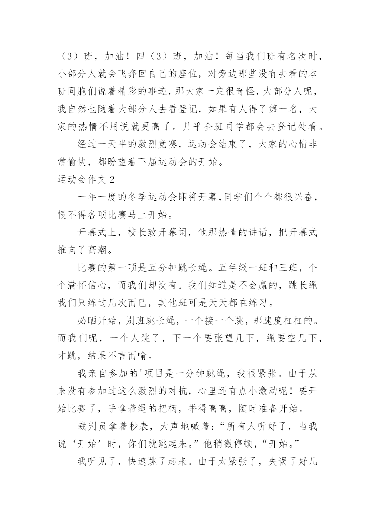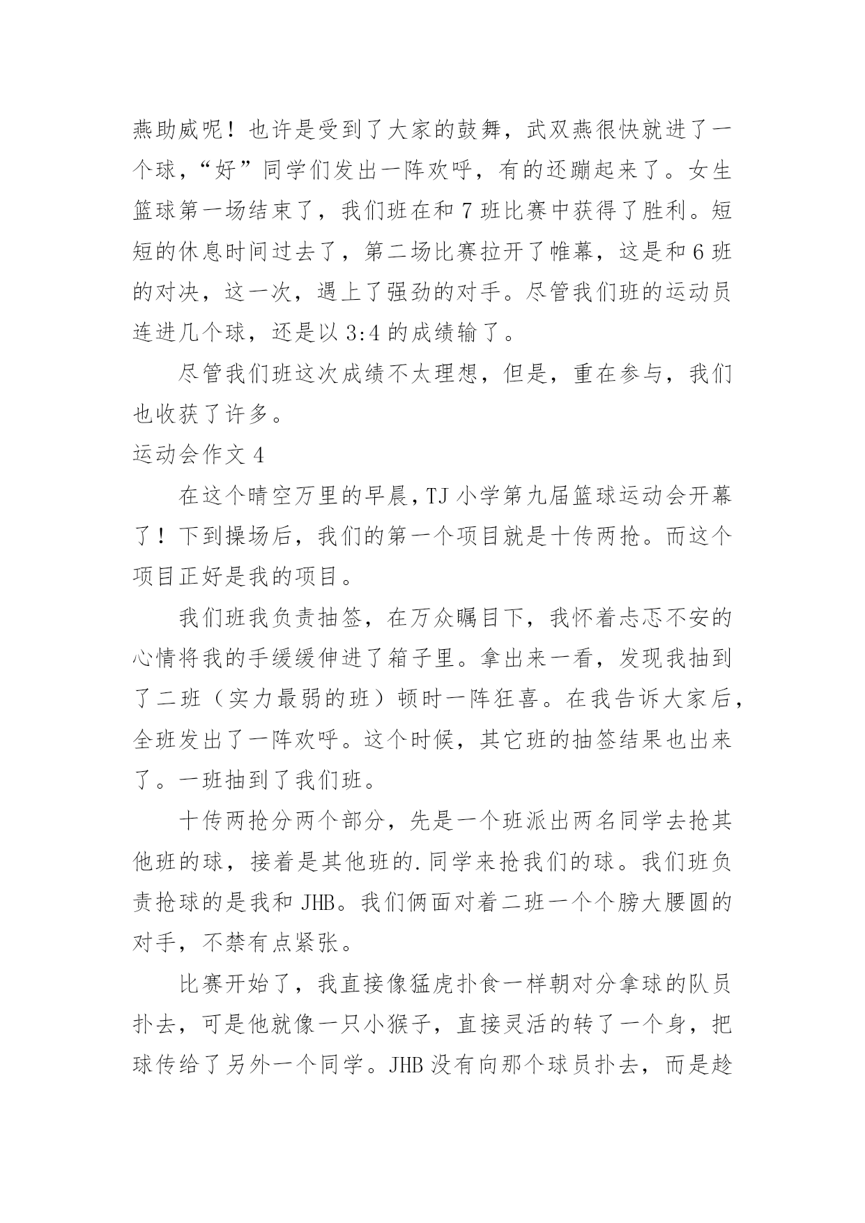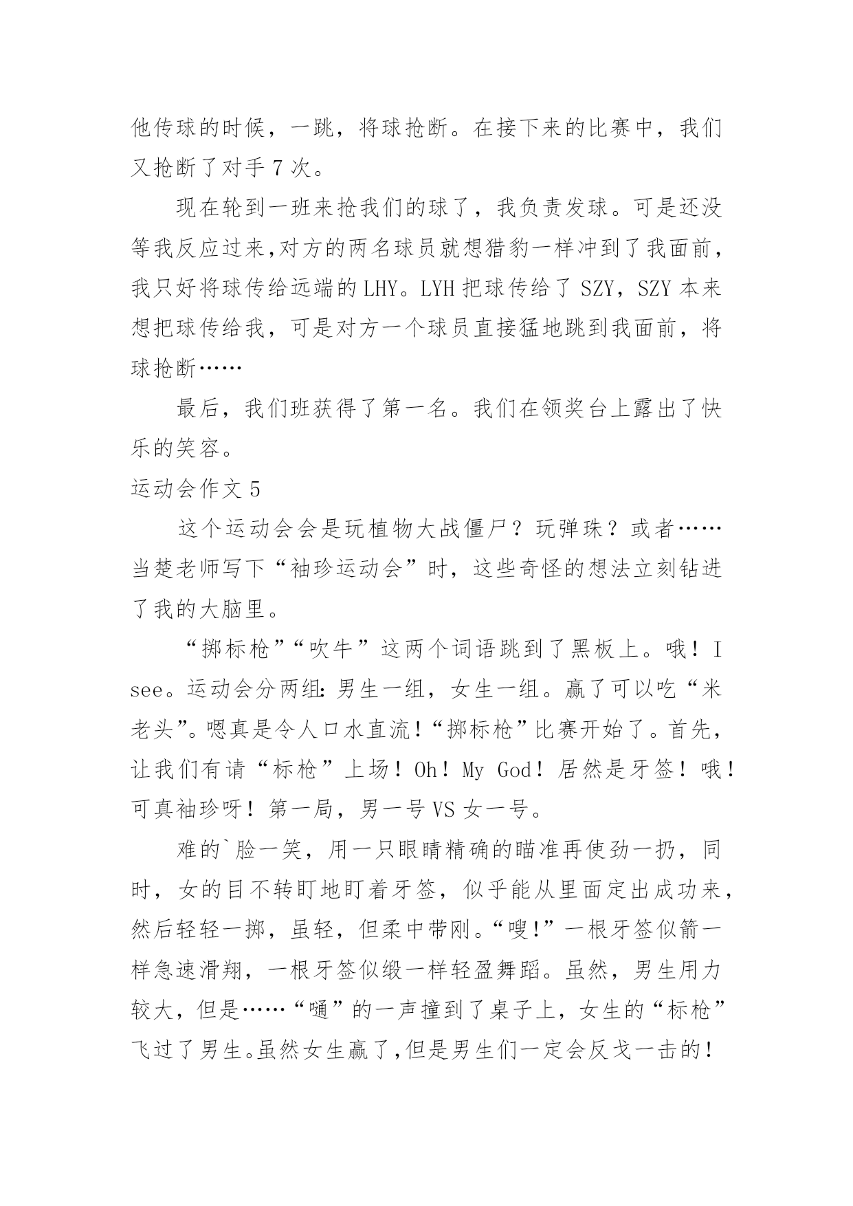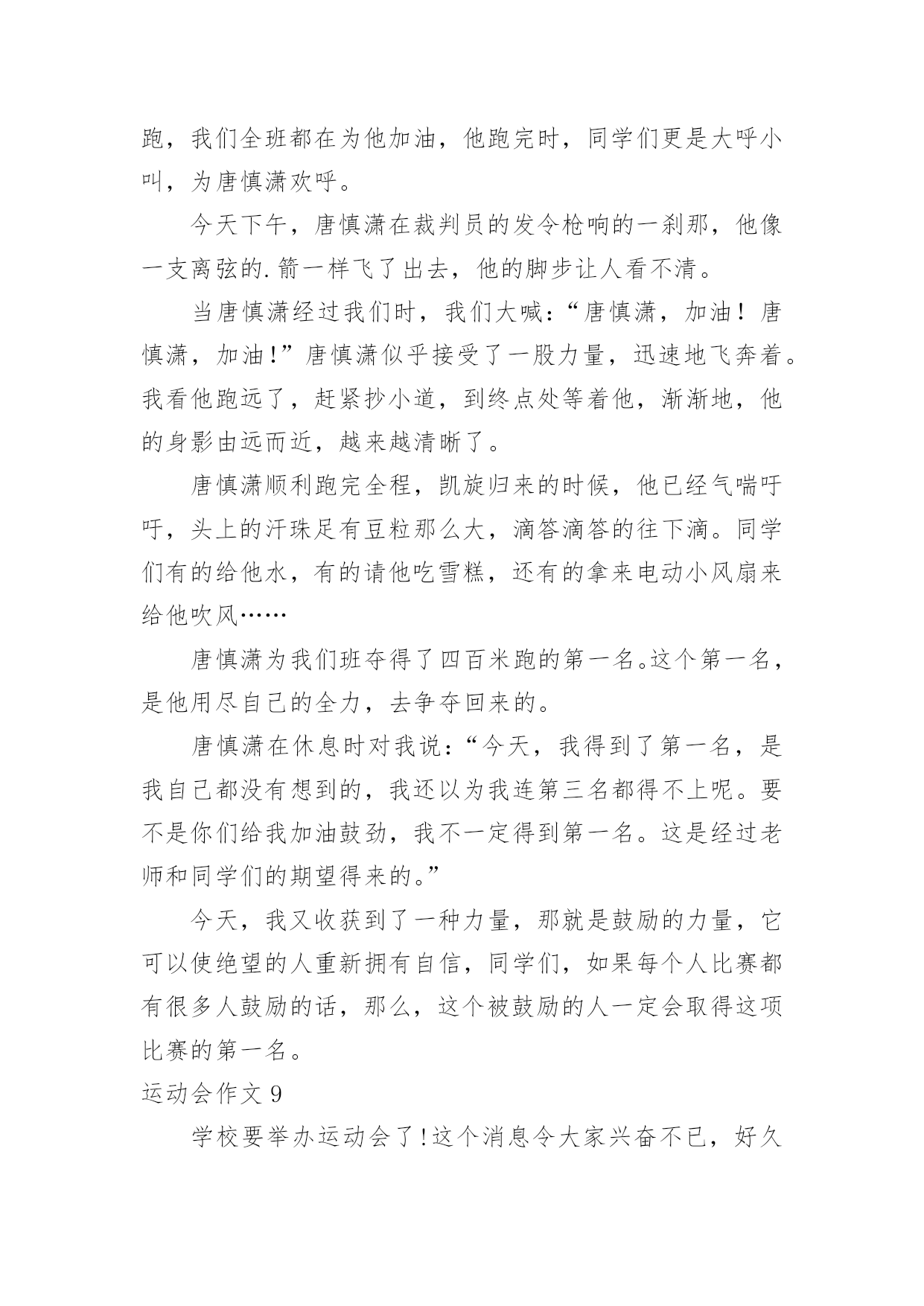 运动会作文运动会作文集锦(15篇)在生活、工作和学习中,大家都经常看到作文的身影吧,作文是一种言语活动,具有高度的综合性和创造性。那要怎么写好作文呢?下面是小编整理的运动会作文,希望对大家有所帮助。运动会作文1经过大家耐心的等待,终于到了我们兴高采烈的日子——4月29日,4月28日夜晚的雨大概是即将到来的前兆吧,4月29日下午一到校,就觉得气氛不对劲,平时现在的时间都是读书和背概念,而现在,一些人连书包也没带,我因为来晚了,便和大家来到楼下。好不容易到了操场,又是星期一的老三样:升国旗、奏国歌、敬队礼,完后就是校长讲话,学生代表讲话。接着就是激动人心的第三项:运动会开始了。我虽然大似羊堆里的`骆驼,鸡堆里仙鹤,并且海拔在1。5米以上,但这次运动会我却一个项目也没有,只能助助威、加加油,并给同胞们发笔和纸,(因为我把文具盒带了下来)好多写一点意见送到广播室,为班级积分、争光。说归说,我虽然不喜欢短跑和长跑系列,但是,我也成为了“追星族”,同时又是四(3)班的拉拉队员,高呼着“四(3)班,加油!四(3)班,加油!每当我们班有名次时,小部分人就会飞奔回自己的座位,对旁边那些没有去看的本班同胞们说着精彩的事迹,那大家一定很奇怪,大部分人呢,我自然也随着大部分人去看登记,如果有人得了第一名,大家的热情不用说就更高了。几乎全班同学都会去登记处看。经过一天半的激烈竞赛,运动会结束了,大家的心情非常愉快,都盼望着下届运动会的开始。运动会作文2一年一度的冬季运动会即将开幕,同学们个个都很兴奋,恨不得各项比赛马上开始。开幕式上,校长致开幕词,他那热情的讲话,把开幕式推向了高潮。比赛的第一项是五分钟跳长绳。五年级一班和三班,个个满怀信心,而我们却没有。我们知道是不会赢的,跳长绳我们只练过几次而已,其他班可是天天都在练习。必晒开始,别班跳长绳,一个接一个跳,那速度杠杠的。而我们呢,一个人跳了,下一个要张望几下,绳要空几下,才跳,结果不言而喻。我亲自参加的'项目是一分钟跳绳,我很紧张。由于从来没有参加过这么激烈的对抗,心里还有点小激动呢!要开始比赛了,手拿着绳的把柄,举得高高,随时准备开始。裁判员拿着秒表,大声地喊着:“所有人听好了,当我说‘开始’时,你们就跳起来。”他稍微停顿,“开始。”我听见了,快速跳了起来。由于太紧张了,失误了好几次。我生气了,我用另一种方法跳,慢慢的,越跳越好,只是有点累。在跳的过程中,无意听见张智文说:“不要这样跳。”我没有理会她,按照自己的节奏,坚持下去,我参与,享受。跳绳的时间结束了,我只跳了88下,有点小失望。这次运动会,我虽然没有获得名次,但我参与了,这过程更重要。运动会作文3今天的天空,总让人感觉阴沉沉的。但是,云朵遮住了太阳,遮不住我们的热情。在同学们的期待下,秋季运动会开始了。首先进行的项目是迎面接力。各班运动员都做好了准备,一个个跃跃欲试。“嘟”,随着一声哨响,第一棒的运动员们如离弦之箭般冲了出去。我们班的第一棒是吴峥。在她飞快地奔跑时,我清楚地看见,吴峥的刘海儿被风吹的飘了起来。接着,接力棒传给了权威,他反应极快,刚抓紧棒就跑了出去。“加油!”操场上热闹极了,大家都在为自己班的'运动员加油。我的目光紧紧跟随着每一棒的选手,却因为疏忽,不小心掉棒了,这样一来,就耽误了几秒钟。尽管后面的选手很努力,可我们班最后还是没得第一。因为迎面接力我们没取得太好的成绩,所以大家把希望寄托在接下来的篮球比赛里。在班里所有的篮球运动员中,武双燕可是表现最突出的一个。她满头是汗,带着球左冲右撞。同学们急坏了,大声喊着“加油”,连老师都来为武双燕助威呢!也许是受到了大家的鼓舞,武双燕很快就进了一个球,“好”同学们发出一阵欢呼,有的还蹦起来了。女生篮球第一场结束了,我们班在和7班比赛中获得了胜利。短短的休息时间过去了,第二场比赛拉开了帷幕,这是和6班的对决,这一次,遇上了强劲的对手。尽管我们班的运动员连进几个球,还是以3:4的成绩输了。尽管我们班这次成绩不太理想,但是,重在参与,我们也收获了许多。运动会作文4在这个晴空万里的早晨,TJ小学第九届篮球运动会开幕了!下到操场后,我们的第一个项目就是十传两抢。而这个项目正好是我的项目。我们班我负责抽签,在万众瞩目下,我怀着忐忑不安的心情将我的手缓缓伸进了箱子里。拿出来一看,发现我抽到了二班(实力最弱的班)顿时一阵狂喜。在我告诉大家后,全班发出了一阵欢呼。这个时候,其它班的抽签结果也出来了。一班抽到了我们班。十传两抢分两个部分,先是一个班派出两名同学去抢其他班的球,接着是其他班的.同学来抢我们的球。我们班负责抢球的是我和JHB。我们俩面对着二班一个个膀大腰圆的对手,不禁有点紧张。比赛开始了,我直接像猛虎扑食一样朝对分拿球的队员扑去,可是他就像一只小猴子,直接灵活的转了一个身,把球传给了另外
