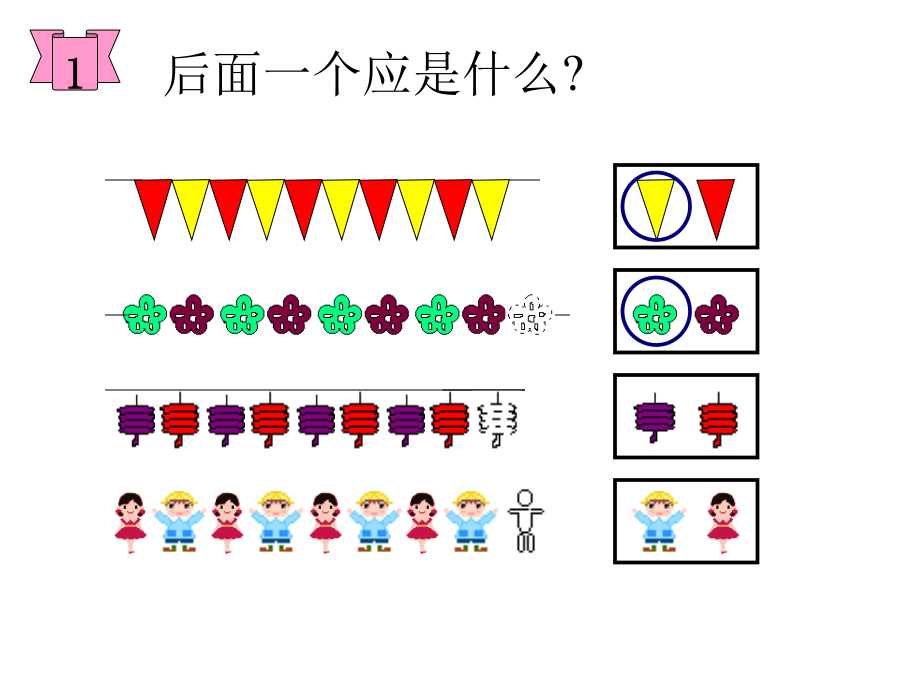 2012.5.25 01唐唐上课用的 人教版小学数学一年级下册《找规律》课件PPT