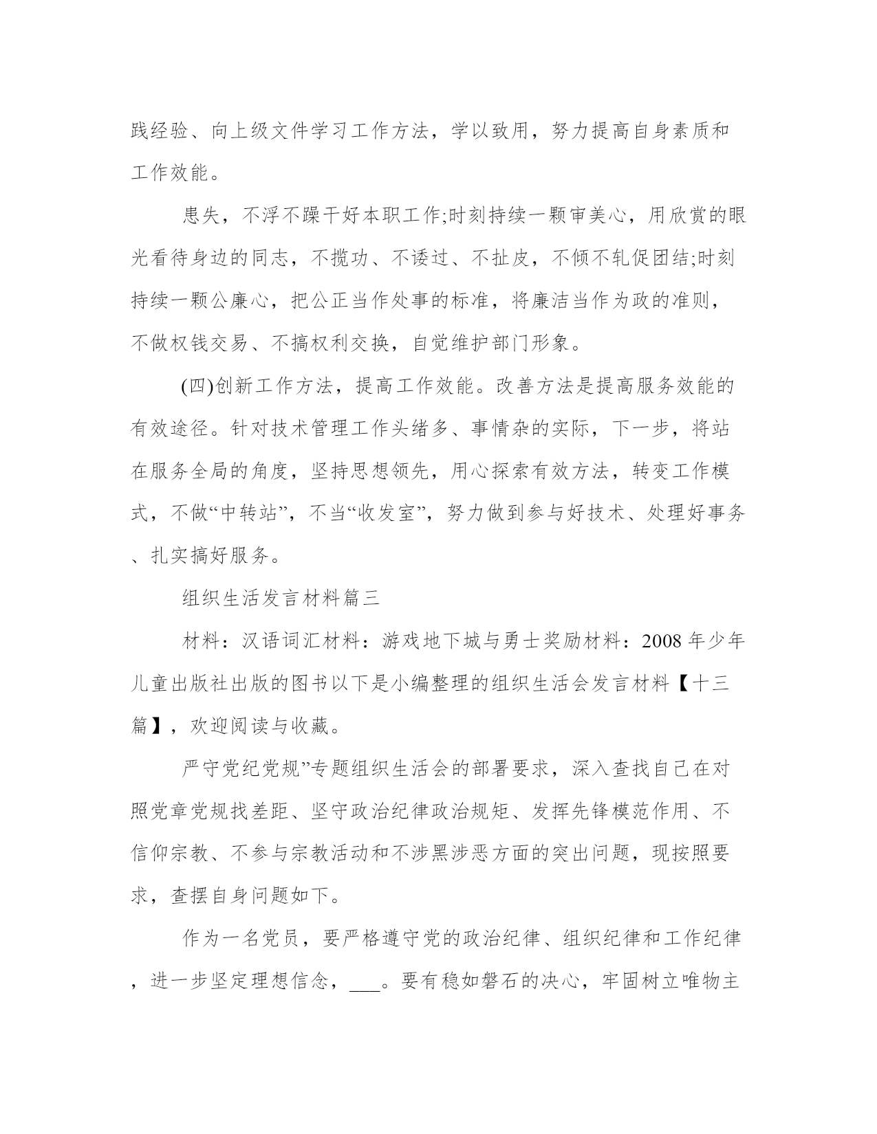 最新组织生活发言材料组织生活个人发言材料(优秀20篇)