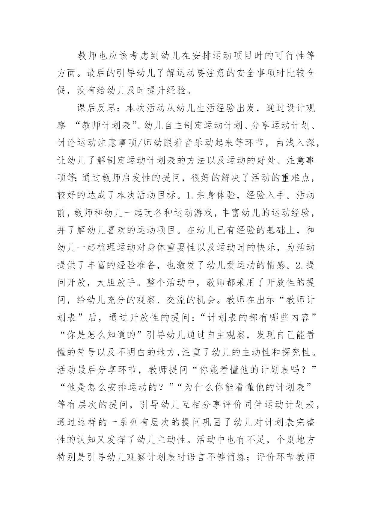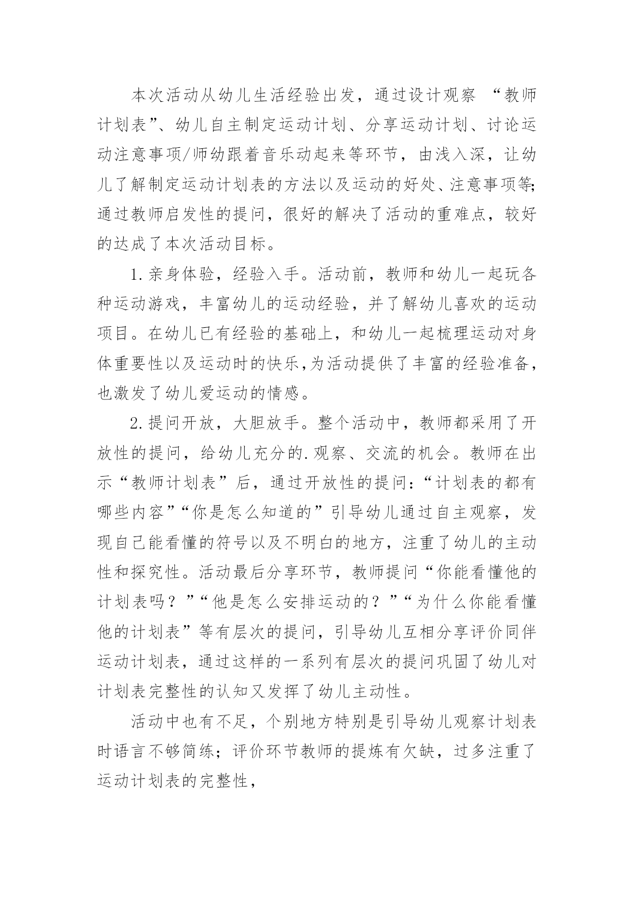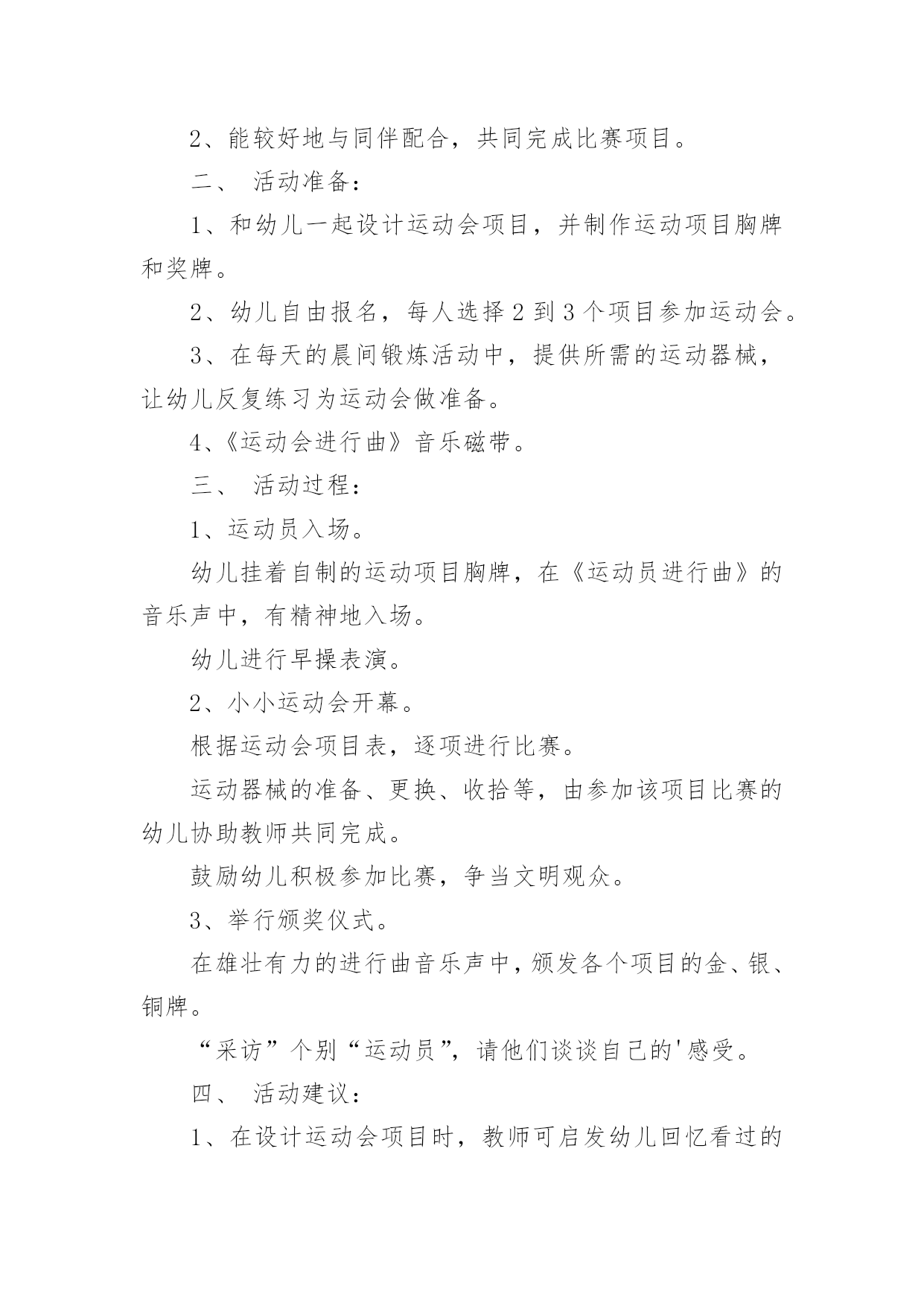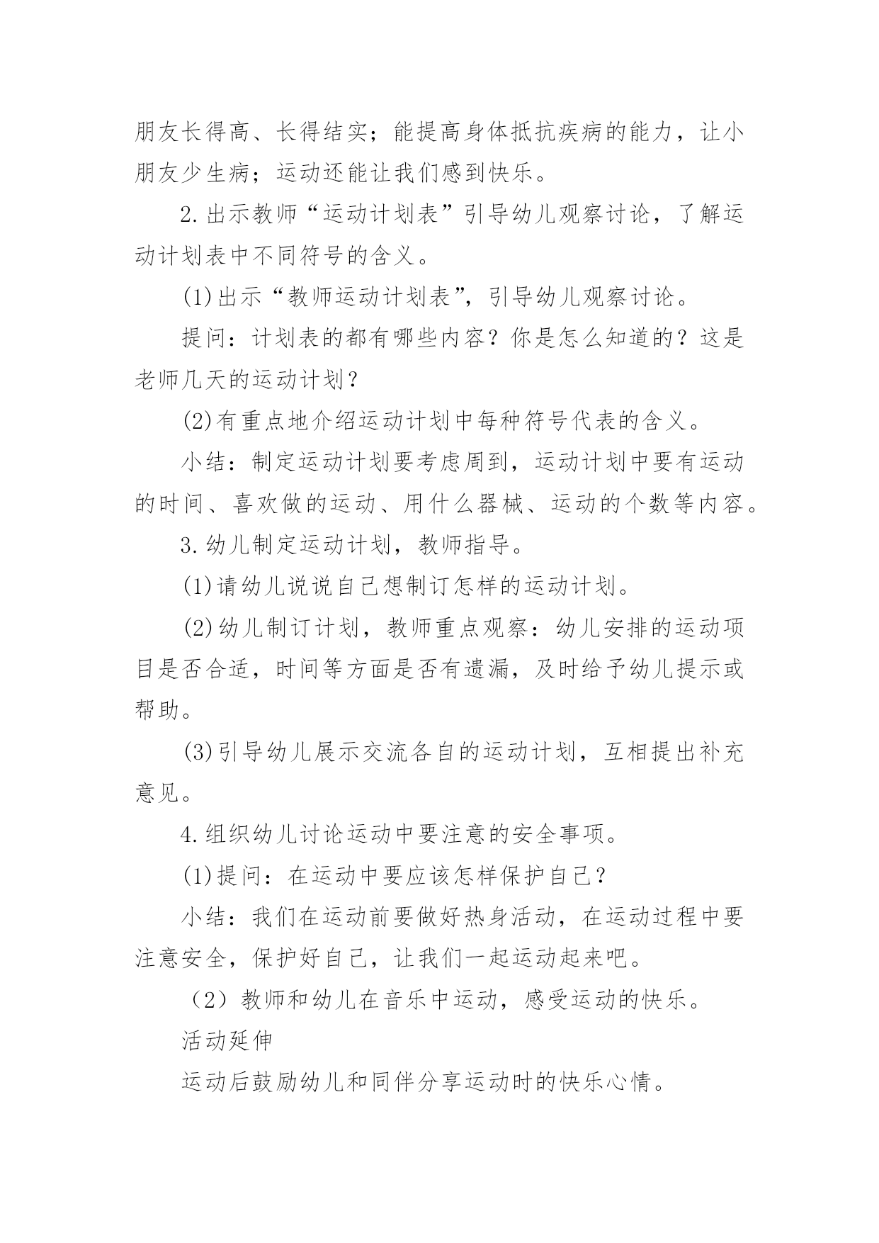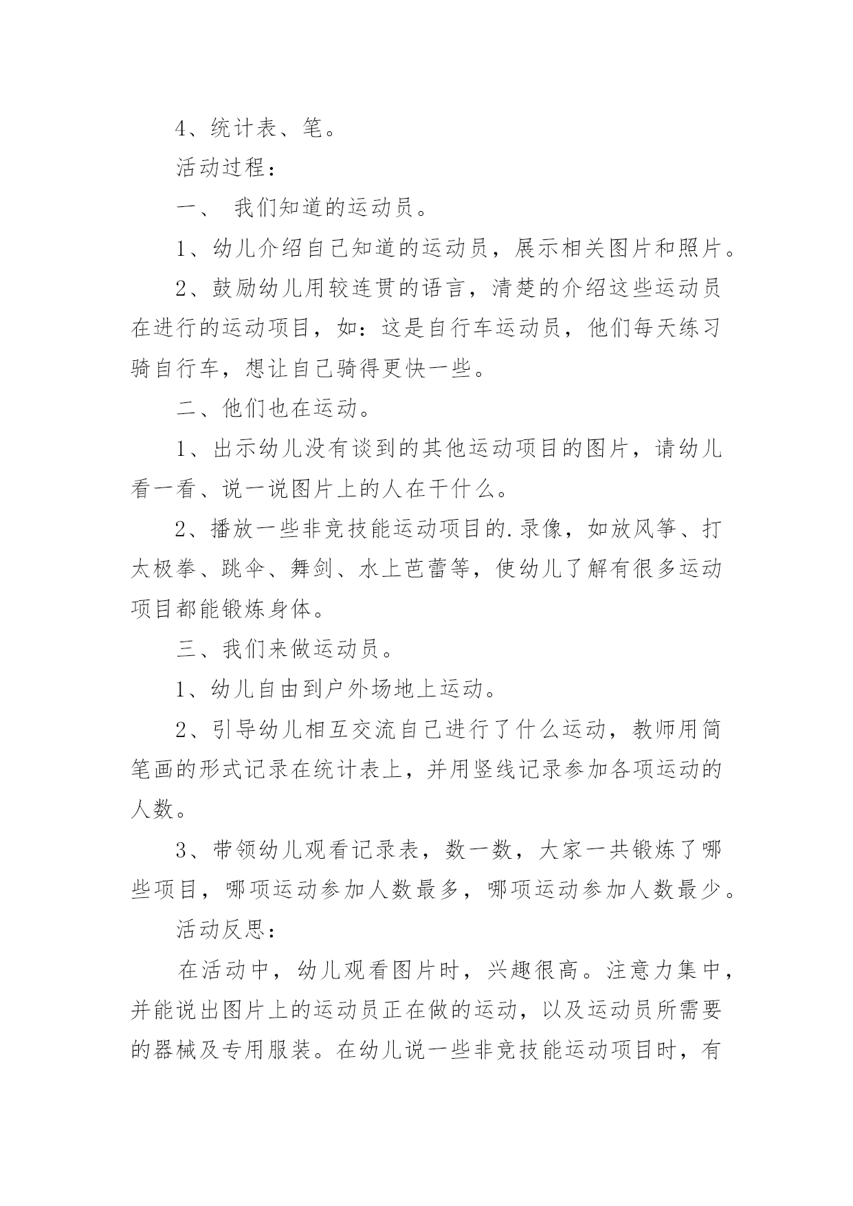 幼儿园中班运动教案幼儿园中班运动教案必备【15篇】作为一位兢兢业业的人民教师,时常需要用到教案,借助教案可以提高教学质量,收到预期的教学效果。那么什么样的教案才是好的呢?以下是小编收集整理的幼儿园中班运动教案,仅供参考,欢迎大家阅读。幼儿园中班运动教案1活动目标学习择臂动作,增强上肢肌肉的力量,提高幼儿身体的灵活性和协调性。重点与难点能抬高手臂,将手中物体用力掷向目标。活动准备1.小皮球若干,装在废旧的丝袜中打上结为流星球。2.在树上、墙上或一家高度的绳子上布置好有各种野兽图像的活动场景。3.系在竹竿上可以操作摆动的大老鹰一个。4.录音机一架、磁带若干。活动过程1.扮演角色,活动身体。(1)教师启发:我们小朋友真聪明,做了许多流星球,今天我们就来做杂技党员,听着音乐,玩流星球好吗?(2)全体幼儿跟着老师玩流星球,听着音乐,进行身体的预备活动——向前和身体两边甩球;抛接球;从头顶和胯下传球:两人合作,蹦跳过对方从自己脚底下甩过来的球。2.提供材料。自由练习。(1)教师引导:“这里挂着几条绳子,你们一定要想办法把手中的流星球投过绳子,投得越远越好。”(2)幼儿自由选择各种高度和距离的'绳子练习投掷,教师观察各种不同发展水平幼儿的活动状况。3.难点练习,重点指导。(1)幼儿站在起点线上,对着挂在绳子上的各种野兽进行目标投掷练习。教师讲解动作要领“眼看前方。手臂抬起,对准目标用力投。”(2)幼儿自由选择挂在树上、墙和上和绳子的目标,进行打野兽的练习,教师随机观察指导。(3)做游戏:“打老鹰”。教师出示系在长竹竿上的“大老鹰”,忽高忽低,四处奔跑,幼儿根据这一活动目标的位置和方向,调准自己对位置和方向,对准“大老鹰“’投掷手中的流星球。活动结束:放松身体,慢慢地走回教室休息。幼儿园中班运动教案2一、活动目标:1、能积极参与自己选择的运动项目。2、能较好地与同伴配合,共同完成比赛项目。二、活动准备:1、和幼儿一起设计运动会项目,并制作运动项目胸牌和奖牌。2、幼儿自由报名,每人选择2到3个项目参加运动会。3、在每天的晨间锻炼活动中,提供所需的运动器械,让幼儿反复练习为运动会做准备。4、《运动会进行曲》音乐磁带。三、活动过程:1、运动员入场。幼儿挂着自制的运动项目胸牌,在《运动员进行曲》的音乐声中,有精神地入场。幼儿进行早操表演。2、小小运动会开幕。根据运动会项目表,逐项进行比赛。运动器械的准备、更换、收拾等,由参加该项目比赛的幼儿协助教师共同完成。鼓励幼儿积极参加比赛,争当文明观众。3、举行颁奖仪式。在雄壮有力的进行曲音乐声中,颁发各个项目的金、银、铜牌。“采访”个别“运动员”,请他们谈谈自己的'感受。四、活动建议:1、在设计运动会项目时,教师可启发幼儿回忆看过的体育比赛或玩过的体育游戏进行设计,要求有一定的速度、力度。与此同时,还可给运动项目起个有意思的名字,如蚂蚁搬豆、小牛拉车、小老虎下山等,以增强幼儿的参与兴趣。2、如有接力赛,可引导幼儿规定每组人数,并事先选好队员,共同练习。1234幼儿园中班运动教案,运动对于幼儿的成长是一件很重要的事情,幼儿要适量的运动才能拥有一个健康的身体,才能健康的成长,所以对于幼儿来说,运动是必不可少的一件事情。幼儿园中班运动教案3活动目标:1、了解一些常见的运动项目,体验做运动员的欢乐和自豪。2、会自主选择运动项目,知道运动能锻炼身体。3、通过活动锻炼幼儿的跳跃能力。4、增强合作精神,提高竞争意识。活动重难点:了解一些常见的运动项目,知道运动能锻炼身体。活动准备:1、幼儿收集各种运动项目及其运动员代表的图片、照片。2、非竞技运动的图片。3、户外场地,各种小型器械。4、统计表、笔。活动过程:一、我们知道的运动员。1、幼儿介绍自己知道的运动员,展示相关图片和照片。2、鼓励幼儿用较连贯的语言,清楚的介绍这些运动员在进行的运动项目,如:这是自行车运动员,他们每天练习骑自行车,想让自己骑得更快一些。二、他们也在运动。1、出示幼儿没有谈到的其他运动项目的图片,请幼儿看一看、说一说图片上的人在干什么。2、播放一些非竞技能运动项目的.录像,如放风筝、打太极拳、跳伞、舞剑、水上芭蕾等,使幼儿了解有很多运动项目都能锻炼身体。三、我们来做运动员。1、幼儿自由到户外场地上运动。2、引导幼儿相互交流自己进行了什么运动,教师用简笔画的形式记录在统计表上,并用竖线记录参加各项运动的人数。3、带领幼儿观看记录表,数一数,大家一共锻炼了哪些项目,哪项运动参加人数最多,哪项运动参加人数最少。活动反思:在活动中,幼儿观看图片时,兴趣很高。注意力集中,并能说出图片上的运动员正在做的运动,以及运动员所需要的器械及专用服装。在幼儿说一些非竞技能运动项目时,有的幼儿说到了放风筝、跳绳,有的幼儿说到了扔石头、转呼拉圈等活动名称呢!在记录自己的活动项