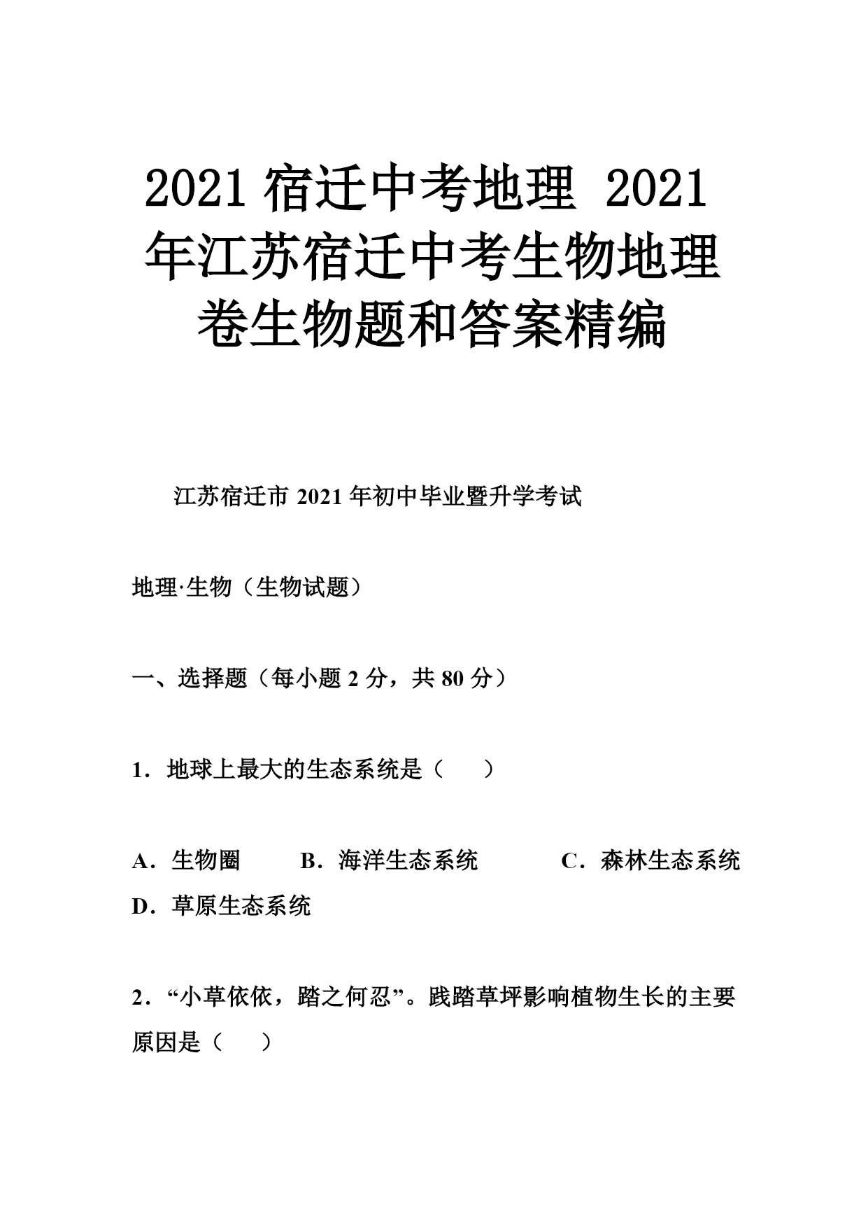 宿迁中考地理-江苏宿迁中考生物地理卷生物题和答案精编