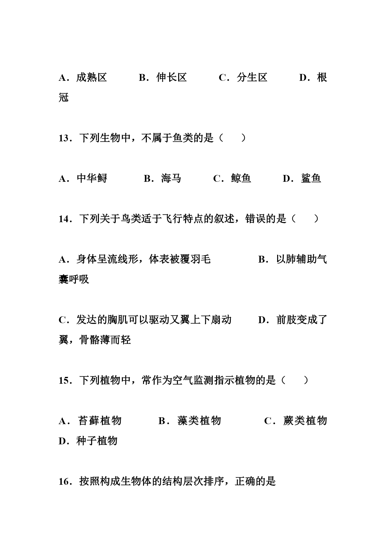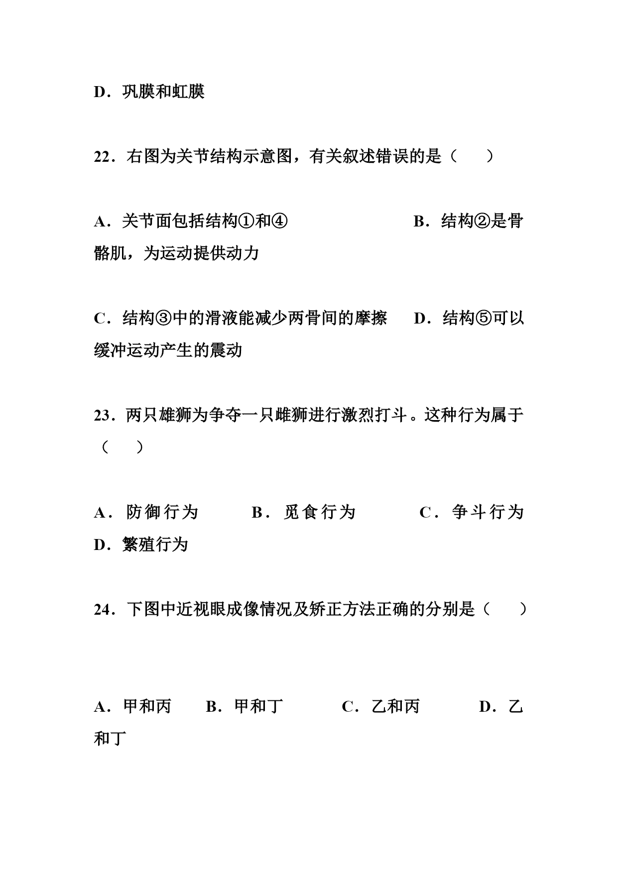 宿迁中考地理-江苏宿迁中考生物地理卷生物题和答案精编.doc