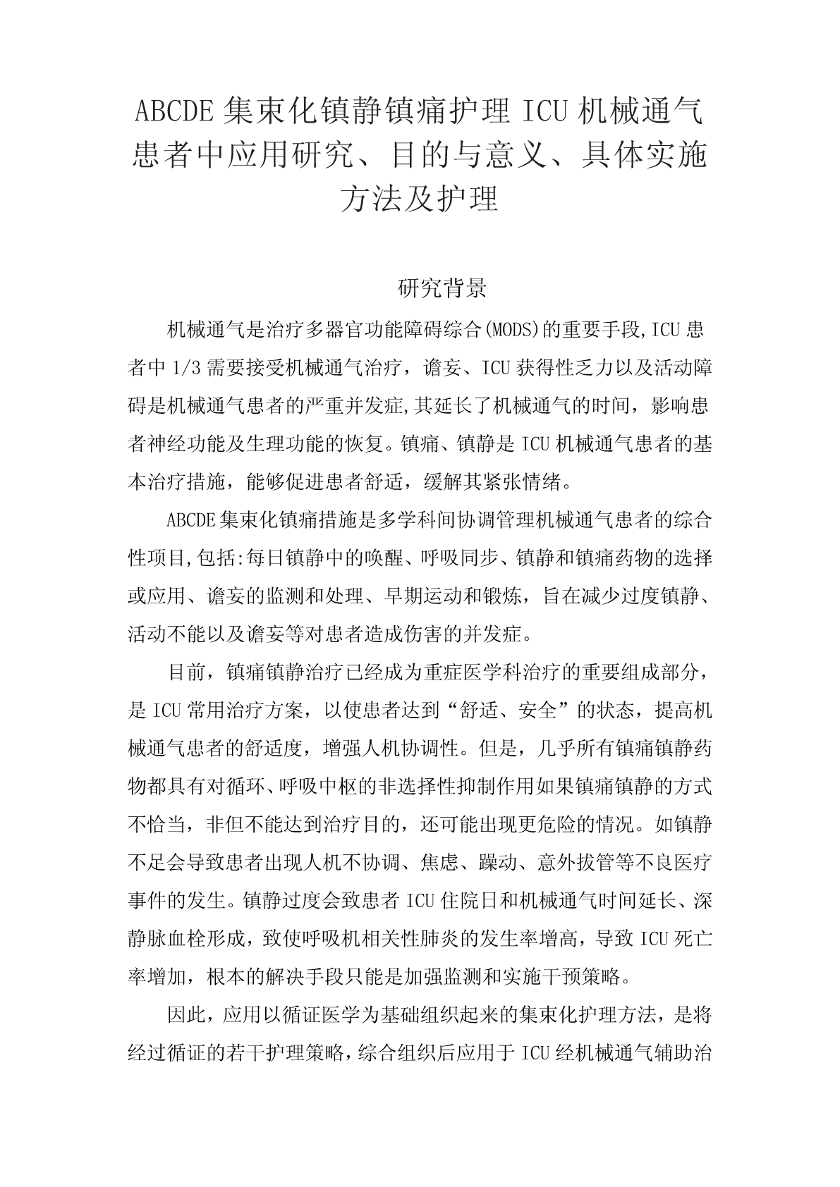 ABCDE集束化镇静镇痛护理ICU机械通气患者中应用研究、目的与意义、具体.pdf
