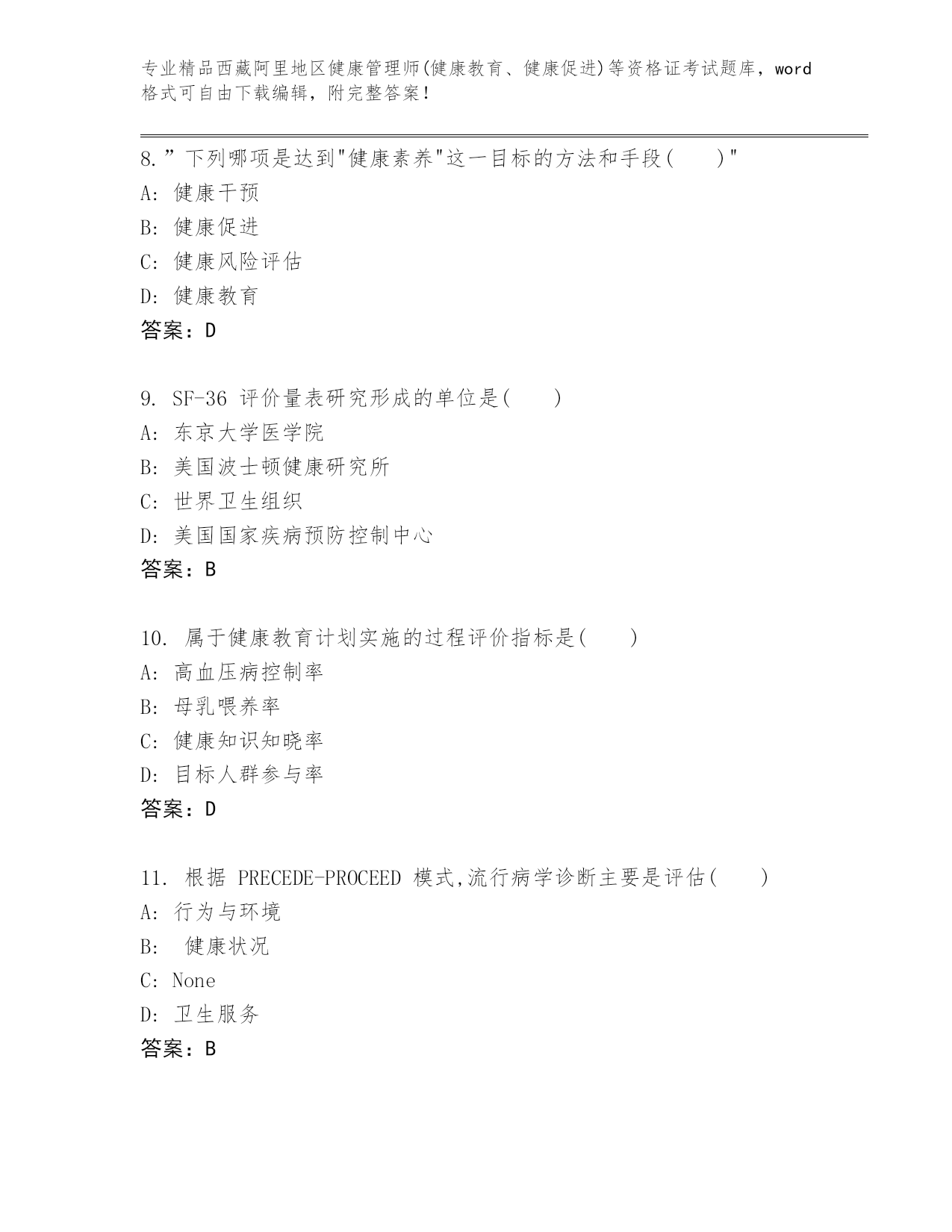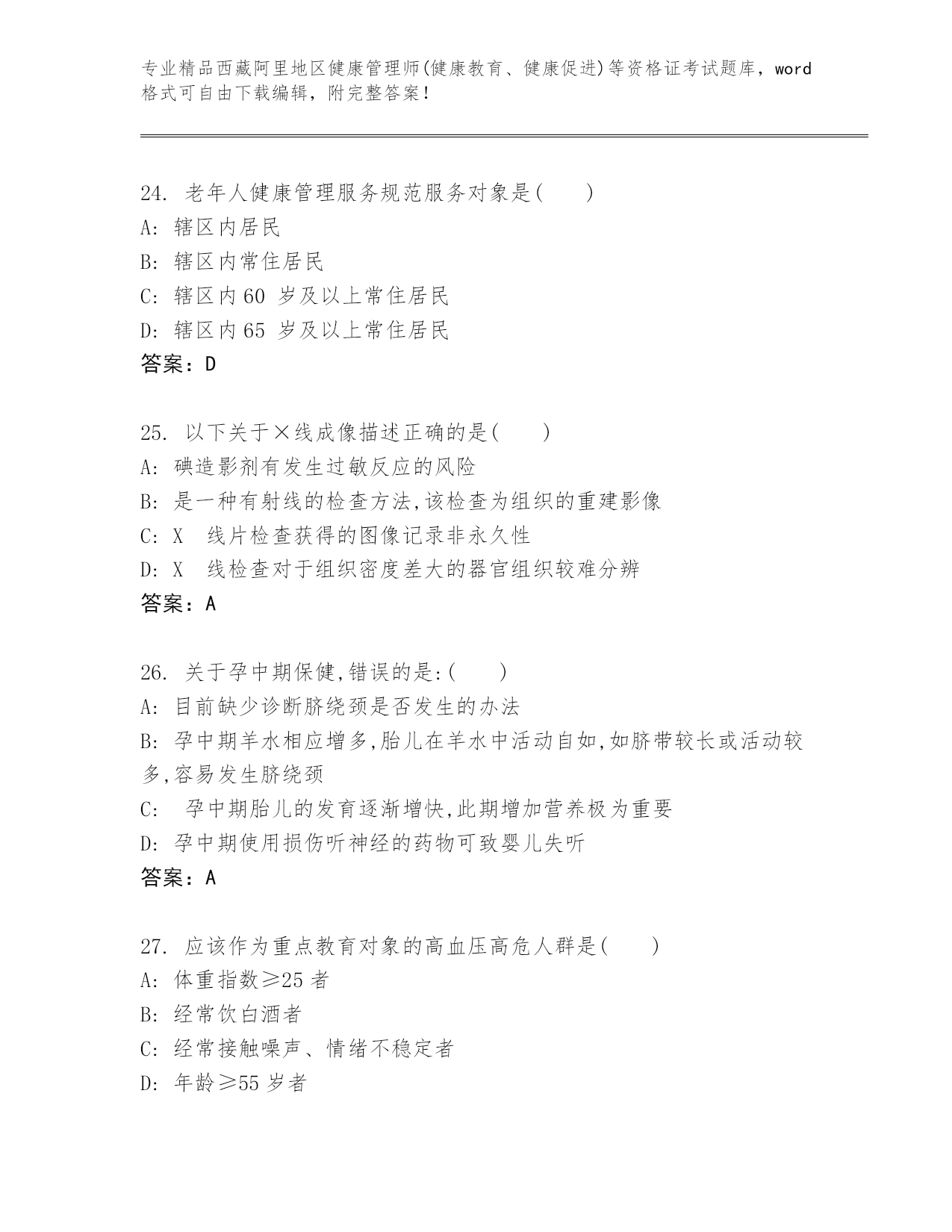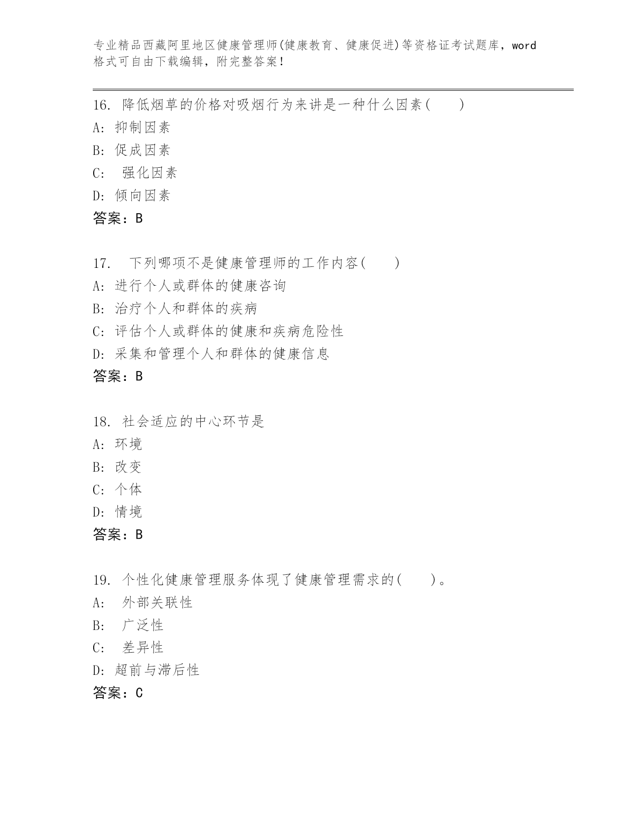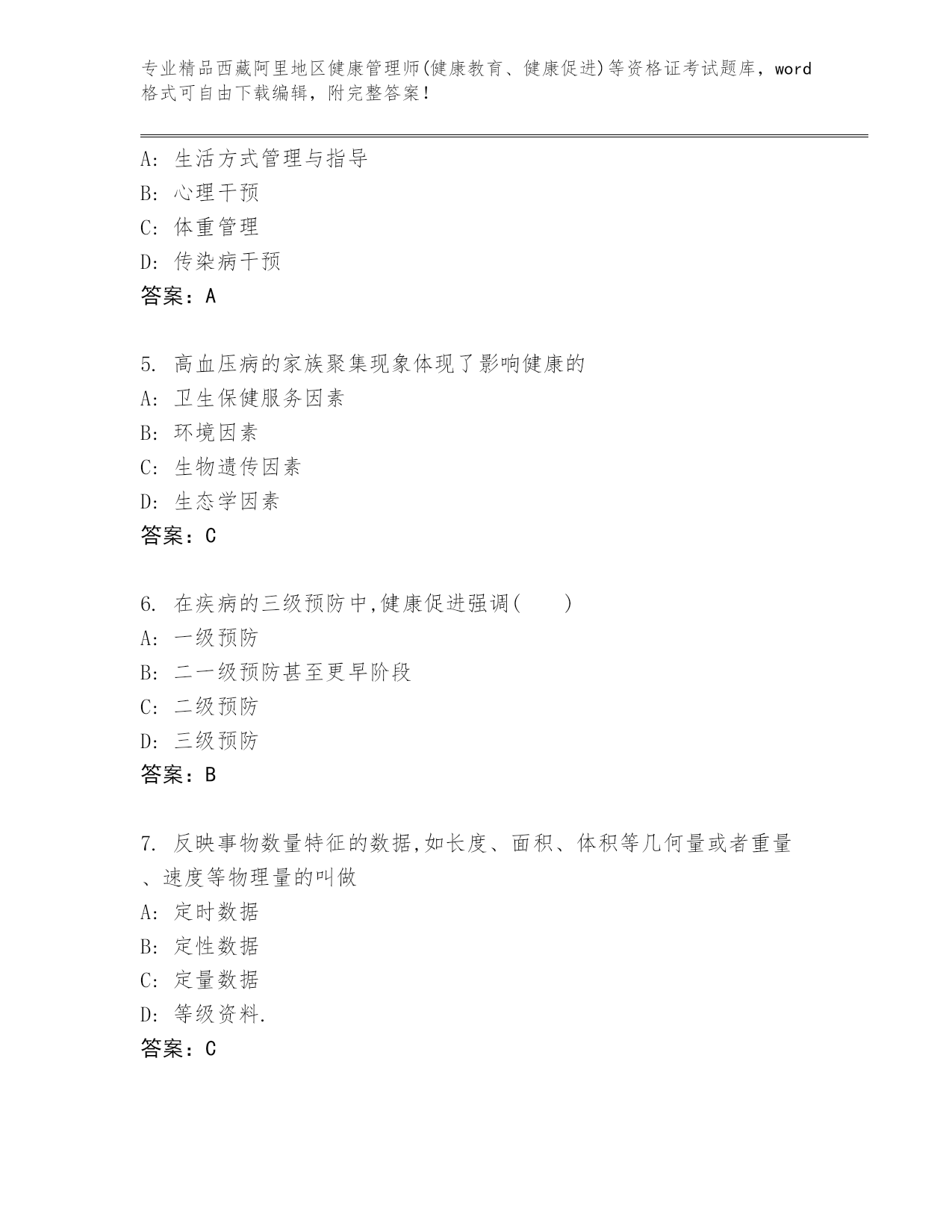 历年西藏阿里地区健康管理师(健康教育、健康促进)等资格证考试题库(精选题).docx