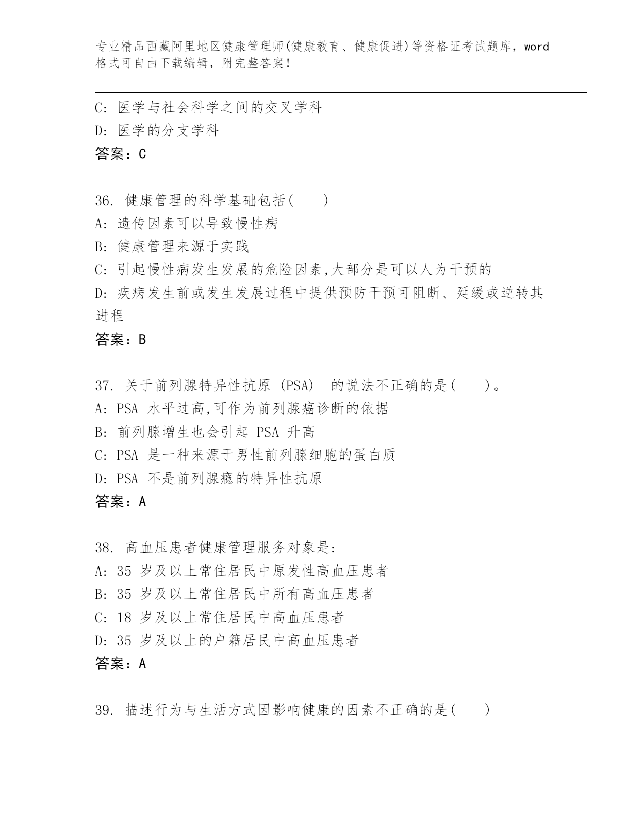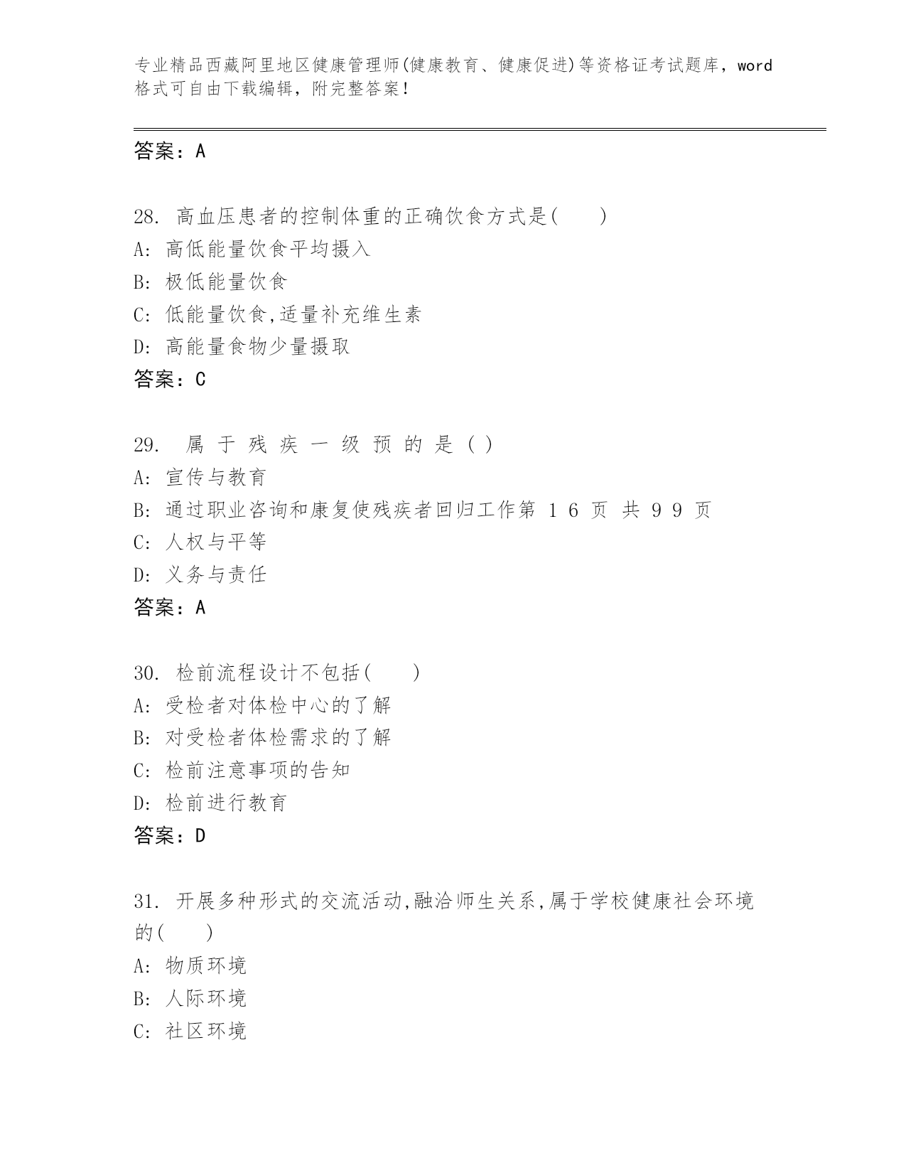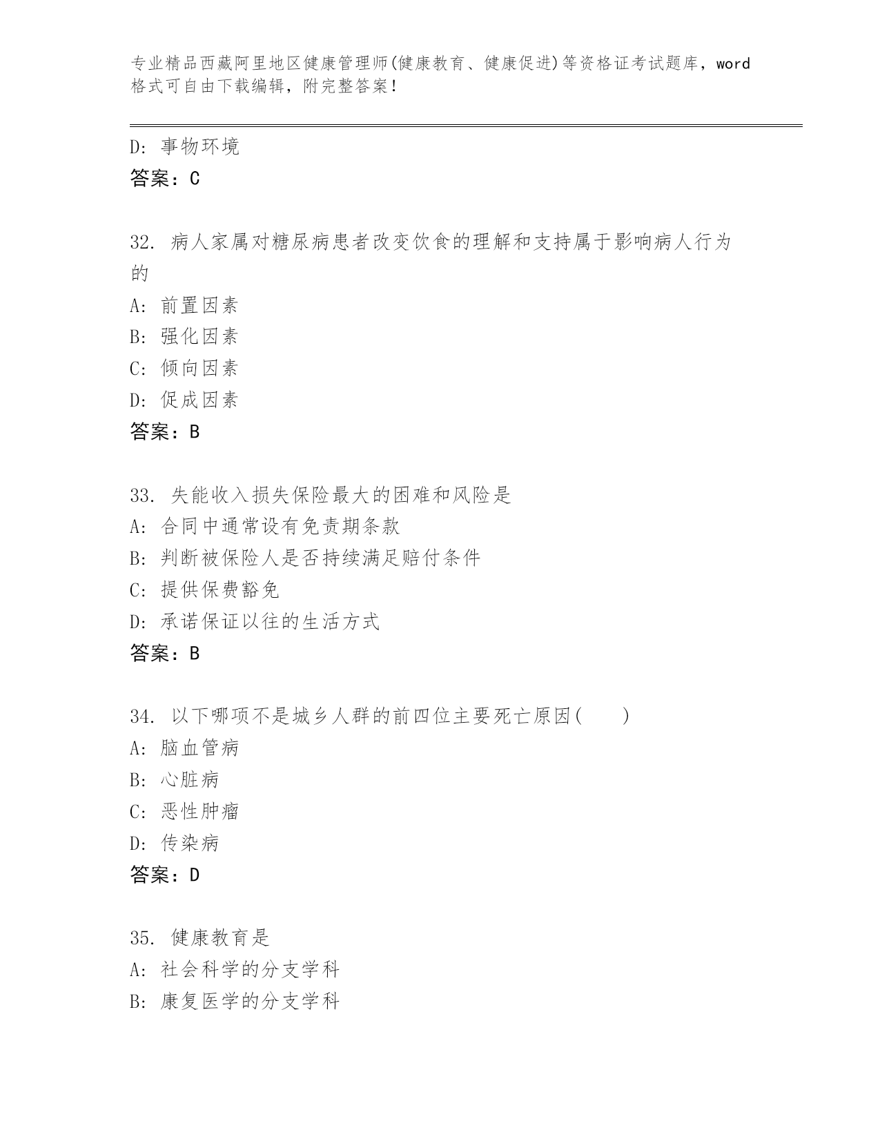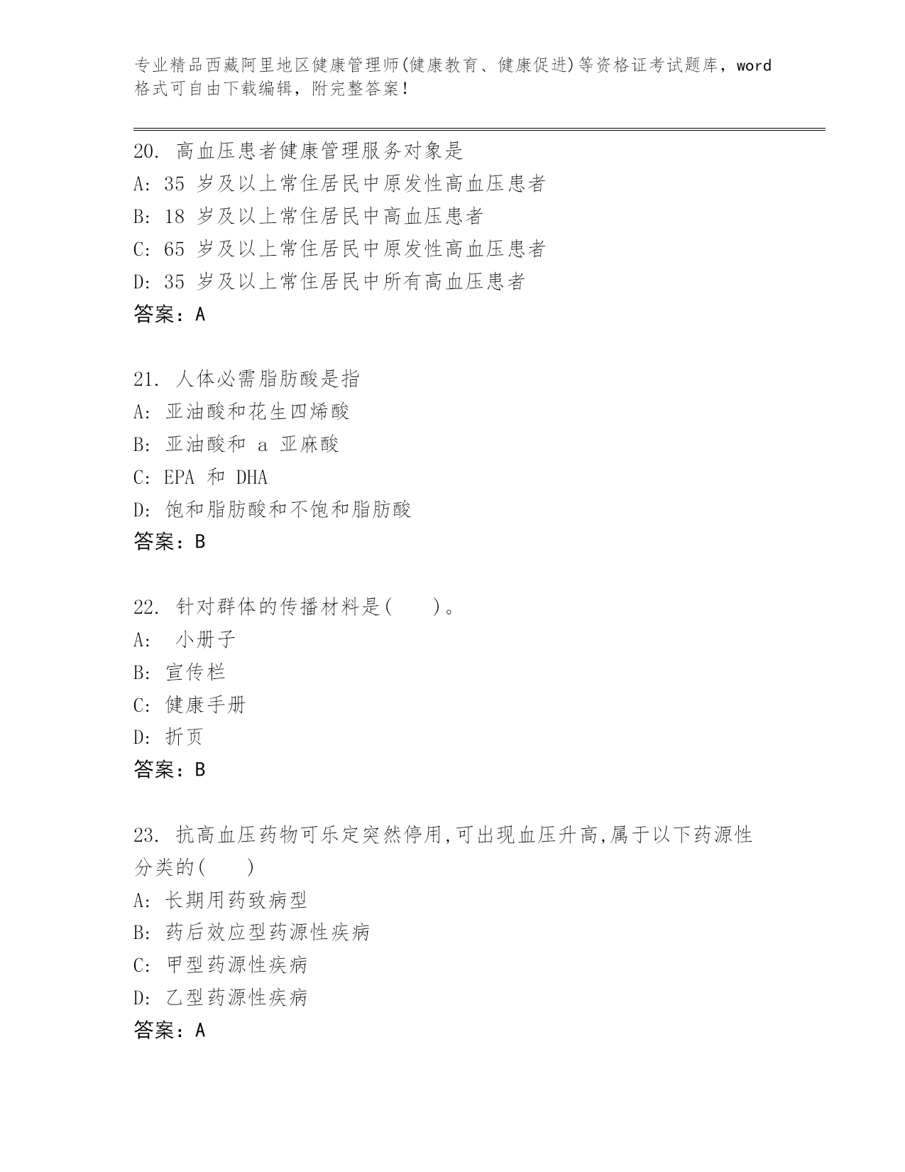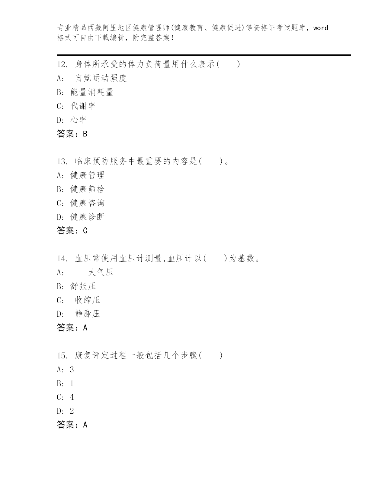 历年西藏阿里地区健康管理师(健康教育、健康促进)等资格证考试题库(精选题).docx