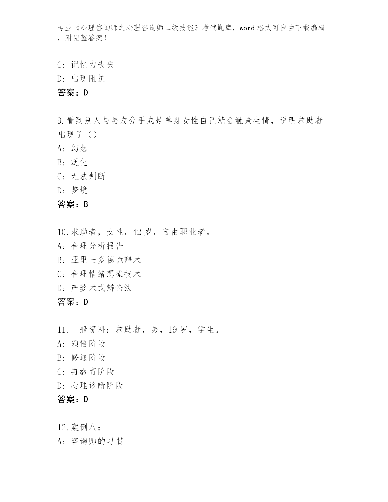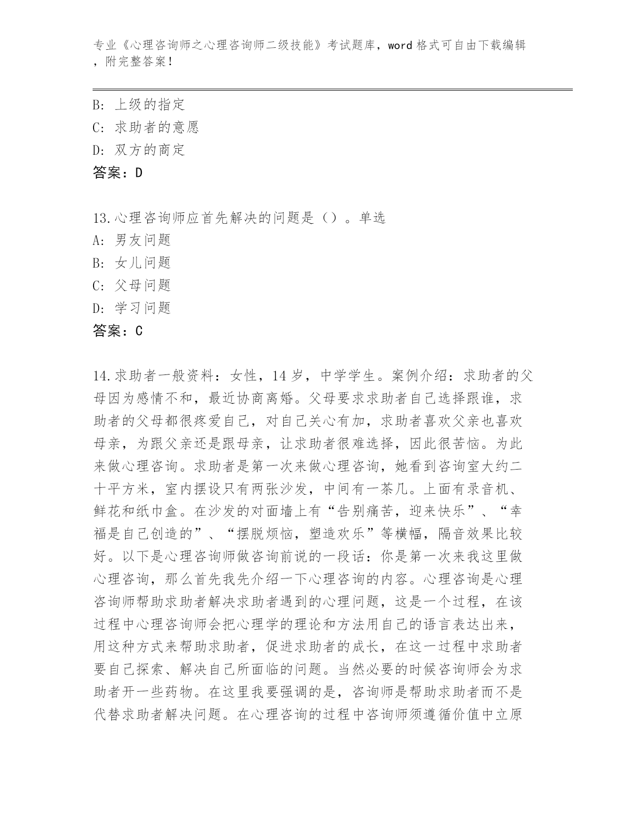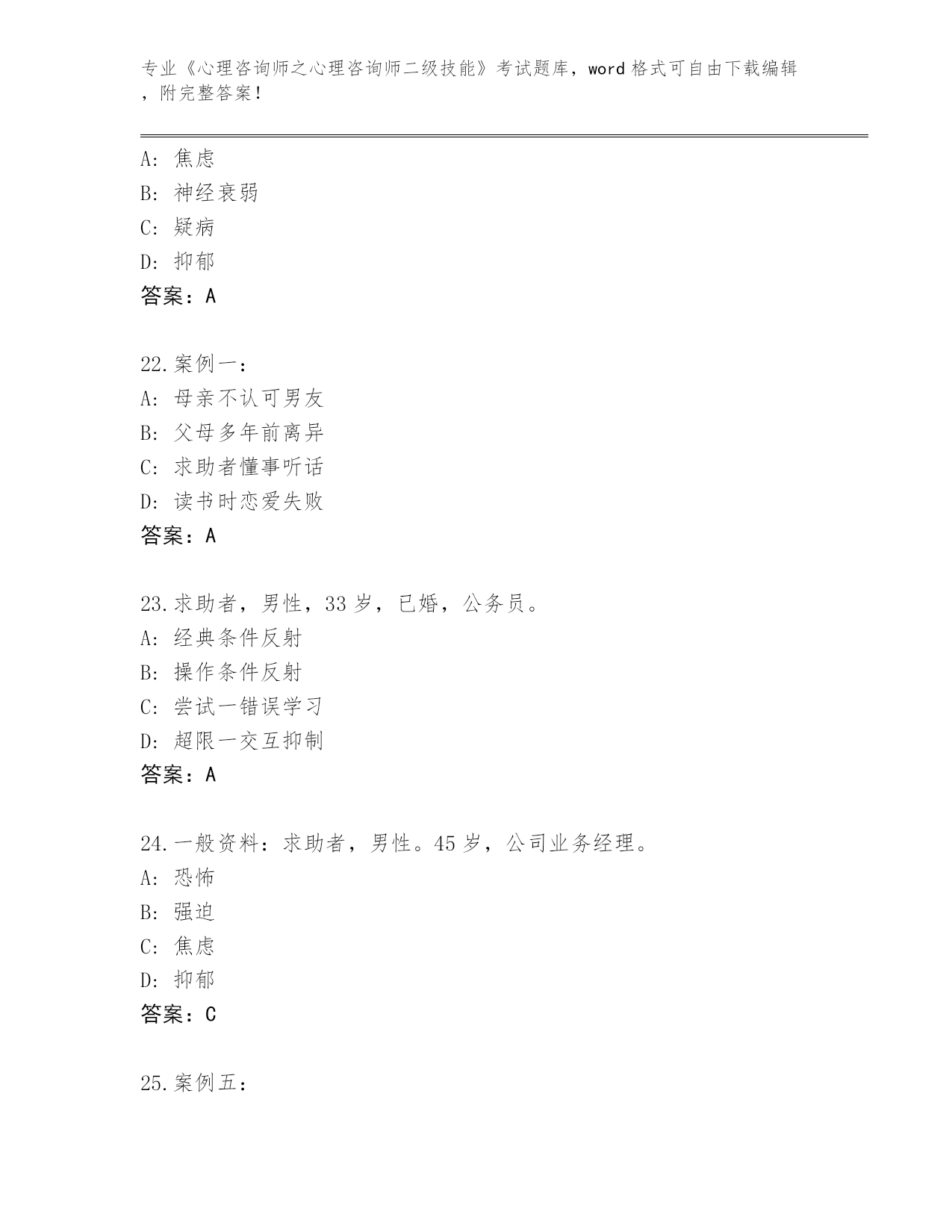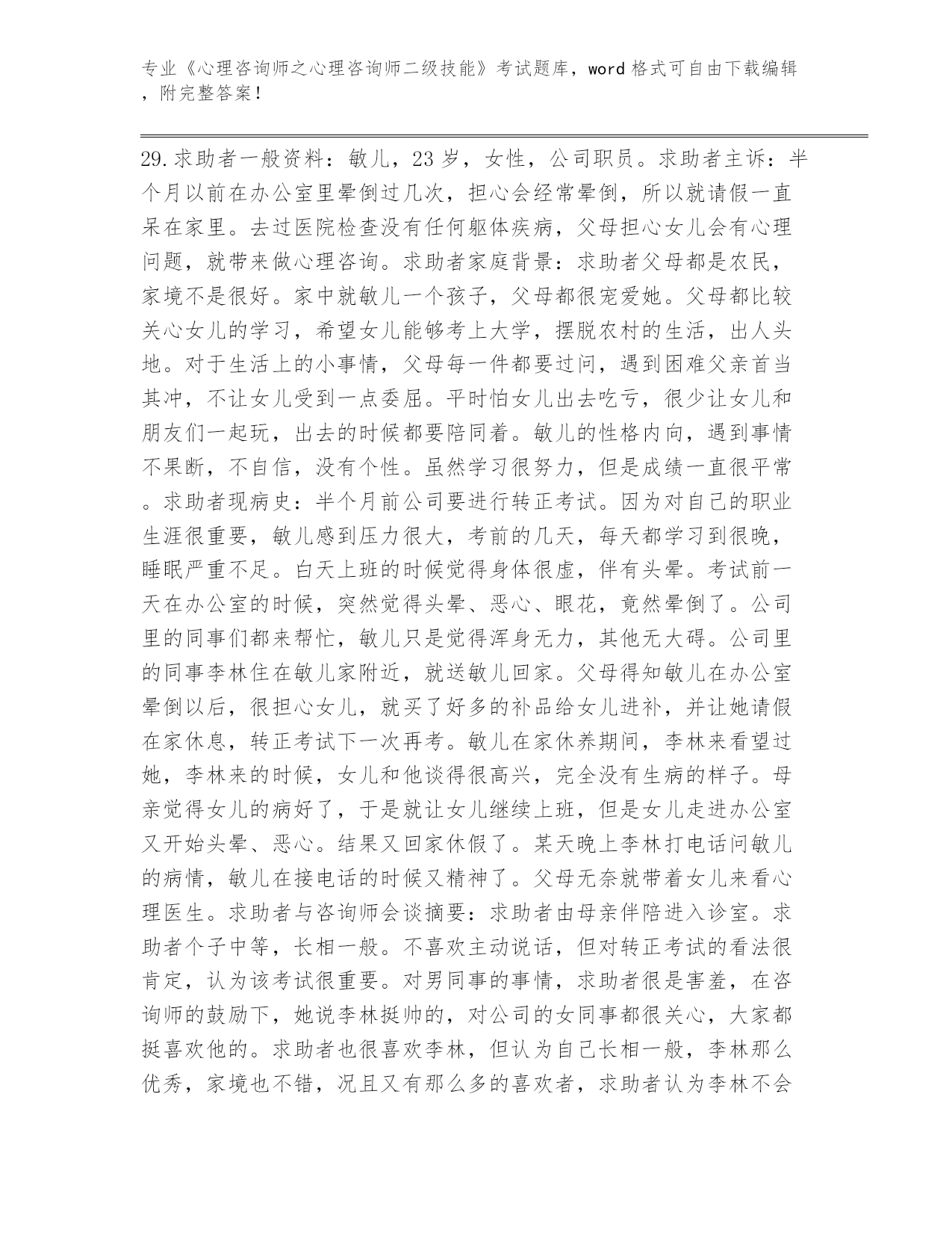 2024年湖南省《心理咨询师之心理咨询师二级技能》考试题库含下载答案