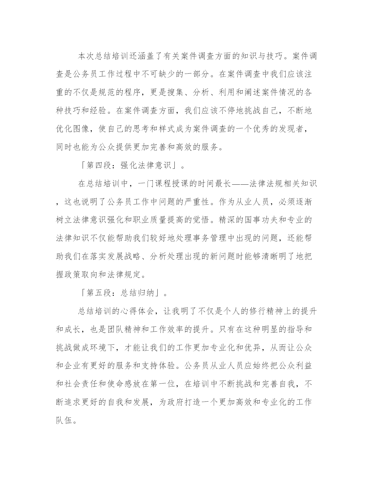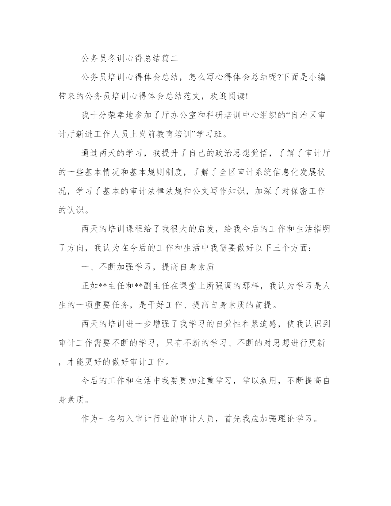 公务员冬训心得总结(汇总22篇)在写总结时,我们可以对自己的表现进行客观的评价和分析,发现问题并提出改进的措施。要写一篇完美的总结,首先需要对这段时间内的工作、学习或生活经历进行全面梳理。这些范文包括了不同领域的总结,供大家参考和借鉴。公务员冬训心得总结篇一作为一名公务员,不管是新进入公职还是在工作中的老手,总有需要参加各种形式的培训。本人最近参加了一次总结培训,除了感受到强烈的社会责任感和使命感外,对于工作中的一些问题也有了新的理解和认识。下面将详细讲述本次总结培训的心得体会。「第二段:感悟人员管理」。在这次总结培训中,我最大的收获之一就是获得了有关如何更好地管理人员的经验。在人员管理方面,应该强调“管人和理人”的平衡。平衡的体现不仅在于要做好员工工作上的支持和帮助,还在于对员工的尊重和信任。这种处理方案的平衡平衡需要根据每个人的性格特点来进行调整。从长远考虑,将他们转化为企业的长期利益就是企业最应该做的主要任务。因此,作为一个具有社会责任感和使命感的公务员,应该在工作中注重人员的管理和合理利用。「第三段:认识案件调查」。本次总结培训还涵盖了有关案件调查方面的知识与技巧。案件调查是公务员工作过程中不可缺少的一部分。在案件调查中我们应该注重的不仅是规范的程序,更是搜集、分析、利用和阐述案件情况的各种技巧和经验。在案件调查方面,我们应该不停地挑战自己,不断地优化图像,使自己的思考和样式成为案件调查的一个优秀的发现者,同时也能为公众提供更加完善和高效的服务。「第四段:强化法律意识」。在总结培训中,一门课程授课的时间最长――法律法规相关知识,这也说明了公务员工作中问题的严重性。作为从业人员,必须逐渐树立法律意识强化和职业质量提高的觉悟。精深的国事功夫和专业的法律知识不仅能帮助我们较好地处理事务管理中出现的问题,还能帮助我们在落实发展战略、分析处理出现的新问题时能够清晰明了地把握政策取向和法律规定。「第五段:总结归纳」。总结培训的心得体会,让我明了不仅是个人的修行精神上的提升和成长,也是团队精神和工作效率的提升。只有在这种明显的指导和挑战做成环境下,才能让我们的工作更加专业化和优异,从而让公众和企业有更好的服务和支持体验。公务员从业人员应始终把公众利益和社会责任和使命感放在第一位,在培训中不断挑战和完善自我,不断追求更好的自我和发展,为政府打造一个更加高效和专业化的工作队伍。公务员冬训心得总结篇二公务员培训心得体会总结,怎么写心得体会总结呢?下面是小编带来的公务员培训心得体会总结范文,欢迎阅读!我十分荣幸地参加了厅办公室和科研培训中心组织的“自治区审计厅新进工作人员上岗前教育培训”学习班。通过两天的学习,我提升了自己的政治思想觉悟,了解了审计厅的一些基本情况和基本规则制度,了解了全区审计系统信息化发展状况,学习了基本的审计法律法规和公文写作知识,加深了对保密工作的认识。两天的培训课程给了我很大的启发,给我今后的工作和生活指明了方向,我认为在今后的工作和生活中我需要做好以下三个方面:一、不断加强学习,提高自身素质正如**主任和**副主任在课堂上所强调的那样,我认为学习是人生的一项重要任务,是干好工作、提高自身素质的前提。两天的培训进一步增强了我学习的自觉性和紧迫感,使我认识到审计工作需要不断的学习,只有不断的学习、不断的对思想进行更新,才能更好的做好审计工作。今后的工作和生活中我要更加注重学习,学以致用,不断提高自身素质。作为一名初入审计行业的审计人员,首先我应加强理论学习。我要扎扎实实地学习各项基本理论,认真学习邓小平理论、“三个代表”重要思想和科学发展观,用科学的理论武装自己。其次,我要加强财务和法律方面知识的学习。由于我本科和分析生的专业所限,加之以往主要在企业中从事技术研发工作的原因,导致我在财务和法律方面的知识比较困乏,因此我在今后的工作中要更加注重这两方面知识的学习。最后,我还要想各位领导和同事们学习。作为一名审计人员,不仅要精通业务、有良好的思想品质,更要有较强的为人处事能力。不仅要学文化、学理论、学业务,更重要的是学做人,这样才能不断提高认知水平。今后的工作中,我要多向领导、同事们学习,虚心向他们请教,学习他们优良的品质和作风。二、严格要求自己,提高自身职业道德素质和党性修养通过马忠林书记的介绍,我知道了我们全区审计机关正在开展创自治区文明行业活动,我们全区各级审计机关要在保持原有荣誉的基础上,推动文明创建工作再上新台阶。作为一名党员,在创文活动和今后的工作中,我更应该严格要求自己,以党员的八条标准和审计署的“八不准”来对照和严格要求自己。要不断强化自己的政治意识,提高自己的职业道德素质,提升自己的党性修养,真正做到勤政廉政,用实际行动来接受党组织的考验。