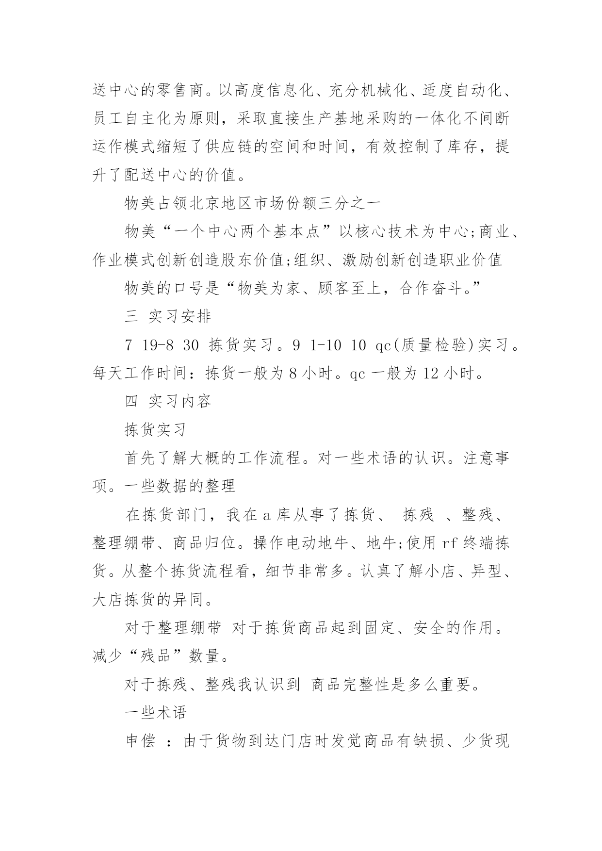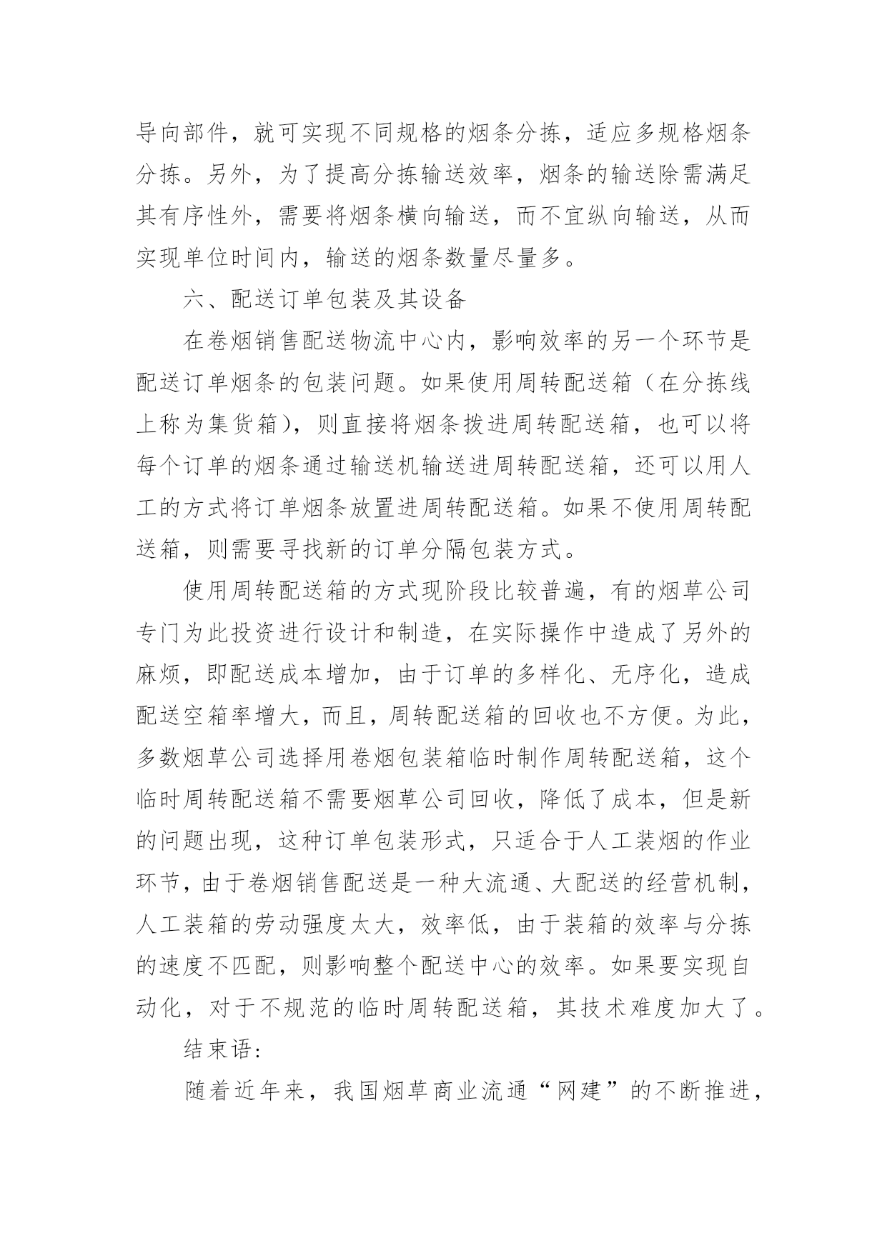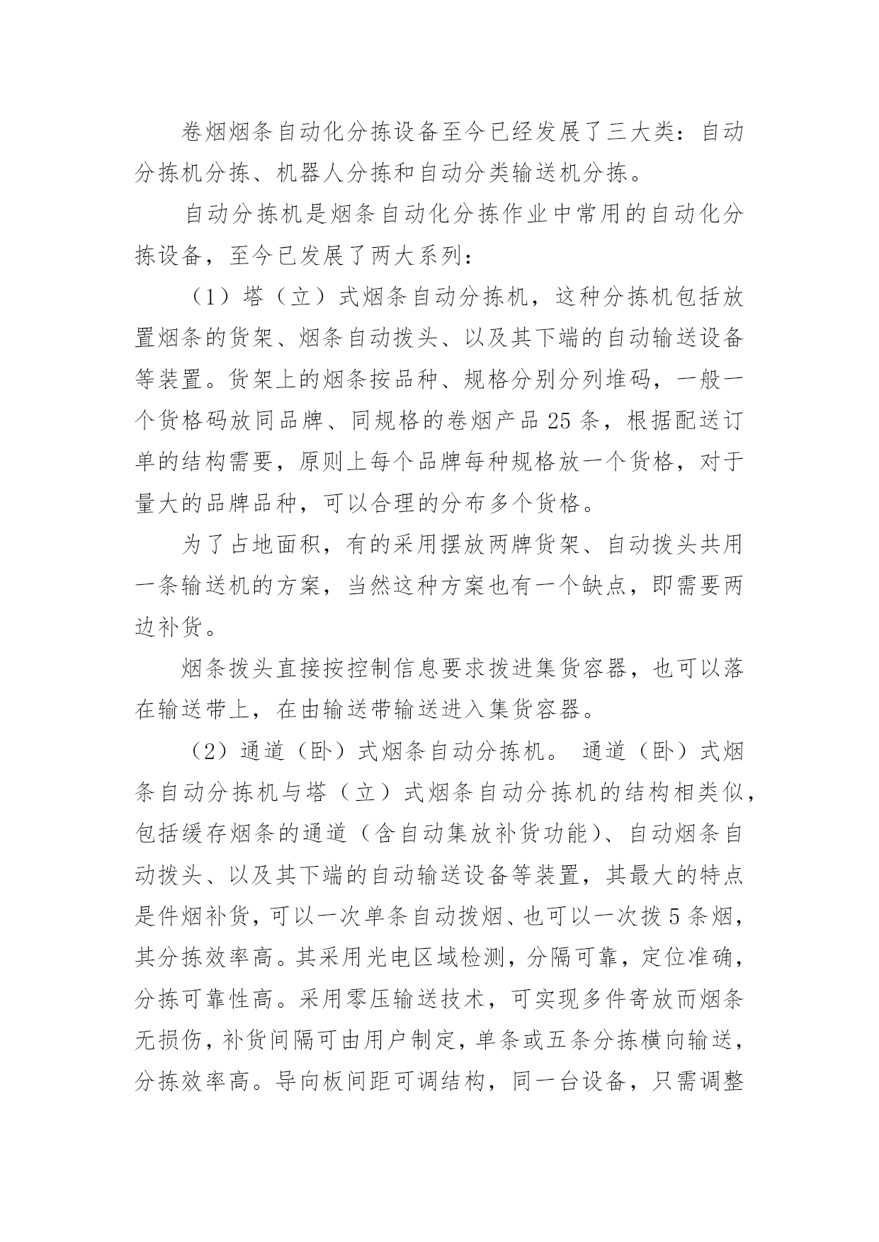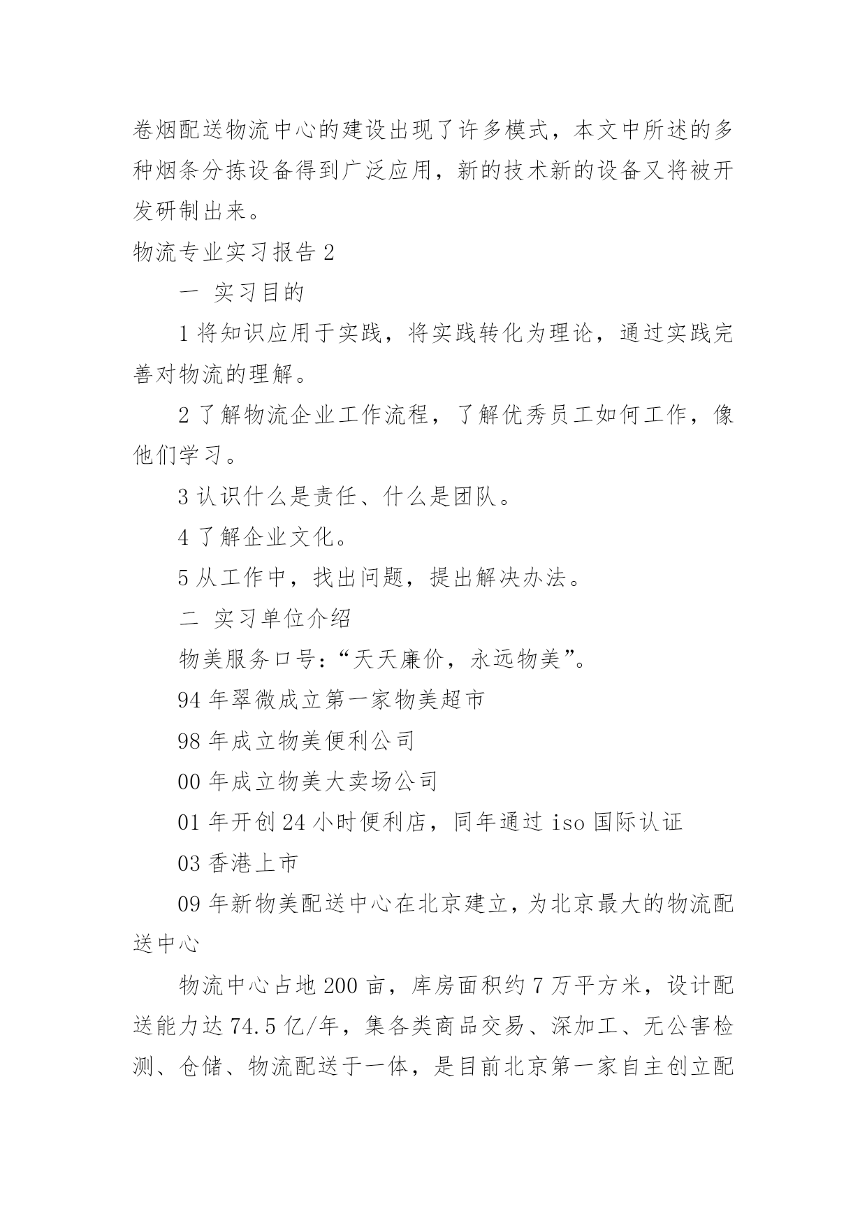 物流专业实习报告物流专业实习报告在经济发展迅速的今天,报告与我们愈发关系密切,其在写作上具有一定的窍门。一听到写报告就拖延症懒癌齐复发?以下是小编为大家收集的物流专业实习报告,欢迎阅读,希望大家能够喜欢。物流专业实习报告1简介:广水卷烟厂是国家烟草专卖局湖北中烟工业有限责任公司的下属单位,属国营大中型企业,位于鄂北门户广水市,毗邻京广铁路、107、316国道和京珠、汉十高速公路。1946年建厂,1970年扩建,1986年纳入国家计划。广水卷烟厂位于广水办事处中山大道,1972年正式建厂(前身为伞厂),经过30多年的发展,于20xx年完成改制并入武烟集团,20xx年因公司制改革,更名为湖北中烟有限责任公司广水卷烟厂。主要产品是红金龙(硬火之舞)、硬红金龙(喜)、新广东等。配送物流中心组成设备的研究:一、卷烟销售自动配送工艺卷烟销售配送物流中心是按订单从事卷烟产品配单(集货、流通加工、拣选、配货),并组织对用户的送货,以高水平实现销售和供应服务的现代流通设施,是现代物流的标志,它能解决用户多样化需求和厂商大批量专业化生产的矛盾。配送的意义在经济合理区域范围内,根据用户要求,对卷烟商品进行拣选、加工、包装、组配等作业,并按时送达指定地点。配货和送货的有机结合,是物流功能要素的一种形式,商流与物流的合一。细分卷烟产品的典型配送作业流程是:进货→储存→拆零→分拣→配货→包装→送货。在卷烟销售配送物流中心的规划中,需要重点考虑与社会供应链连接,必须重点考虑物流主干道的通畅。二、配送中心的设备组成卷烟销售配送物流中心内的主要作业活动,包括卷烟的仓储、搬运、拣取、配单、缓存等物流作业,涉及以下几类设备:(1)容器设施:托盘、配送箱、纸袋(可降解塑料袋)等。托盘用于卷烟成品实托盘的存储、搬运,配送箱、纸袋(可降解塑料袋)为分拣作业后形成订单包件后的即配送容器。一般地,配送容器须根据地区订单大小来划分为多个等级,其目的是提高订单包件的有效运输,有利于配送容器的规范化,也方便配送,随着技术的不断发展,如选用自动订单包装处理工艺,则25条、30条的包装为首选。(2)储存设备:涉及多种仓储设备。按现阶段国内的实际应用情况,包括普通平库,和各种适合件烟存储的自动化立体仓库以及自动货柜。储存设备可分为货架和实现仓储的具体设备。(3)烟条分拣设备:至今为止,烟条的分拣设备已经发展了多种设备,有人工拣选货架,电子标签辅助拣选货架和自动化分拣设备等多类。(4)搬运设备:包括自动化配合的搬运设备(如AGV、轴驱动搬运台车等)、机械化搬运设备(如叉车、油压拖车等)、自动输送设备、分类分流输送设备,拆码盘设备、垂直搬运设备等。(5)流通加工设备:如集包裹包设备、外包装设备、印贴条码标签订单设备、拆箱设备、自动装箱设备、理货平台等,配送烟条的再包装,是影响卷烟配送分拣效率的一个很重要的环节。(6)卷烟销售配送物流中心外围设备:包括楼层转运设备、装卸货平台、装卸货设施、订单烟包暂存笼车(也可以用托盘处理)、废料处理设施等,需视配送中心的具体需求特性而备。三、储存货架储存系统是配送系统的中心环节,是配送网络的节点,是按计划来保管货物(包括原材料、领部件、在制品和产成品等),并对其数量或价值进行统计,提供有关储存物品的信息以供管理决策所用的场所。卷烟销售配送物流中心储存模式有多种,其选择的基础技术条件是“卷烟配送PBC分析研究”的结果、配送中心销售配送的市场总量大小,以及配送中心输送分拣工艺的自动化程度等因素。常见的储存货架有:(1)平库(直接摆在地上,或码放在托盘上摆放,或简易货架)+人工搬运仓储设施(液压搬运车、拖车、叉车等),其特点是简单,自动化程度低,人工操作,劳动强度大,效率低。由于受基础建设条件、以及卷烟配送物流配送中心规模大小的局限,这种储存设备在国内目前还很普遍。(2)自动化仓储货架。按建筑形式可分为库架合一式和库架分离式,库架合一式是指货架除了储存货物外,还可以作为建筑物的支撑结构,即货架是建筑物的一部分,库房与货架形成一体化结构。库架分离式是指储存货物的货架独立存在,即建筑建好以后,自动化仓库建在建筑物内部。四、自动输送系统卷烟销售配送物流中心的自动输送机系统有四大类,第一类是服务于立体仓储系统的出入库输送系统,第二类是为分拣线自动补烟的输送系统,第三类是输送分拣烟条的输送系统,第四类是输送订单烟的输送系统。五、自动化分拣作业及设备分拣作业就是将用户所订的货物从保管处取出来,按用户需求集中、分类放置。分拣、配货及送货是配送物流中心的主要智能,而送货是在配送物流中心之外进行的,所以分拣、配货就成了配送物流中心的核心工序,也是最耗费人力和时间的作业,它的效率直接影响捉配送中心的作业效率和经济效益,也是配送中心服务水平高低的重要因素。自动化分拣作业就是利用现