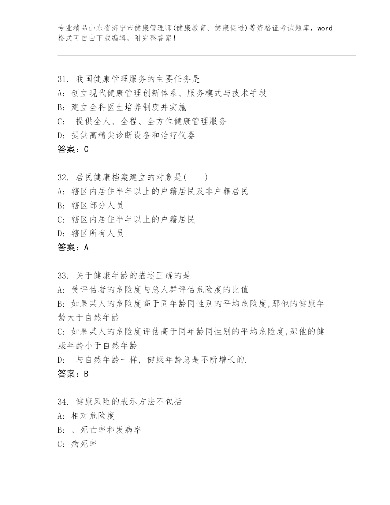 山东省济宁市健康管理师(健康教育、健康促进)等资格证考试大全附答案【轻巧夺冠】