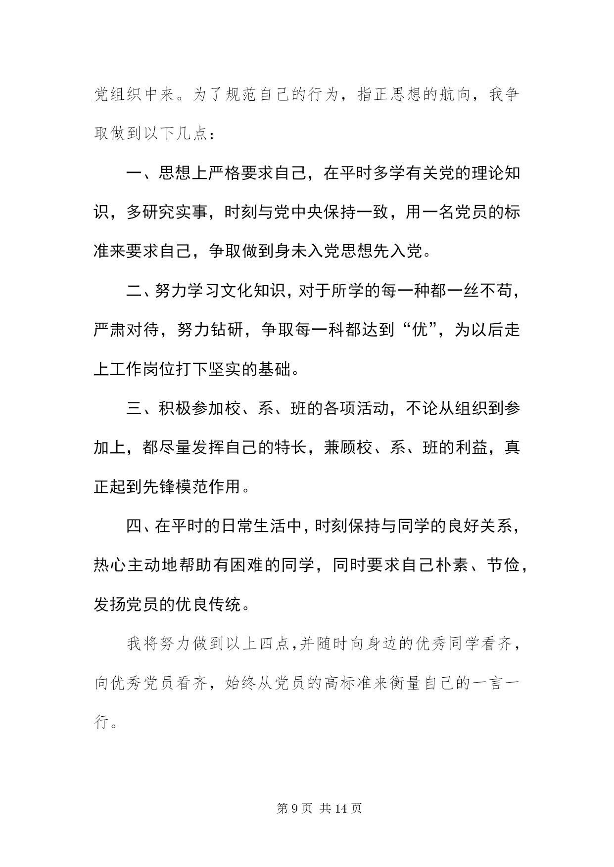 第PAGE\*Arabic\*MERGEFORMAT14页共NUMPAGES\*MERGEFORMAT14页研究生入党申请书3000字【篇一】XX年研究生入党申请书3000字敬爱的党组织:我十分激动得、郑重地提交的申请:我申请加入中国共产党,实现我一生为人民服务的理想!我从小就树立了一定要加入中国共产党的远大志向,并且一直持续到了今天,热情更是有增无减。党的光辉形象就牢牢地铭刻在我的心中,鼓舞着我前进。还记得刚刚迈入学校大门的我,由于对自己的严格要求,在加入少先队时很荣幸地被选为少先队员代表在全校发言,那一刻我第一次亲身感受到组织照耀下的光芒,并更加坚定了入党的信念。随后在不断学习和为之奋斗的漫漫征途上,我洒下了无数的汗水,也耕耘出了丰硕的果实。我深刻地体验到全心全意为人民服务的自豪与快乐,并下定决心为共产主义事业奋斗终身。于是在业余时间里,我经常通过各种渠道了解党。我知道,我们这一代年轻人生长在新中国,成长的每一步都与党的关怀有密切的联系。中国共产党从她成立之日起,一直忠实代表工人阶级和各族人民的根本利益,全心全意为人民服务;它具有远见卓识,能把握社会历史发展的客观规律;她具有严密的组织性和纪律性,能够坚韧不拔地团结奋斗;具有实事求是、走群众路线、开展批评和自我批评等优良传统和作风;善于总结和吸取经验教训,不断解放思想,勇于创新,开创社会主义现代化建设的新局面。特别是党的十一届三中全会以来,我国在一个中心、两个基本点方针指导下,大力发展社会主义市场经济,取得了举世瞩目的成就,进一步证明了中国共产党能够领导全国人民建设有中国特色的社会主义,夺取一个又一个胜利。在党的领导下,中国人民以实现共产主义为理想和最终目标,历经了千难万险。取得了新民主主义的伟大胜利,建立了社会主义新中国。历史以铁的事实证明了"没有共产党就没有新中国"这一真理。中国共产党是马列主义和中国工人运动相结合的产物,她的领导地位是由历史、政治等各方面原因所决定的。实践证明:中国共产党是一个伟大、光荣、正确的党。只有坚持中国共产党的领导,才能实现社会主义现代化,才能充分调动全国人民的积极性,才能保证改革和现代化建设的社会主义性质,才能保证现代化建设有一个安定团结的政治环境,才能将改革和开放逐步推向深入,才能真正将我国建设成为独立、民主、富强的社会主义国家,才能最终实现我们的崇高理想——共产主义。尽管我目前只是一名普通的高中生,但我是个中国人,身为一名中国人就要以祖国的利益为重,以人民的利益为重,党在任何时候都把群众利益放在第一位,同群众同甘共苦,保持最密切的联系,一切为了群众,一切依靠群众,从群众中来,到群众中去,把党的正确主张变为群众的自觉行动。做为一名青年我时时刻刻都不会忘记这些教诲,所以我志愿加入中国共产党。人民需要党,党也需要人民。只要党和人民需要,我就会奉献我的一切!我坚决拥护中国共产党,遵守中国的法律法规,反对分裂祖国,维护祖国统一,认真贯彻执行党的基本路线和各项方针、政策,带头参加改革开放和社会主义现代化建设,带动群众为经济发展和社会进步艰苦奋斗,在生产、工作、学习和社会生活中起先锋模范作用。不做侮辱祖国的事,不出卖自己的国家,严格保守党和国家的秘密,执行党的决定,服从组织分配,积极完成党的任务。我深知,作为一名共产党员,不仅要做一个解放思想、实事求是的先锋,更重要的是要在不断改造客观世界的同时,努力改造自己的主观世界,树立共产主义远大理想,做一个彻底的唯物论者和无神论者。只有树立科学的世界观、人生观和价值观,才能充满为共产主义而奋斗终身的信心和勇气,才能在现阶段为建设有中国特色的社会主义不遗余力地奉献自己的智慧和汗水。所以,我只有将自己的爱国热情化作行动,将自己的理想和祖国的前途命运结合起来,将自己的聪明才智完全地贡献给祖国,坚决拥护共产党领导,紧跟共产党并使自己成为其中的一员,坚决贯彻执行"一个中心,两个基本点"的基本路线,才能够真正实现自己的抱负,才能真正富国强兵,提高综合国力,才能真正谈得上国家和民族的独立。中国共产党员,不仅仅象征着崇高的荣誉,更重要的是能够为年轻人指明今后正确的奋斗道路方向,使他们在党的摇篮里健康快乐地成长。但我也深深地知道,要想真正成为一名合格的共产党员,不仅仅表现在思想语言上,更重要的是体现在实际行动中。于是我将自己的决心融入到每一天里。平时我经常同党员谈心交流思想,使自己能够在正确的引导下更快的成长。在不断追求思想进步的同时,我时刻记得自己还是一名学生,不会忘记学习的重要性。我知道共产党员只有精通自身的业务,才能在群众中起到良好的模范带头作用。为此我努力学习好各门学科,在班级和学校组织的各项活动中,积极培养自己的综合素质。我还经常作自我批评,并发现自己身上的不足之处。