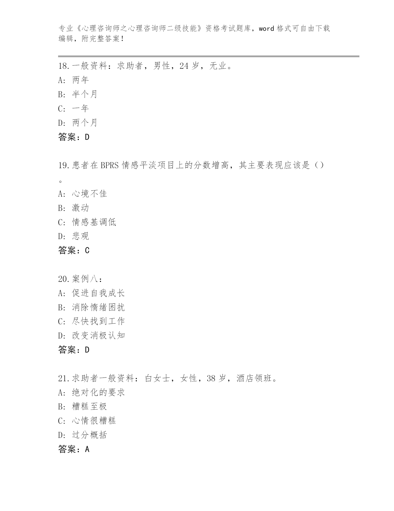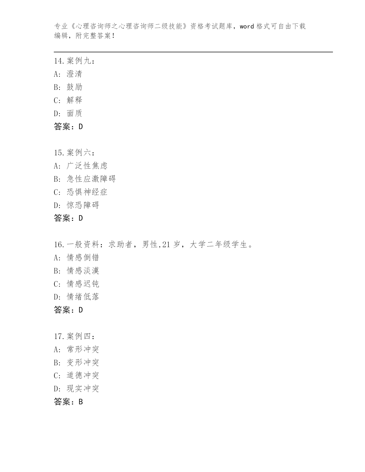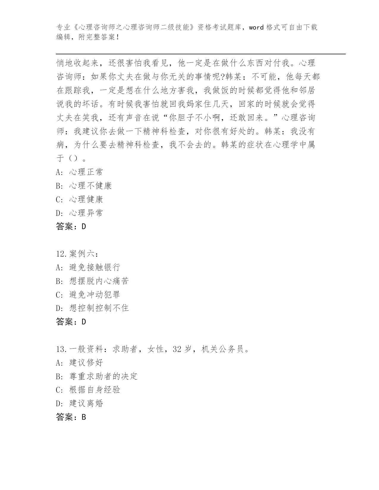 陕西省大荔县《心理咨询师之心理咨询师二级技能》考试必考200题王牌题库及参考答案(培优)