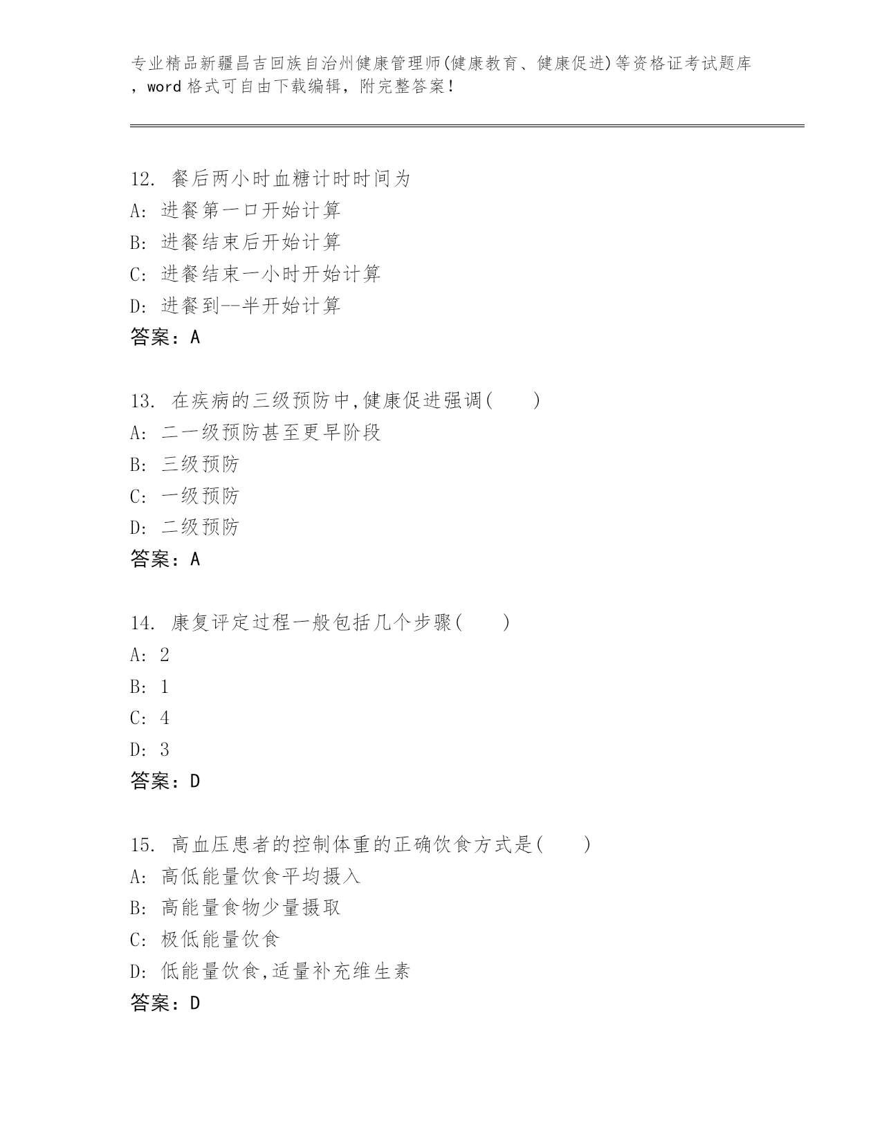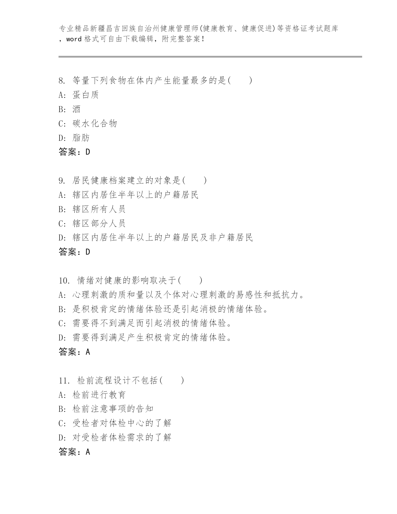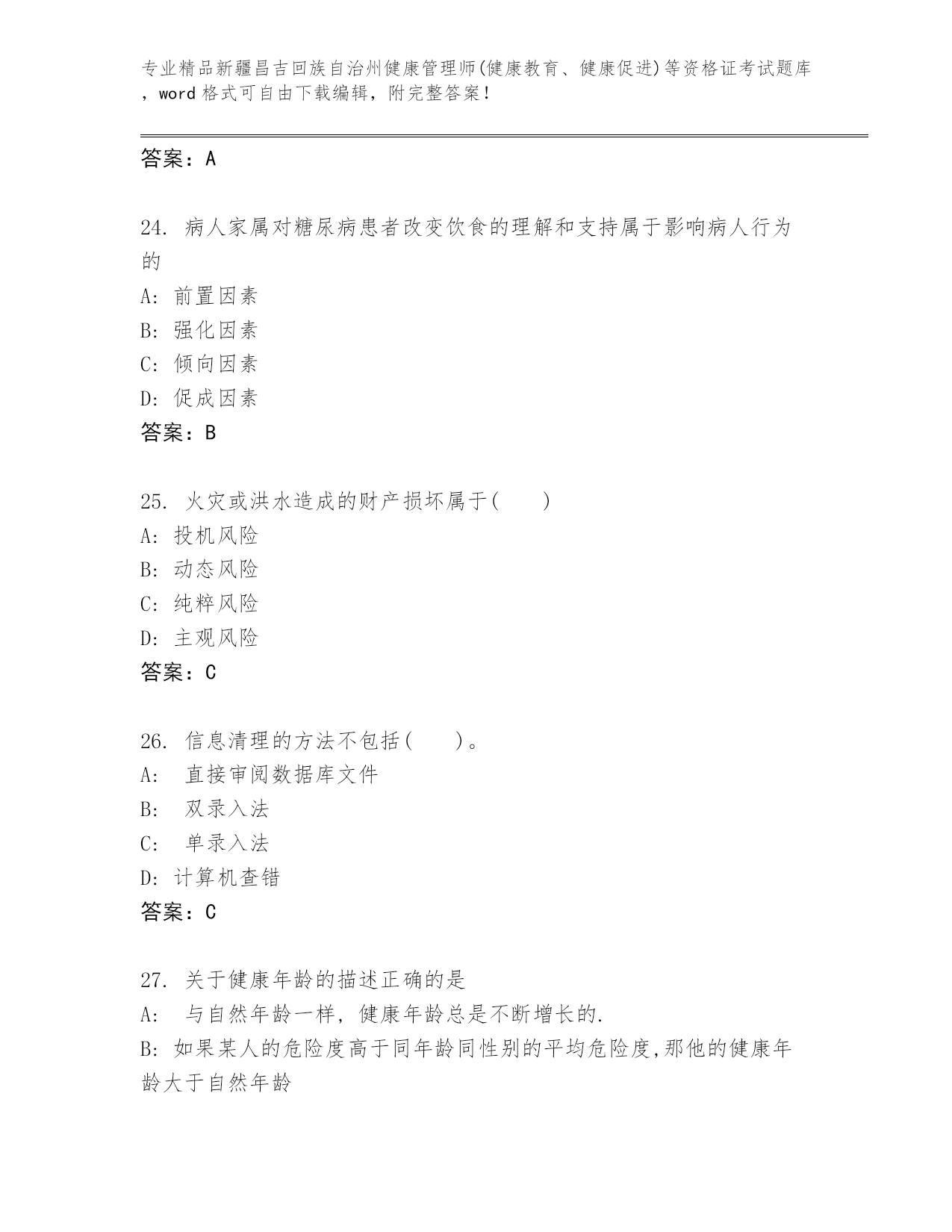 新疆昌吉回族自治州健康管理师(健康教育、健康促进)等资格证考试及答案【基础+提升】