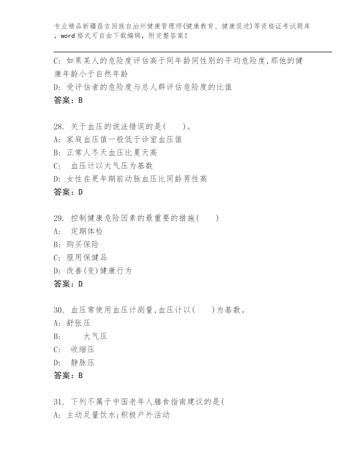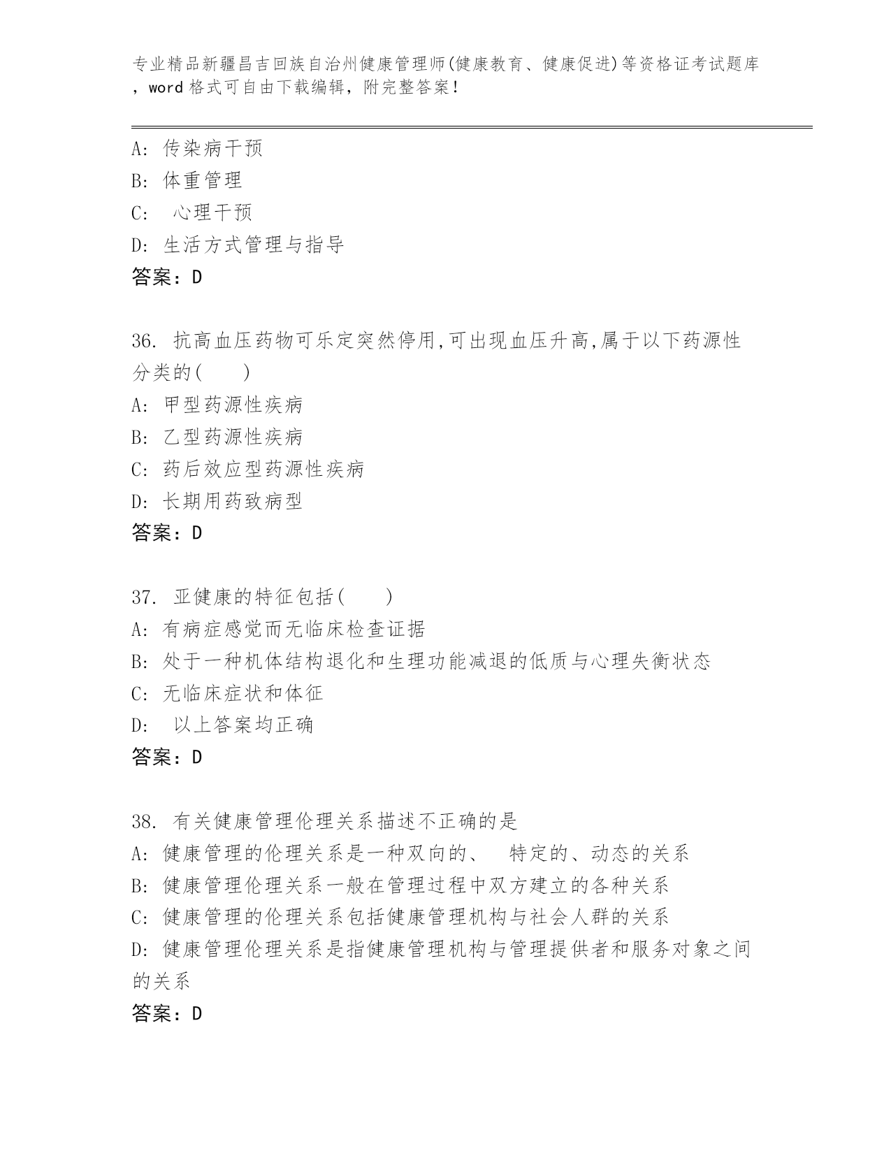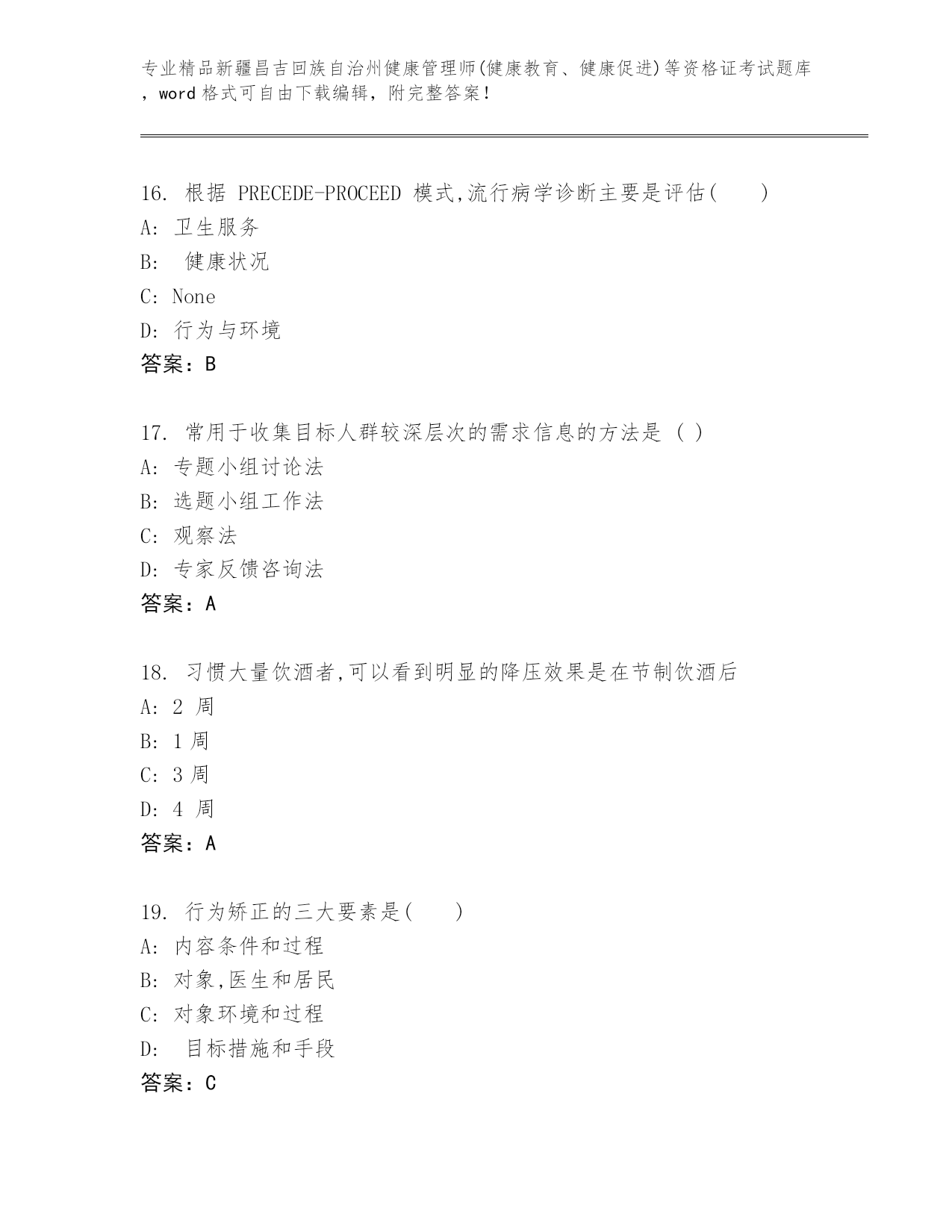 新疆昌吉回族自治州健康管理师(健康教育、健康促进)等资格证考试及答案【基础+提升】