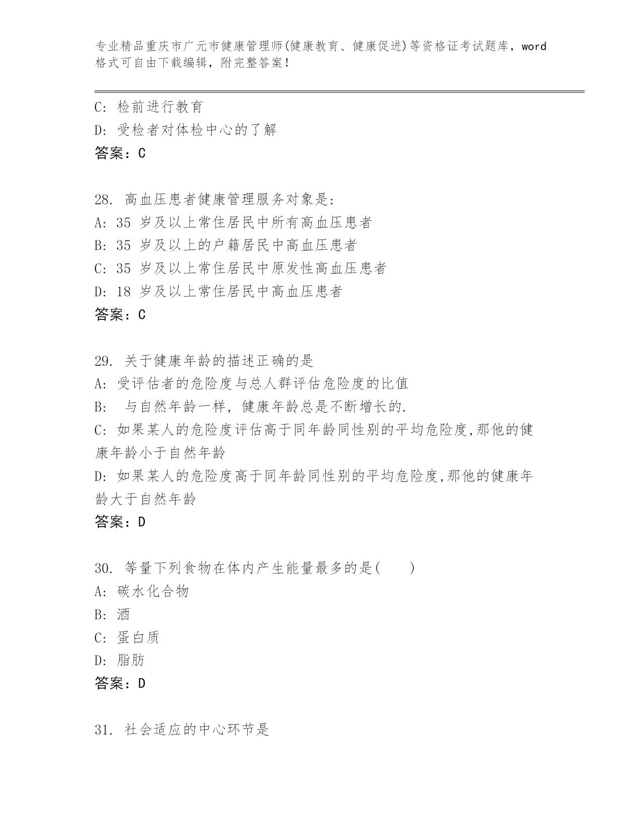 历年重庆市广元市健康管理师(健康教育、健康促进)等资格证考试【综合题】.docx