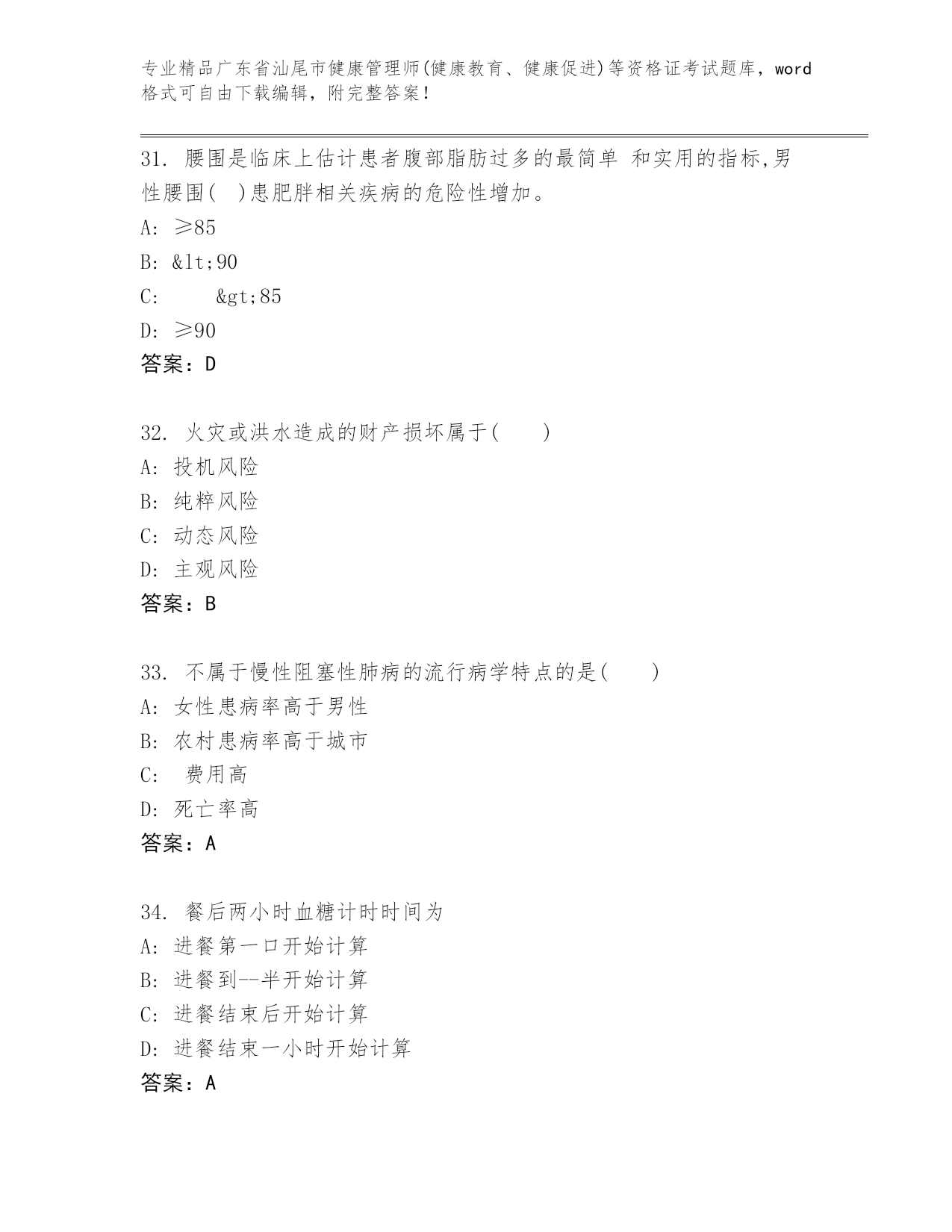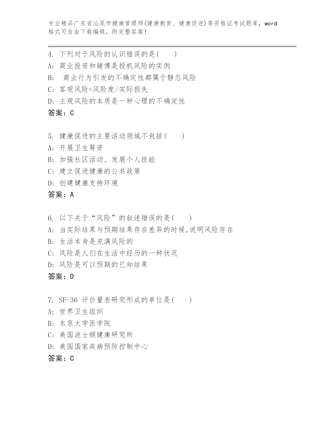 最新广东省汕尾市健康管理师(健康教育、健康促进)等资格证考试完整题库【易错题】.docx