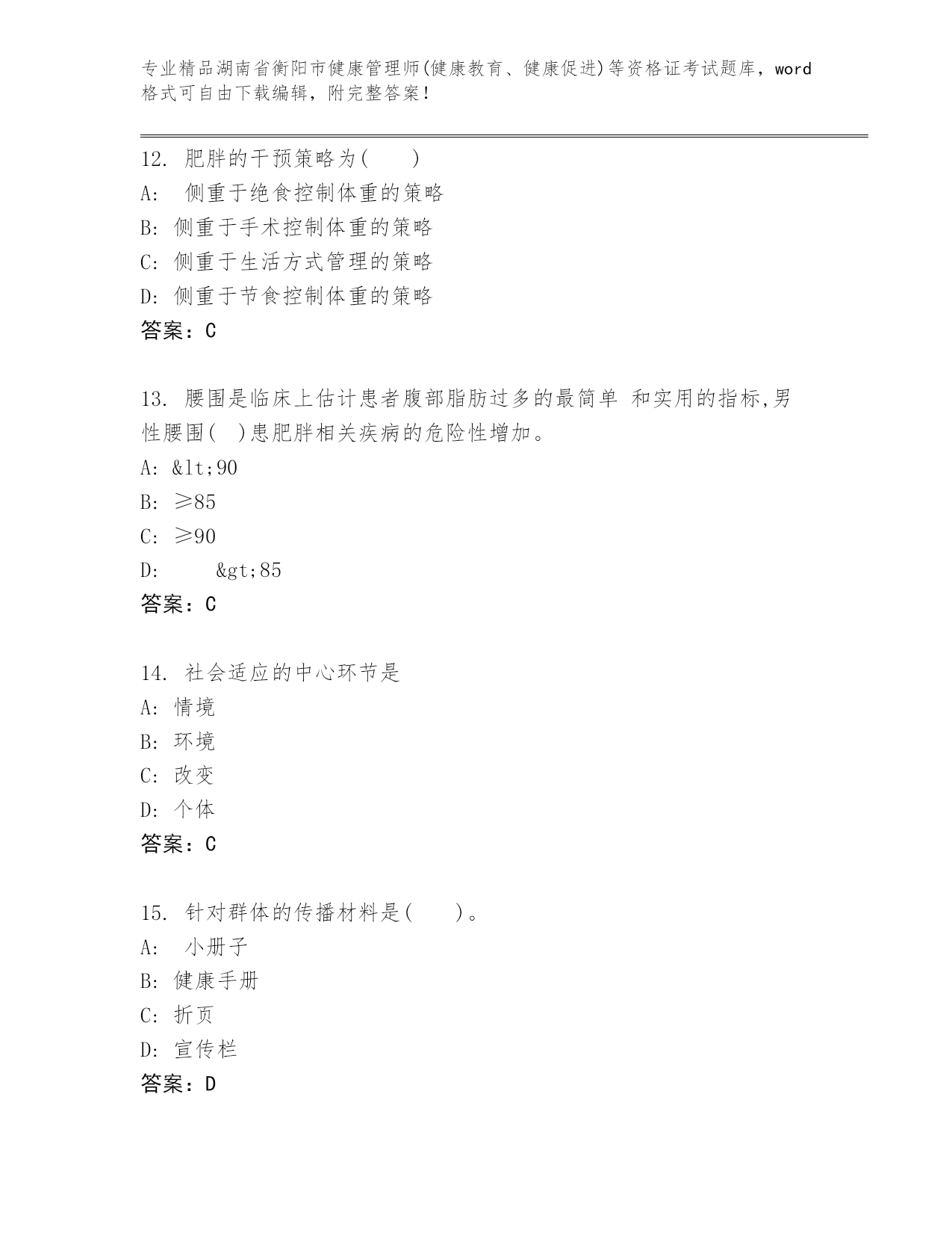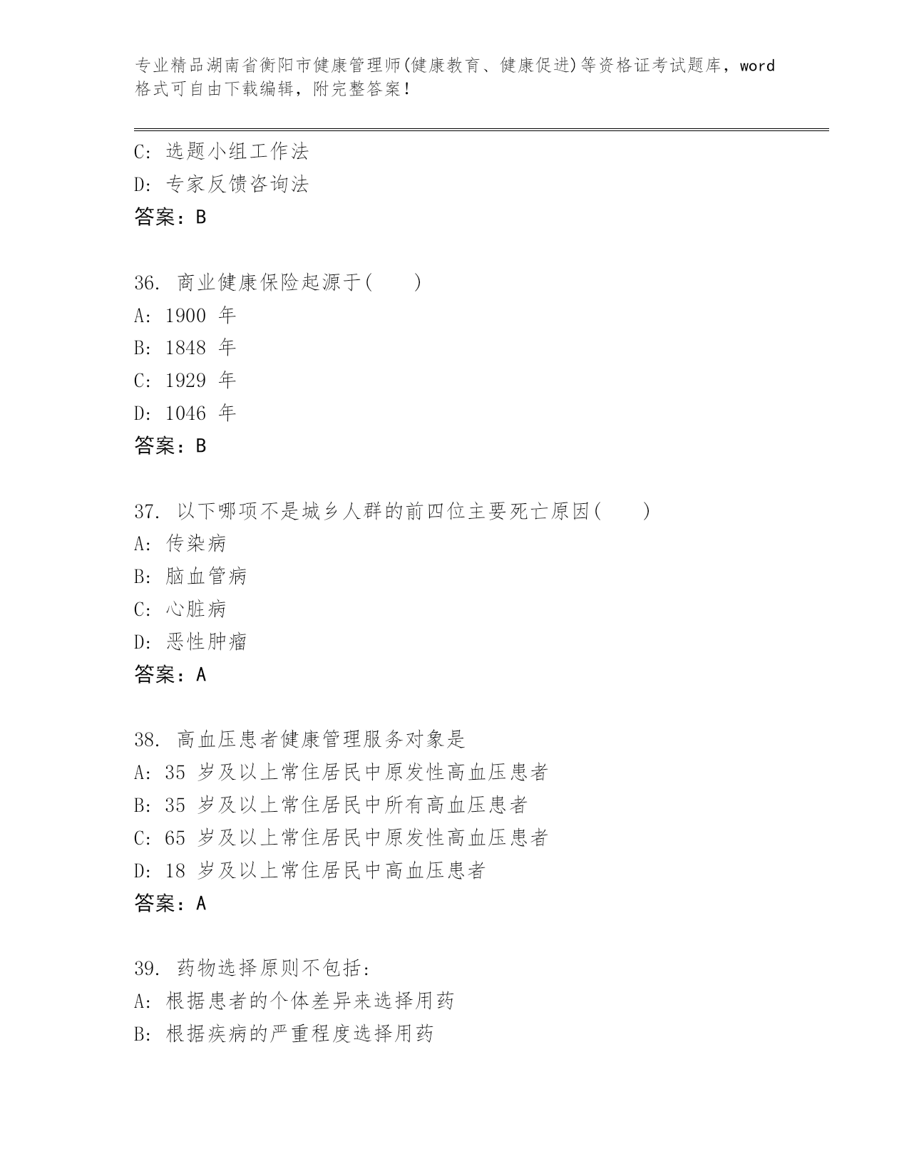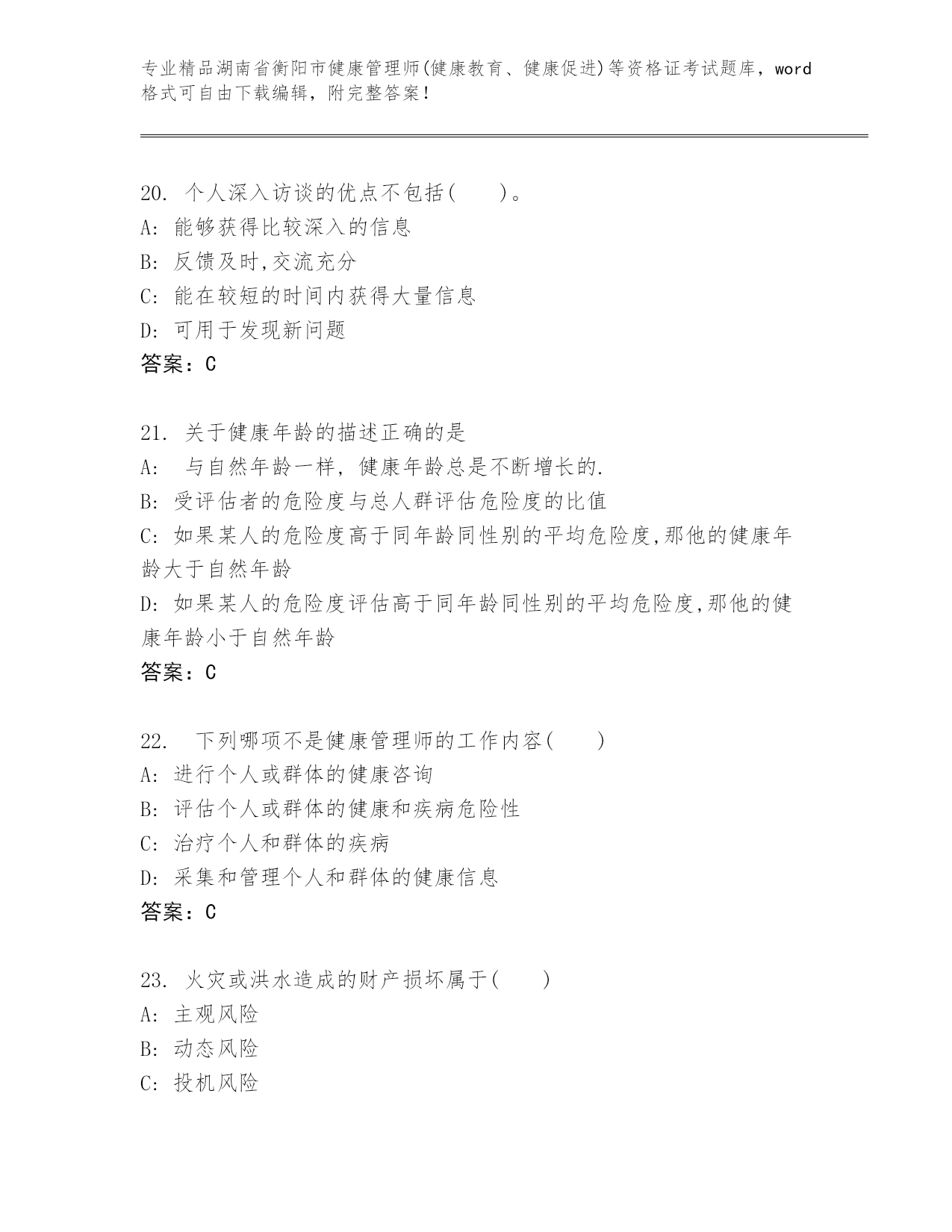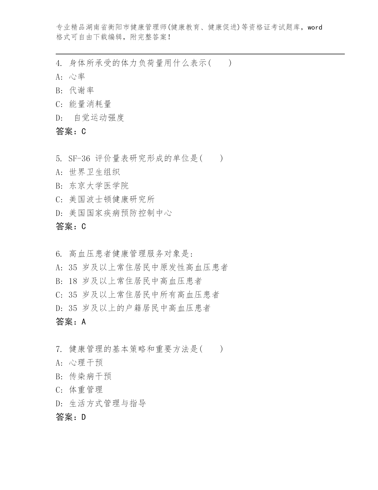 历年湖南省衡阳市健康管理师(健康教育、健康促进)等资格证考试真题(易错题).docx