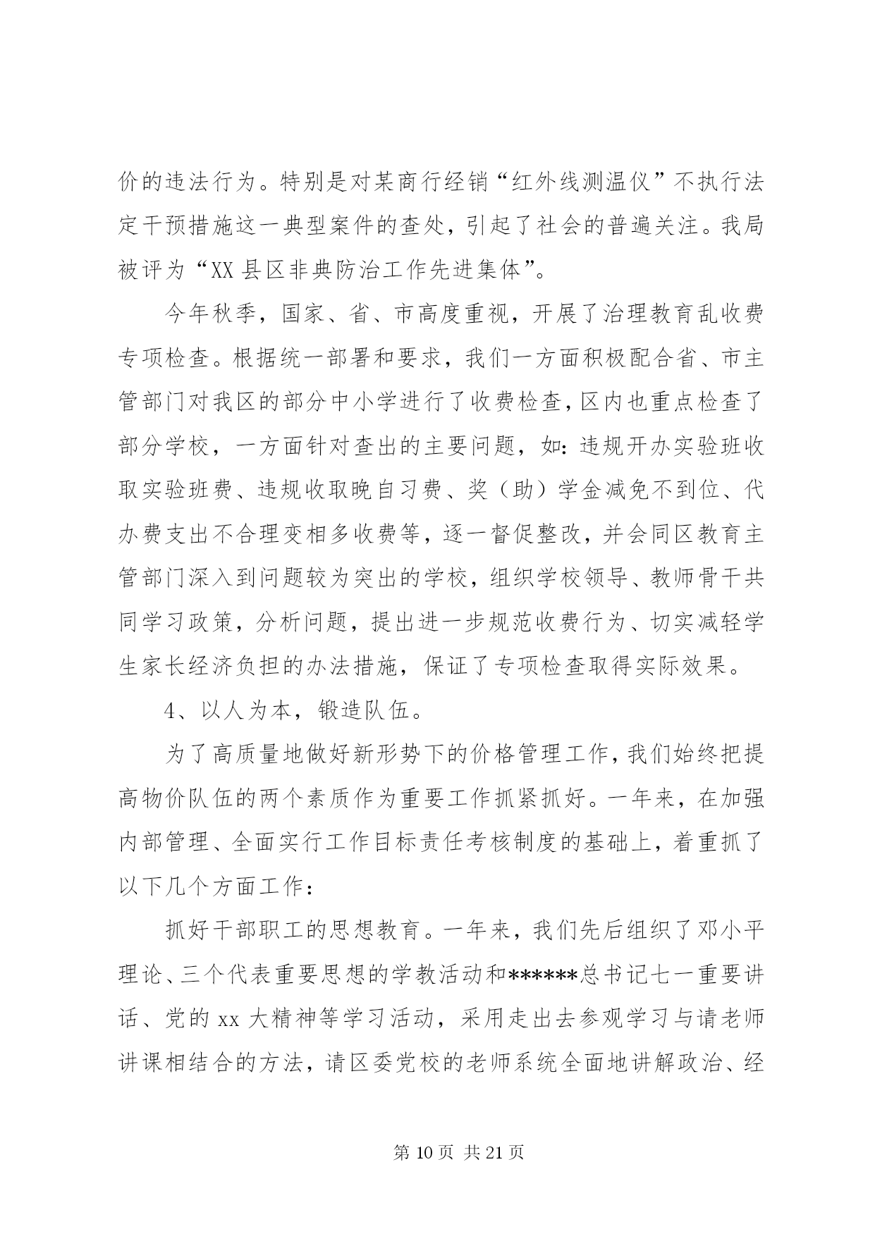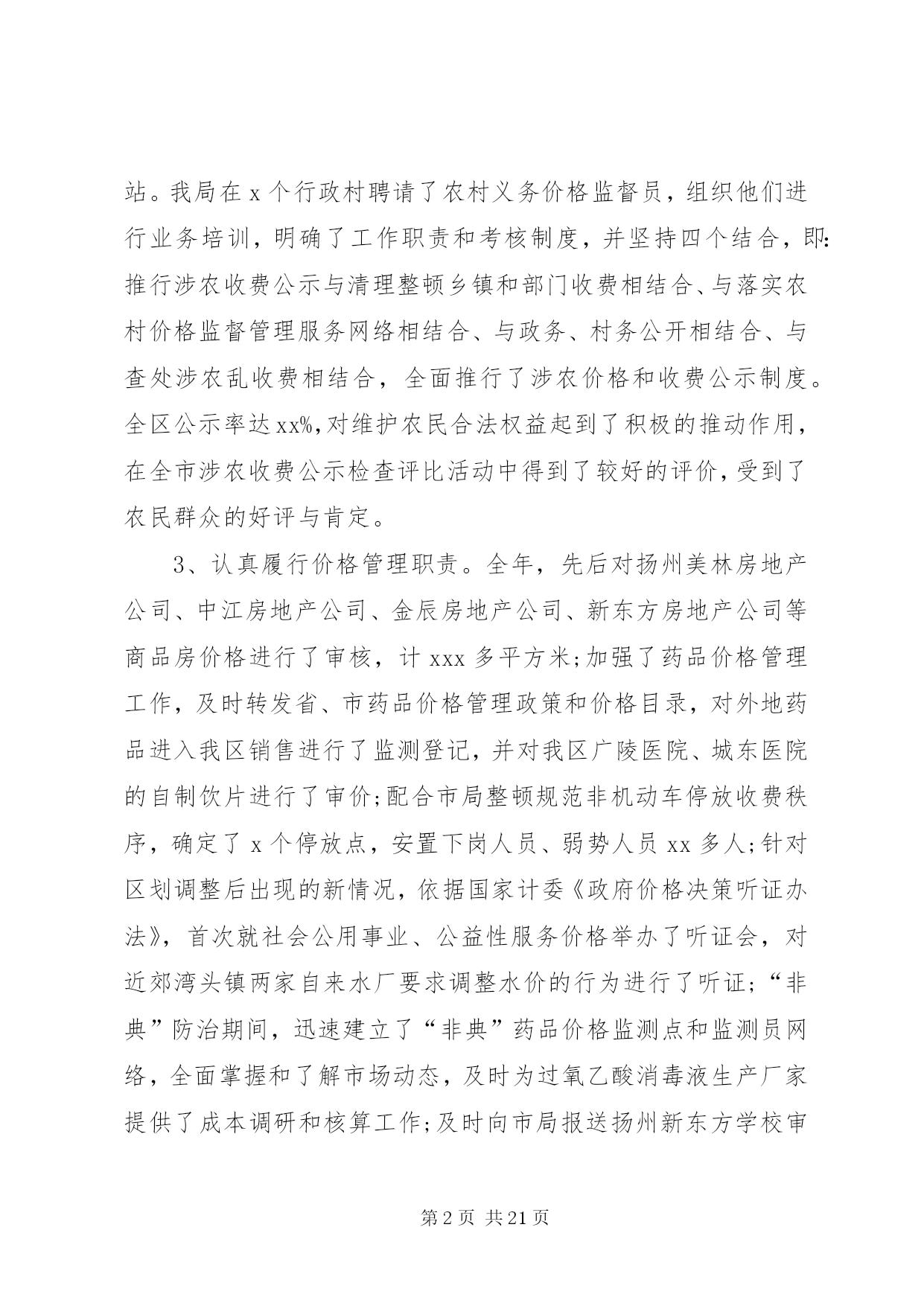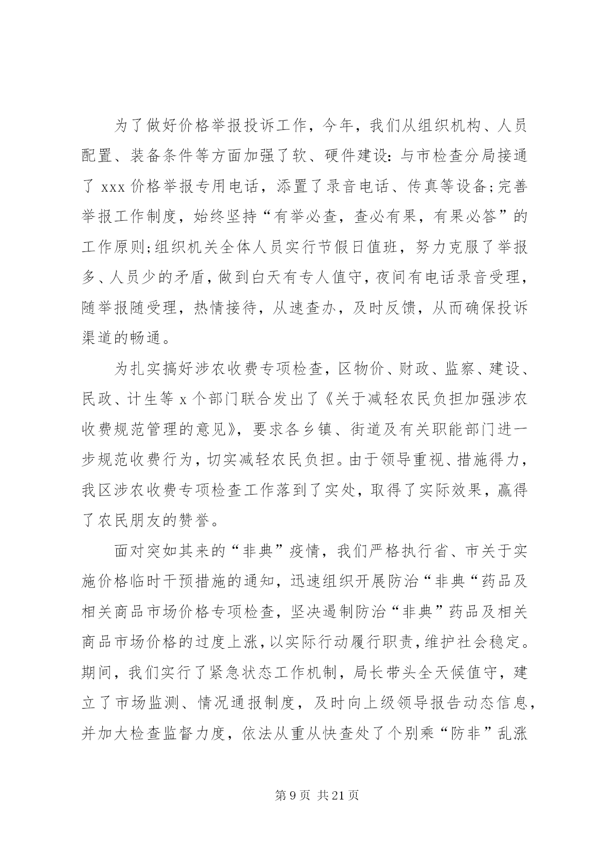 第PAGE\*Arabic\*MERGEFORMAT21页共NUMPAGES\*MERGEFORMAT21页XX年7月公务员述职报告范文根据区委组织部、区纪委通知精神,我代表区物价局党组、局长室,并结合个人实际,将一年来的思想学习、廉政建设和业务工作情况总结报告如下:xx年,在区委、区政府和上级主管部门的正确领导下,在区各有关部门的大力支持配合下,我与全体干部职工一道,树立“创一流服务,干一流实绩,建一流队伍”的目标,围绕全区中心工作,认真履行岗位职责,较好地完成了年度各项工作任务。1、切实加强行政事业性收费管理。x月份开始,按照省、市部署,对全区面向社会收费的各级行政事业单位、非企业组织和实行《收费许可证》管理的收费单位,进行了xx年度收费年检工作。经审检换发《收费许可证》正本xx本,副本xx本,核销及合并许可证x个。全区xx年度行政事业收费总额xx万元,总额比xx年度略有增加,上升了xx万元。其中,教育、卫生事业收费总额约x%,仍占很大比例。总量变化的主要因素是环卫体制改革、职能下放到区以后,增加了xx万元,如剔除该项,实际收费总额下降了xx万元。我区国家机关行政性收费总体上逐年下降。对年检中发现的问题,我局分别采取当场指正、限期整改、转交检查机构查处等方法予以纠正。2、全面推行涉农价格和收费公示制度。在区委、区政府的重视支持下,今年x月份,我区在全市率先建立了农村价格监督站。我局在x个行政村聘请了农村义务价格监督员,组织他们进行业务培训,明确了工作职责和考核制度,并坚持四个结合,即:推行涉农收费公示与清理整顿乡镇和部门收费相结合、与落实农村价格监督管理服务网络相结合、与政务、村务公开相结合、与查处涉农乱收费相结合,全面推行了涉农价格和收费公示制度。全区公示率达xx%,对维护农民合法权益起到了积极的推动作用,在全市涉农收费公示检查评比活动中得到了较好的评价,受到了农民群众的好评与肯定。3、认真履行价格管理职责。全年,先后对扬州美林房地产公司、中江房地产公司、金辰房地产公司、新东方房地产公司等商品房价格进行了审核,计xxx多平方米;加强了药品价格管理工作,及时转发省、市药品价格管理政策和价格目录,对外地药品进入我区销售进行了监测登记,并对我区广陵医院、城东医院的自制饮片进行了审价;配合市局整顿规范非机动车停放收费秩序,确定了x个停放点,安置下岗人员、弱势人员xx多人;针对区划调整后出现的新情况,依据国家计委《政府价格决策听证办法》,首次就社会公用事业、公益性服务价格举办了听证会,对近郊湾头镇两家自来水厂要求调整水价的行为进行了听证;“非典”防治期间,迅速建立了“非典”药品价格监测点和监测员网络,全面掌握和了解市场动态,及时为过氧乙酸消毒液生产厂家提供了成本调研和核算工作;及时向市局报送扬州新东方学校审价资料,为招生收费提供了优质服务等。4、加大价格监督检查力度。全年共受理各类价格举报xx件(其中涉及“防非”举报、咨询x件),办结回复xx件,办结率x%,回复率xx%,实施经济制裁近x万元,其中退还消费者x万余元,罚没x万余元,先后对药品价格、医疗服务价格、教育收费、房地产开发等行业组织了专项检查。全年共查处各类价格违法行为案件xx起,经济制裁x万余元,其中退款x万余元,罚没x万余元,真正做到了为广大群众排忧解难,切实维护了群众的合法权益,为规范市场价格秩序起到了积极的作用。5、进一步完善明码标价工作。(x)、配合市检查分局在文昌路开展“明码标价示范一条街”活动。向近x家商业经营单位发放了宣传材料,集中力量加强日常巡查,不断巩固和扩大了明码标价的示范成果。沿街许多单位被市局评为“明码标价示范单位”,从而带动了全区明码标价工作再上新台阶;(x)、在区属较大医院实行住院费用清单制。指导广陵中医院、扬州口腔病医院建立了触摸式电子显示屏和电子结算系统,促进了医院服务规范化、收费透明化;(x)、积极培育和指导学校收费规范化。区物价局成立了创建教育收费规范化学校领导小组,经过学校申请、领导小组考核验收、社会公示等程序,汶河小学、东关小学获得了区物价局、教育局授予的“教育收费规范化学校”称号。我们还将明码标价检查工作延伸到了各个乡镇、街道及村办市场。与乡镇、街道农村价格监督站的人员同检查、同分析,并进行了价格业务知识的培训和指导。通过实际操作锻炼,提高了基层价格监督站人员的具体从事明码标价管理监督工作的能力。6、积极拓展价格认证服务领域。全年完成涉案标的价格鉴定xx件,金额xx万元。积极开拓认证服务业务,全年完成价格认证业务x件,金额xx万元。7、全力以赴完成招商引资任务。积极动员组织干部职工投入招商引资“百日会战”。至x月底,共引进民资xx万元,超额任务指标xx.x%。为切实履行好价格职能,确保工作任务的完成,工作