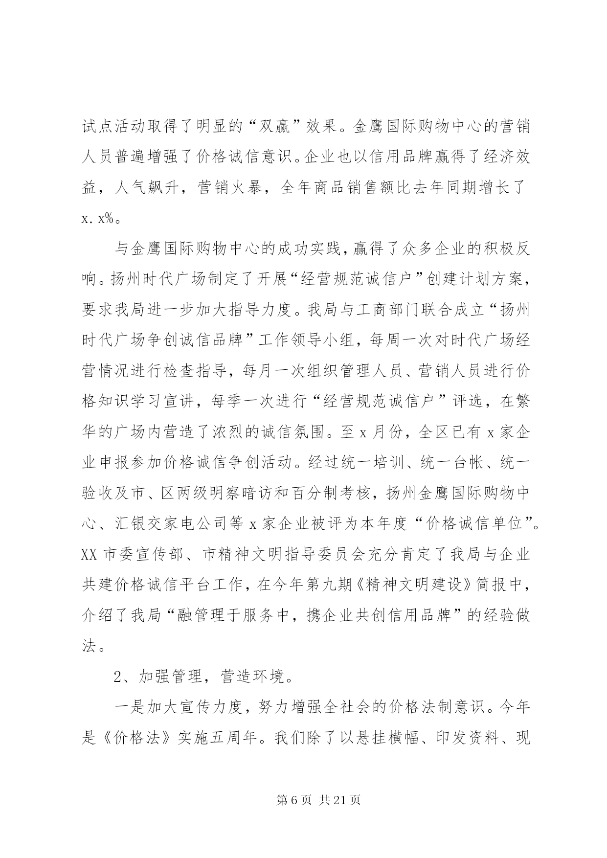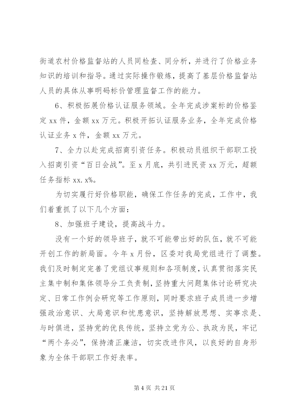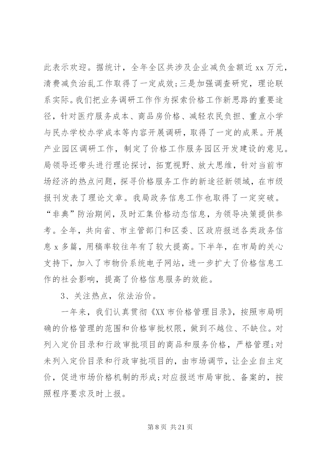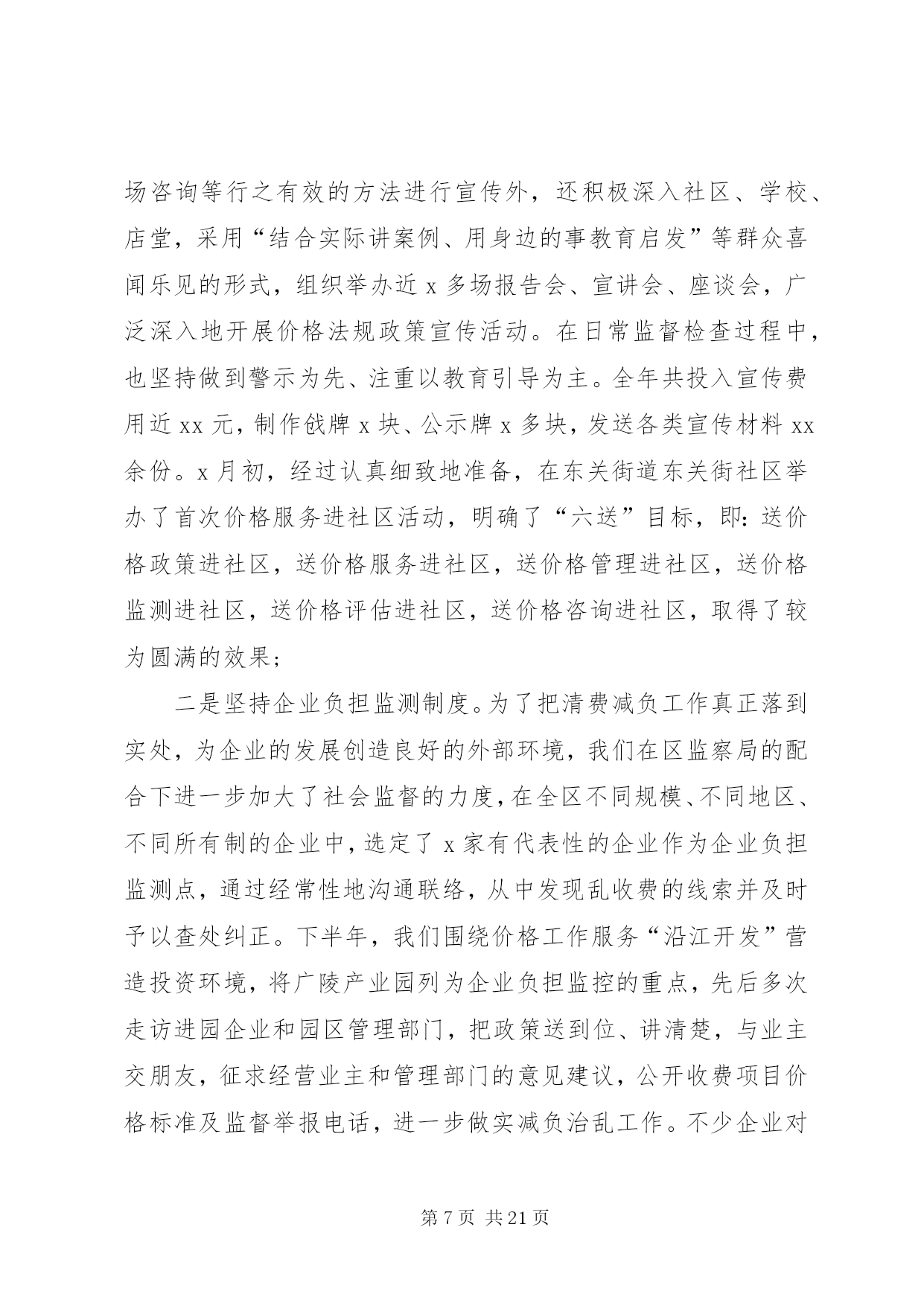 第PAGE\*Arabic\*MERGEFORMAT21页共NUMPAGES\*MERGEFORMAT21页XX年7月公务员述职报告范文根据区委组织部、区纪委通知精神,我代表区物价局党组、局长室,并结合个人实际,将一年来的思想学习、廉政建设和业务工作情况总结报告如下:xx年,在区委、区政府和上级主管部门的正确领导下,在区各有关部门的大力支持配合下,我与全体干部职工一道,树立“创一流服务,干一流实绩,建一流队伍”的目标,围绕全区中心工作,认真履行岗位职责,较好地完成了年度各项工作任务。1、切实加强行政事业性收费管理。x月份开始,按照省、市部署,对全区面向社会收费的各级行政事业单位、非企业组织和实行《收费许可证》管理的收费单位,进行了xx年度收费年检工作。经审检换发《收费许可证》正本xx本,副本xx本,核销及合并许可证x个。全区xx年度行政事业收费总额xx万元,总额比xx年度略有增加,上升了xx万元。其中,教育、卫生事业收费总额约x%,仍占很大比例。总量变化的主要因素是环卫体制改革、职能下放到区以后,增加了xx万元,如剔除该项,实际收费总额下降了xx万元。我区国家机关行政性收费总体上逐年下降。对年检中发现的问题,我局分别采取当场指正、限期整改、转交检查机构查处等方法予以纠正。2、全面推行涉农价格和收费公示制度。在区委、区政府的重视支持下,今年x月份,我区在全市率先建立了农村价格监督站。我局在x个行政村聘请了农村义务价格监督员,组织他们进行业务培训,明确了工作职责和考核制度,并坚持四个结合,即:推行涉农收费公示与清理整顿乡镇和部门收费相结合、与落实农村价格监督管理服务网络相结合、与政务、村务公开相结合、与查处涉农乱收费相结合,全面推行了涉农价格和收费公示制度。全区公示率达xx%,对维护农民合法权益起到了积极的推动作用,在全市涉农收费公示检查评比活动中得到了较好的评价,受到了农民群众的好评与肯定。3、认真履行价格管理职责。全年,先后对扬州美林房地产公司、中江房地产公司、金辰房地产公司、新东方房地产公司等商品房价格进行了审核,计xxx多平方米;加强了药品价格管理工作,及时转发省、市药品价格管理政策和价格目录,对外地药品进入我区销售进行了监测登记,并对我区广陵医院、城东医院的自制饮片进行了审价;配合市局整顿规范非机动车停放收费秩序,确定了x个停放点,安置下岗人员、弱势人员xx多人;针对区划调整后出现的新情况,依据国家计委《政府价格决策听证办法》,首次就社会公用事业、公益性服务价格举办了听证会,对近郊湾头镇两家自来水厂要求调整水价的行为进行了听证;“非典”防治期间,迅速建立了“非典”药品价格监测点和监测员网络,全面掌握和了解市场动态,及时为过氧乙酸消毒液生产厂家提供了成本调研和核算工作;及时向市局报送扬州新东方学校审价资料,为招生收费提供了优质服务等。4、加大价格监督检查力度。全年共受理各类价格举报xx件(其中涉及“防非”举报、咨询x件),办结回复xx件,办结率x%,回复率xx%,实施经济制裁近x万元,其中退还消费者x万余元,罚没x万余元,先后对药品价格、医疗服务价格、教育收费、房地产开发等行业组织了专项检查。全年共查处各类价格违法行为案件xx起,经济制裁x万余元,其中退款x万余元,罚没x万余元,真正做到了为广大群众排忧解难,切实维护了群众的合法权益,为规范市场价格秩序起到了积极的作用。5、进一步完善明码标价工作。(x)、配合市检查分局在文昌路开展“明码标价示范一条街”活动。向近x家商业经营单位发放了宣传材料,集中力量加强日常巡查,不断巩固和扩大了明码标价的示范成果。沿街许多单位被市局评为“明码标价示范单位”,从而带动了全区明码标价工作再上新台阶;(x)、在区属较大医院实行住院费用清单制。指导广陵中医院、扬州口腔病医院建立了触摸式电子显示屏和电子结算系统,促进了医院服务规范化、收费透明化;(x)、积极培育和指导学校收费规范化。区物价局成立了创建教育收费规范化学校领导小组,经过学校申请、领导小组考核验收、社会公示等程序,汶河小学、东关小学获得了区物价局、教育局授予的“教育收费规范化学校”称号。我们还将明码标价检查工作延伸到了各个乡镇、街道及村办市场。与乡镇、街道农村价格监督站的人员同检查、同分析,并进行了价格业务知识的培训和指导。通过实际操作锻炼,提高了基层价格监督站人员的具体从事明码标价管理监督工作的能力。6、积极拓展价格认证服务领域。全年完成涉案标的价格鉴定xx件,金额xx万元。积极开拓认证服务业务,全年完成价格认证业务x件,金额xx万元。7、全力以赴完成招商引资任务。积极动员组织干部职工投入招商引资“百日会战”。至x月底,共引进民资xx万元,超额任务指标xx.x%。为切实履行好价格职能,确保工作任务的完成,工作