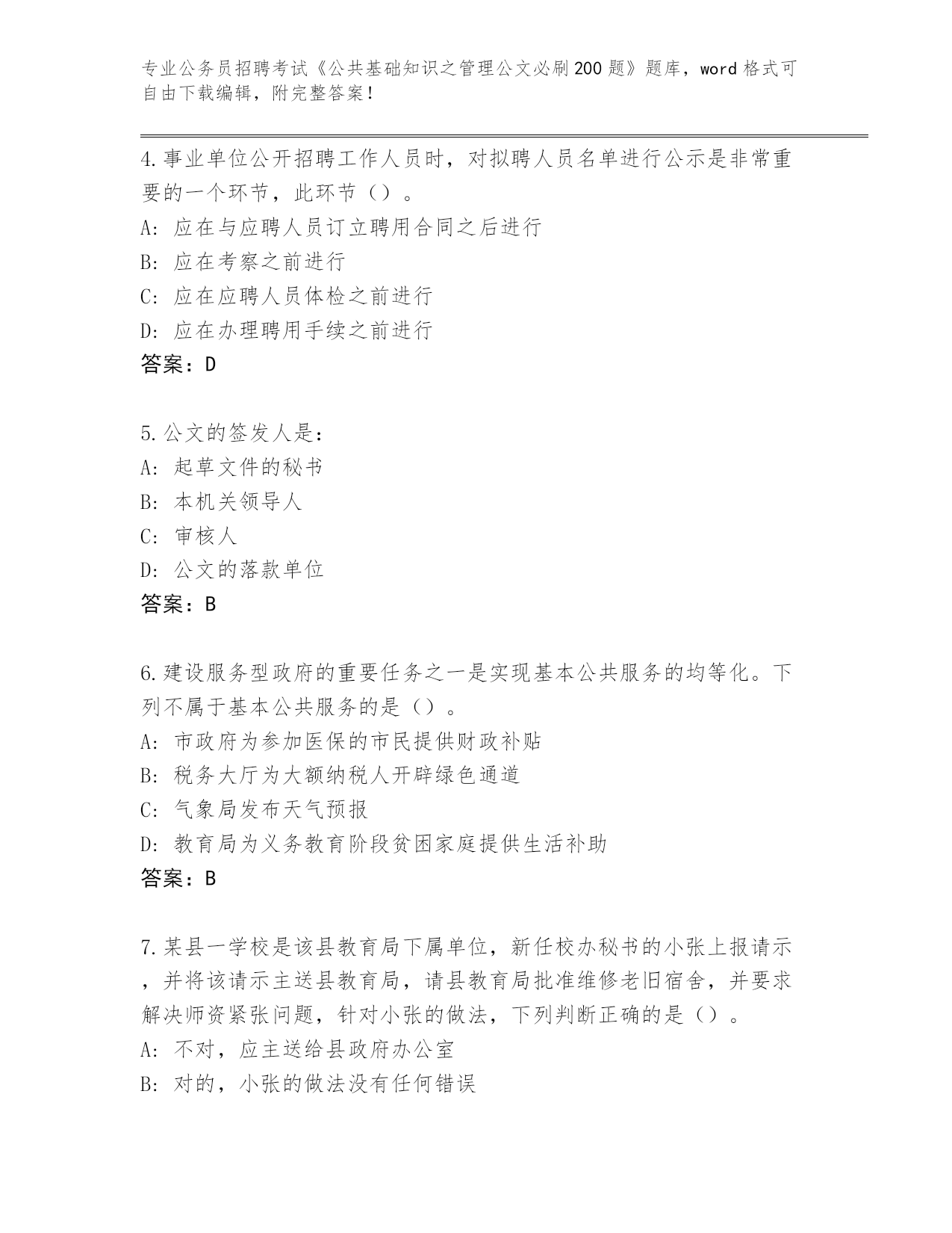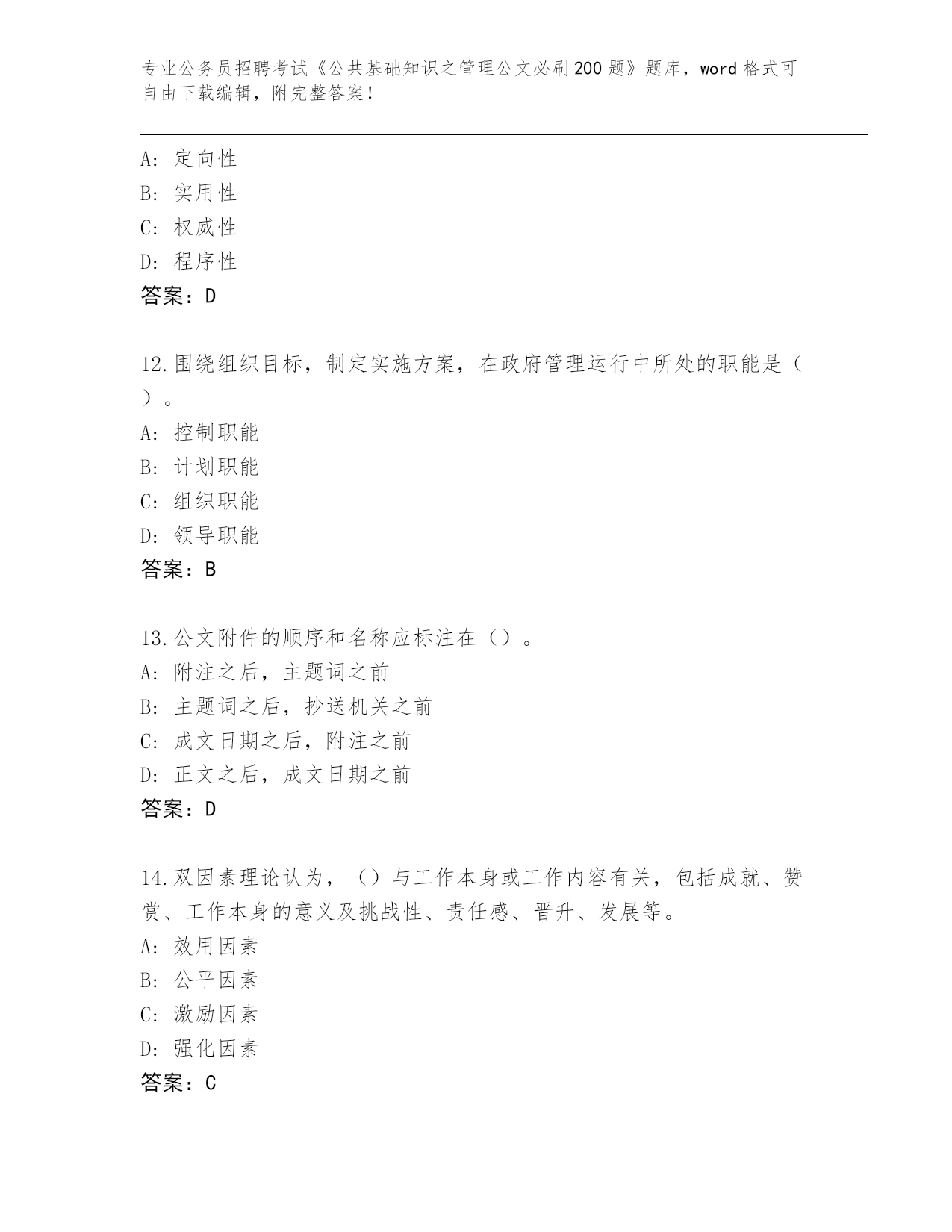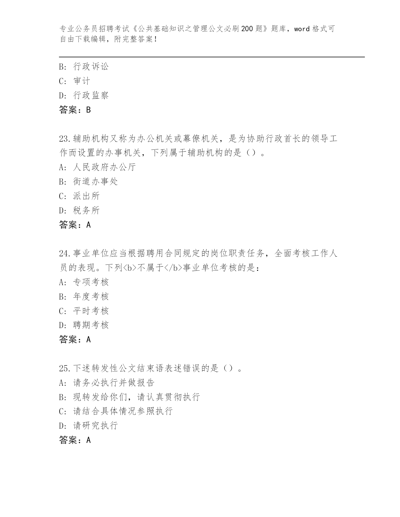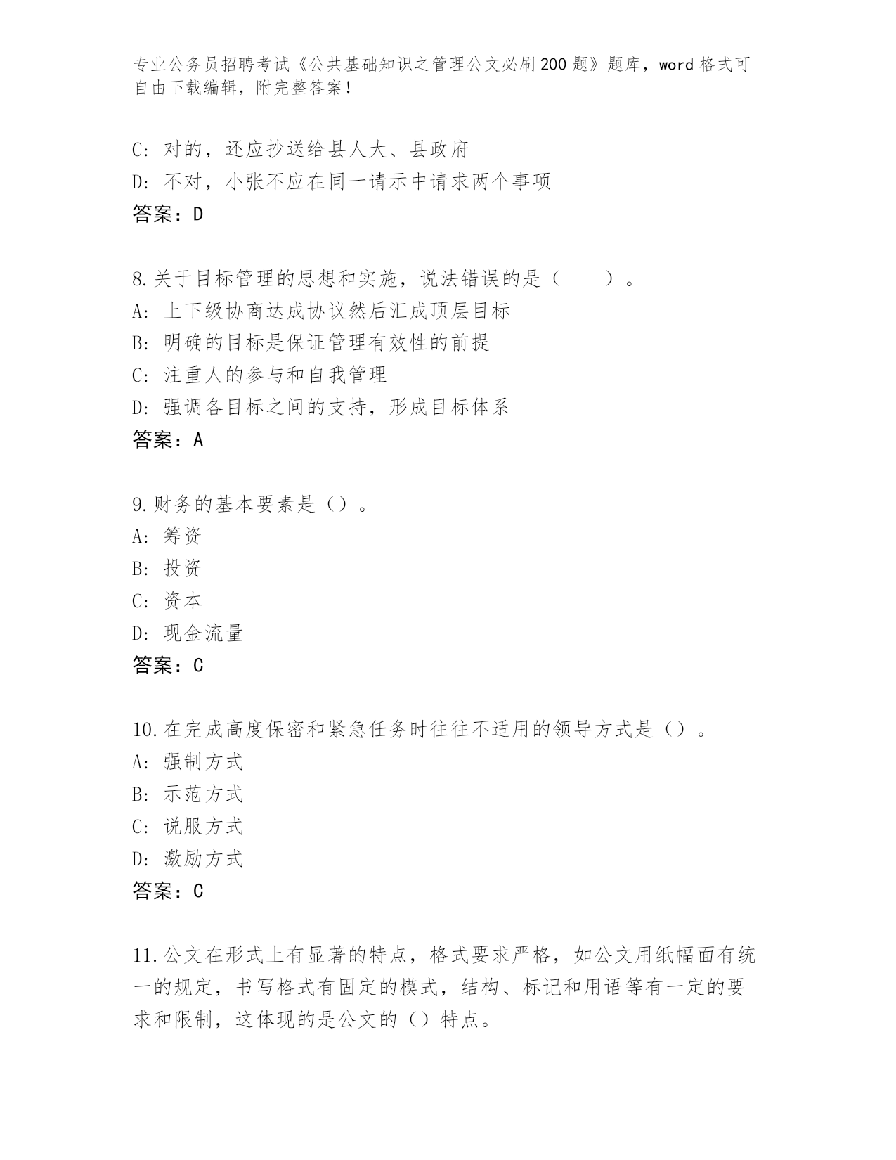 2024年浙江省婺城区公务员招聘考试《公共基础知识之管理公文必刷200题》含答案(精练)