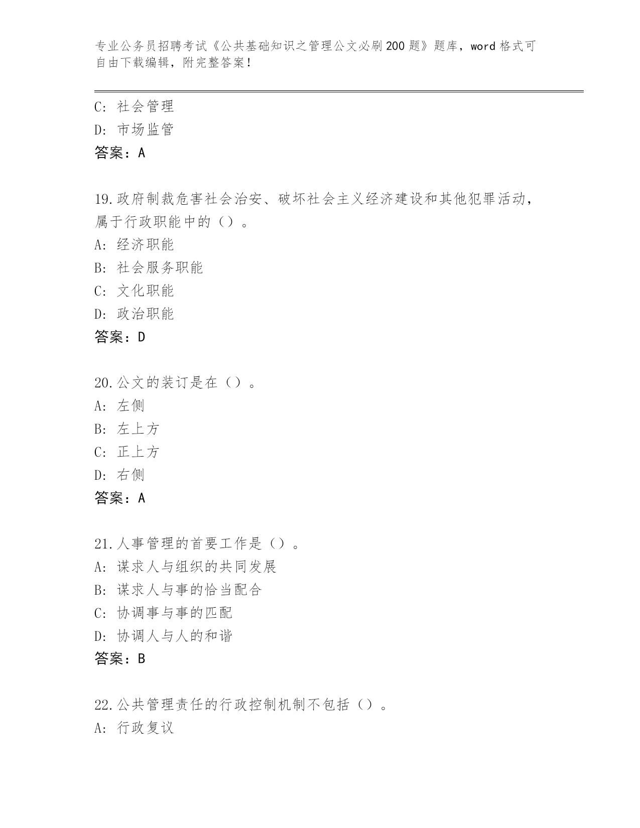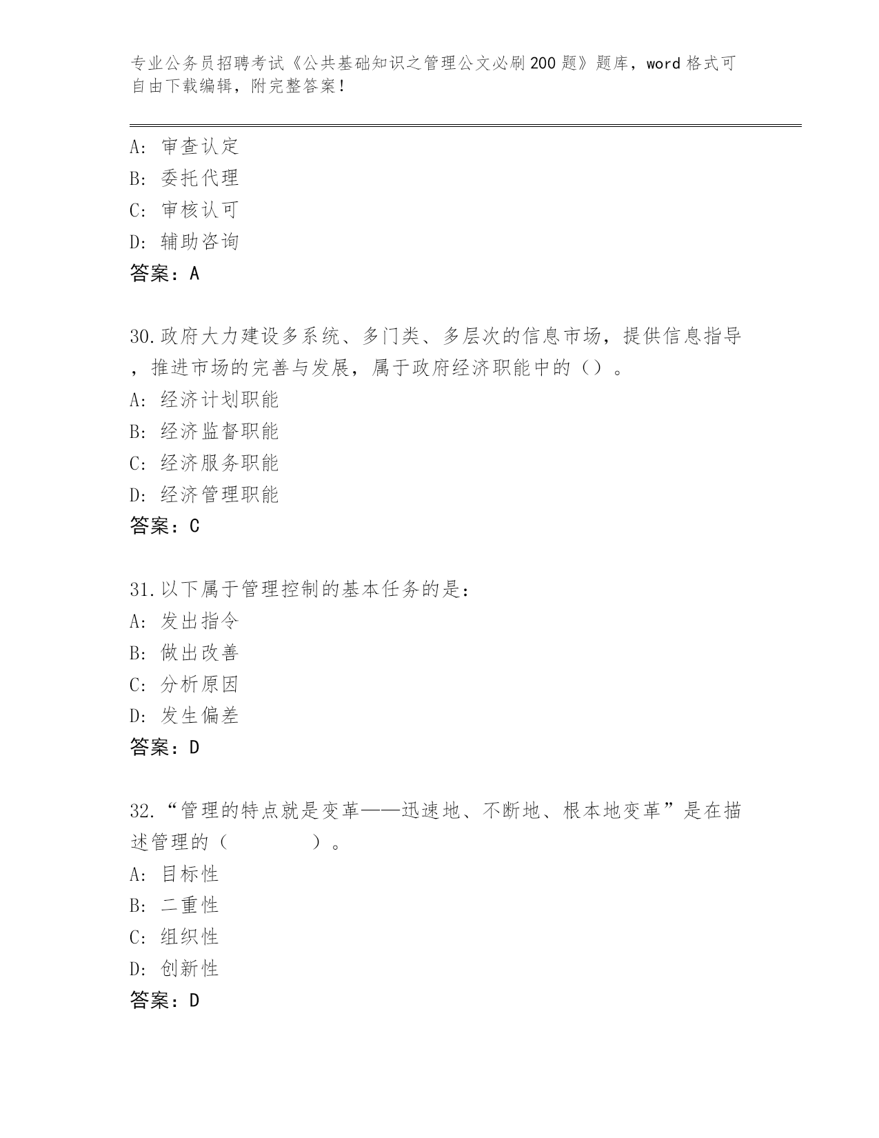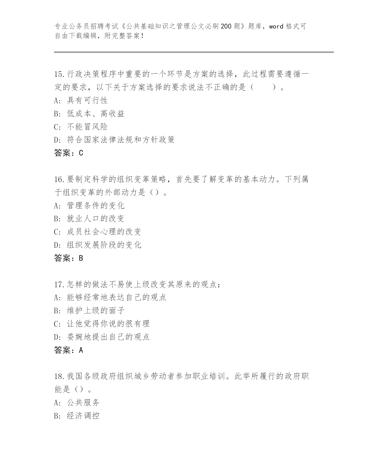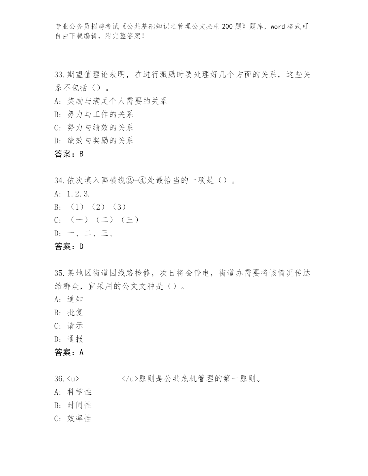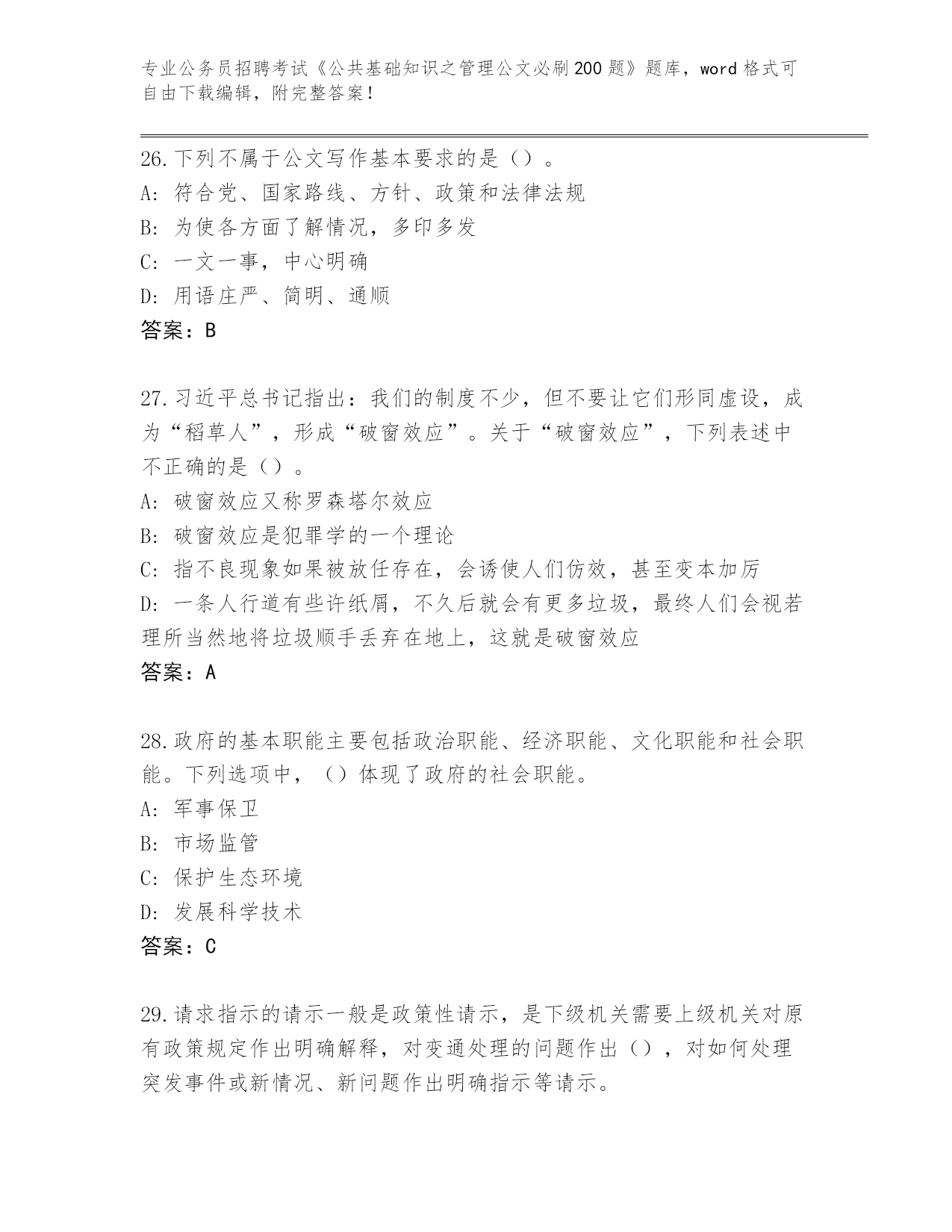 2024年浙江省婺城区公务员招聘考试《公共基础知识之管理公文必刷200题》含答案(精练)