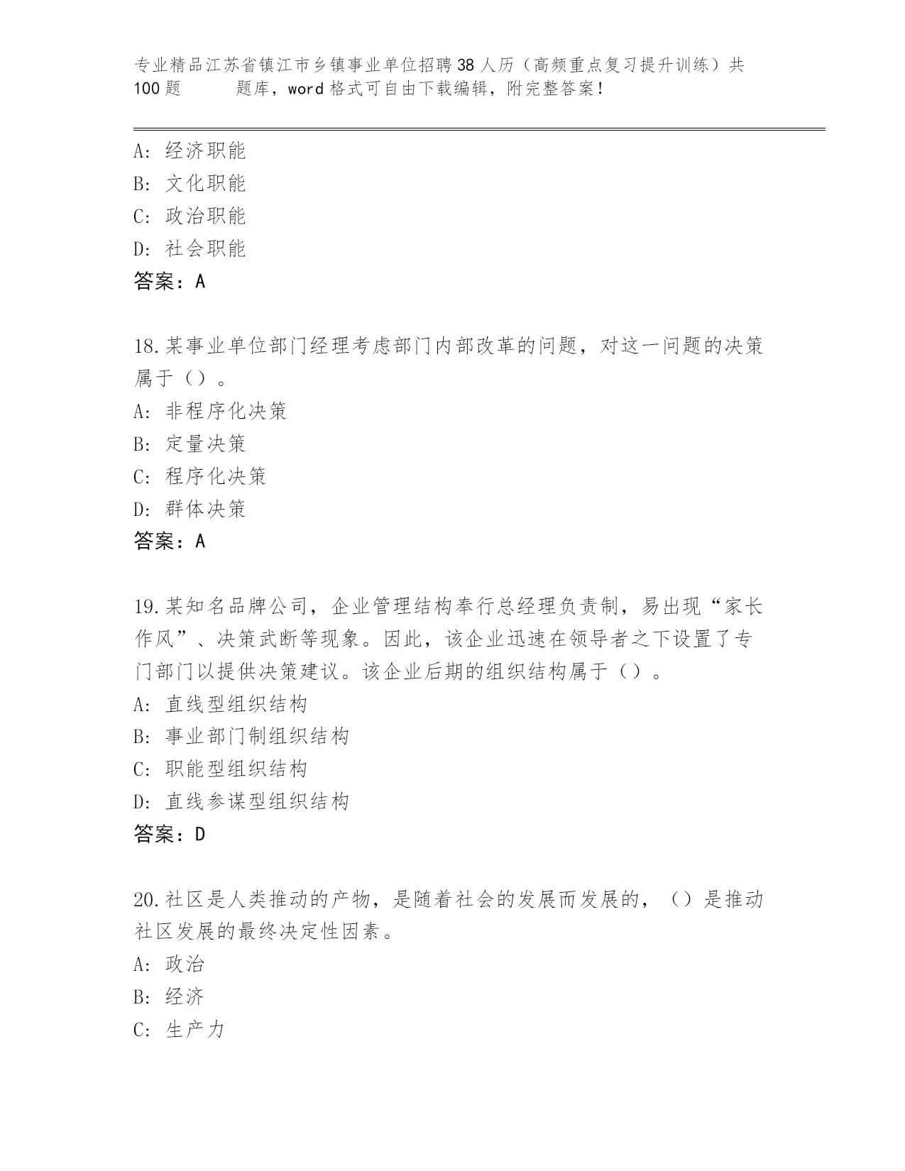 完整版江苏省镇江市乡镇事业单位招聘38人历(高频重点复习提升训练)共100题 【研优卷】