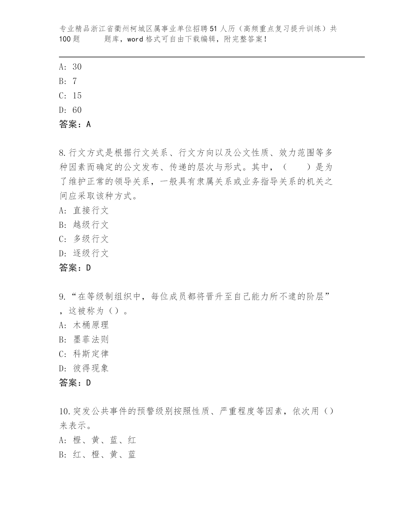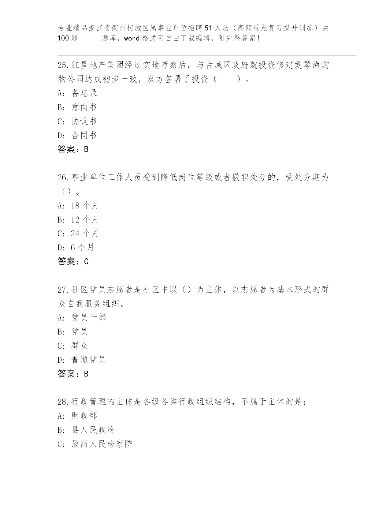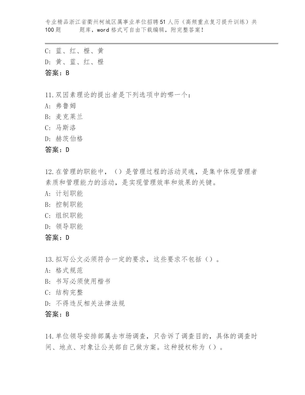 精编浙江省衢州柯城区属事业单位招聘51人历(高频重点复习提升训练)共100题 真题题库及答案免费下载