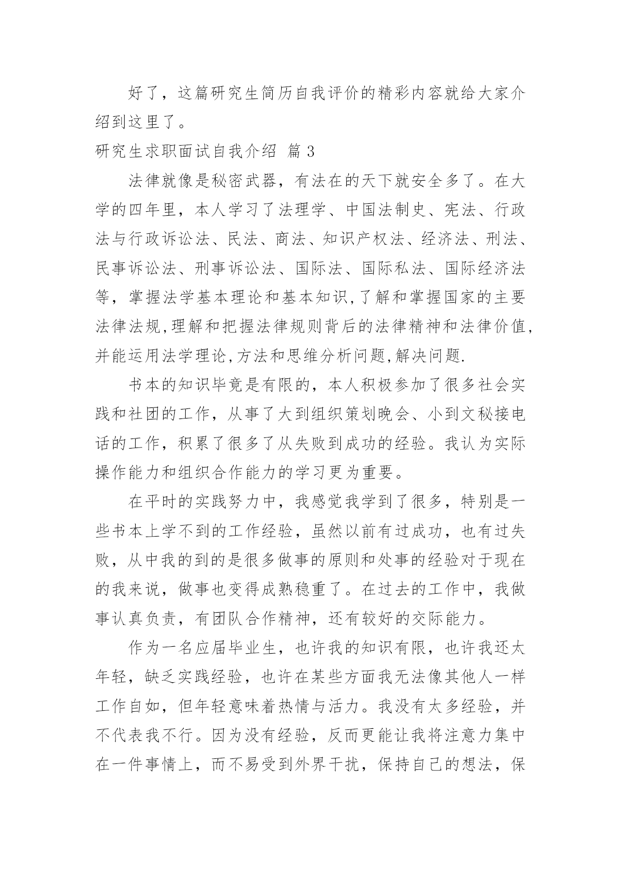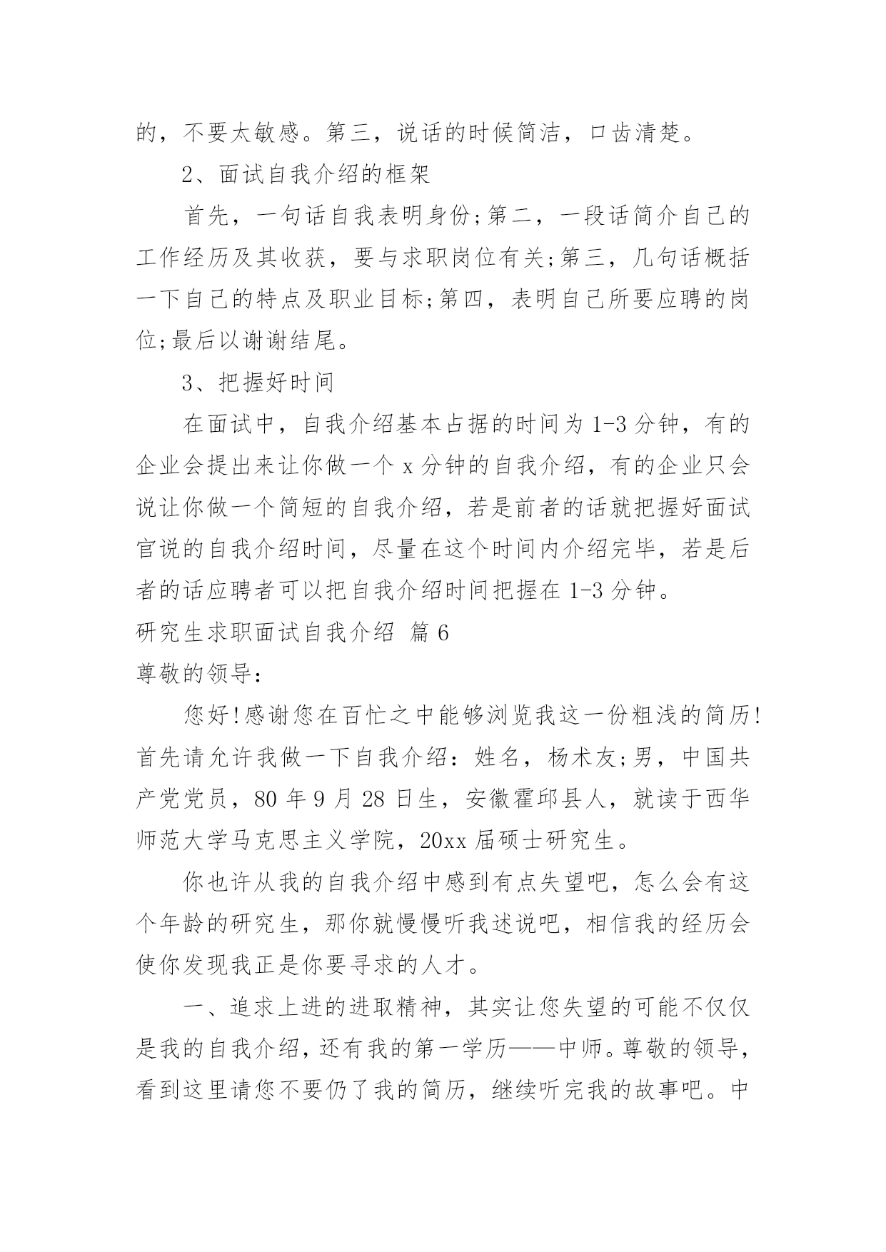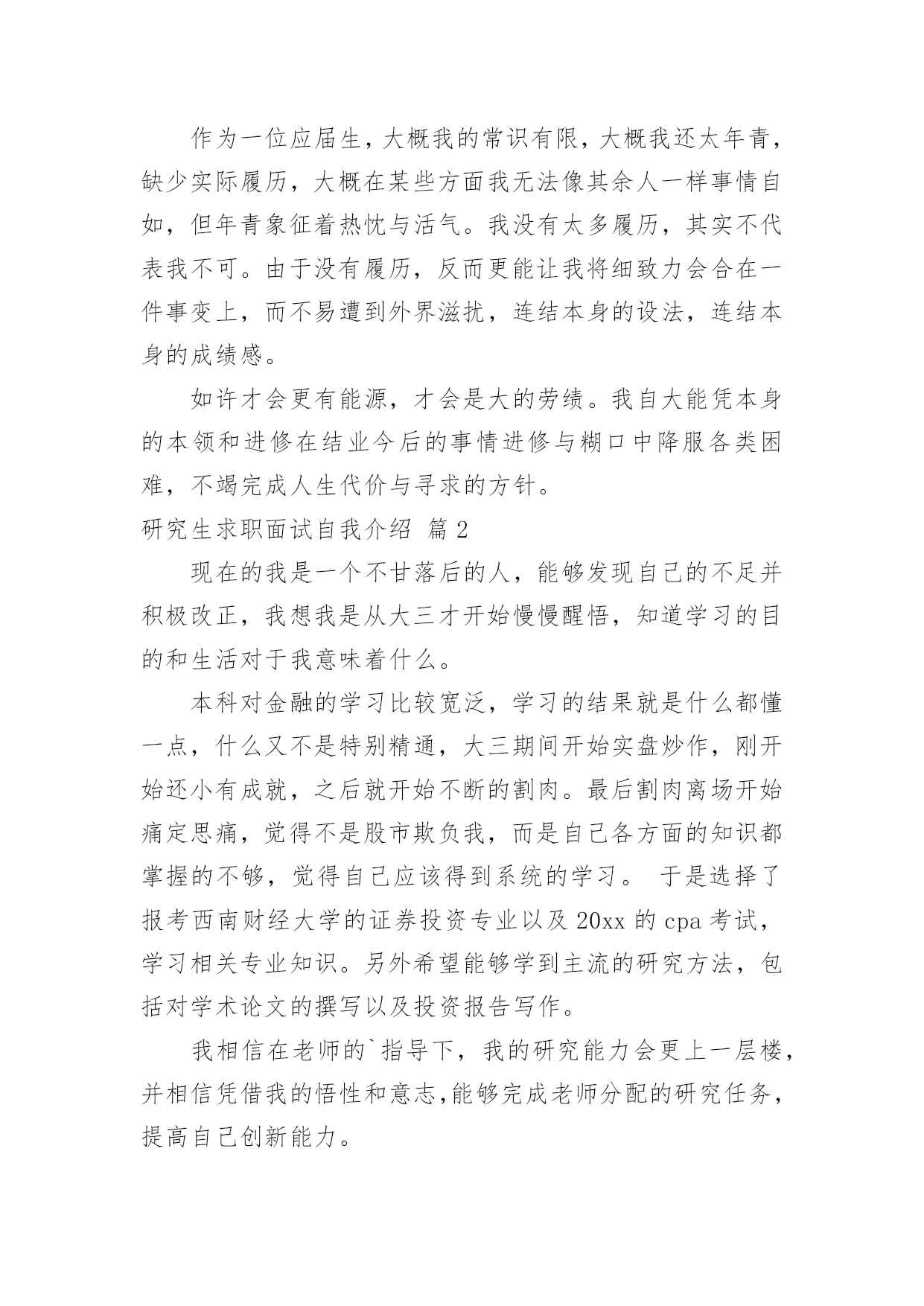 研究生求职面试自我介绍研究生求职面试自我介绍范文6篇当我们在一个陌生场合中,我们不得不需要向他人介绍自己,通过自我介绍可以得到他人的认识。那么我们该怎么去写自我介绍呢?以下是小编为大家整理的研究生求职面试自我介绍6篇,仅供参考,希望能够帮助到大家。研究生求职面试自我介绍篇1大家好,我叫。在大学的四年里,自己进修了法理学、中法律王法公法制史、宪法、行政法与行政诉讼法、民法、商法、常识产权法、经济法、刑法、民事诉讼法、刑事诉讼法、国内法、国内私法、国内经济法等,把握法学根本实际和根本常识,领会和把握国家的重要法令律例,明白和掌控法令规矩暗地里的法令精神和法令代价,并能应用法学实际,法子和思惟阐发问题,办理问题。书籍的常识究竟结果是有限的,自己踊跃加入了不少社会实际和社团的事情,从事了大到构造策动晚会、小到文秘接德律风的事情,积累了不少了从失败到乐成的履历。我以为实际操纵本领和构造合作本领的进修更加紧张。在平常的实际高兴中,我感受我学到了不少,特别是一些书籍上学不到的事情履历,固然曩昔有过乐成,也有不对败,从中我的到的是不少办事的准绳和办事的履历对付如今的我来讲,办事也变得成熟稳重了。在曩昔的事情中,我办事当真负责,有团队合作精神,另有较好的寒暄本领。作为一位应届生,大概我的常识有限,大概我还太年青,缺少实际履历,大概在某些方面我无法像其余人一样事情自如,但年青象征着热忱与活气。我没有太多履历,其实不代表我不可。由于没有履历,反而更能让我将细致力会合在一件事变上,而不易遭到外界滋扰,连结本身的设法,连结本身的成绩感。如许才会更有能源,才会是大的劳绩。我自大能凭本身的本领和进修在结业今后的事情进修与糊口中降服各类困难,不竭完成人生代价与寻求的方针。研究生求职面试自我介绍篇2现在的我是一个不甘落后的人,能够发现自己的不足并积极改正,我想我是从大三才开始慢慢醒悟,知道学习的目的和生活对于我意味着什么。本科对金融的学习比较宽泛,学习的结果就是什么都懂一点,什么又不是特别精通,大三期间开始实盘炒作,刚开始还小有成就,之后就开始不断的割肉。最后割肉离场开始痛定思痛,觉得不是股市欺负我,而是自己各方面的知识都掌握的不够,觉得自己应该得到系统的学习。于是选择了报考西南财经大学的证券投资专业以及20xx的cpa考试,学习相关专业知识。另外希望能够学到主流的研究方法,包括对学术论文的撰写以及投资报告写作。我相信在老师的`指导下,我的研究能力会更上一层楼,并相信凭借我的悟性和意志,能够完成老师分配的研究任务,提高自己创新能力。好了,这篇研究生简历自我评价的精彩内容就给大家介绍到这里了。研究生求职面试自我介绍篇3法律就像是秘密武器,有法在的天下就安全多了。在大学的四年里,本人学习了法理学、中国法制史、宪法、行政法与行政诉讼法、民法、商法、知识产权法、经济法、刑法、民事诉讼法、刑事诉讼法、国际法、国际私法、国际经济法等,掌握法学基本理论和基本知识,了解和掌握国家的主要法律法规,理解和把握法律规则背后的法律精神和法律价值,并能运用法学理论,方法和思维分析问题,解决问题.书本的知识毕竟是有限的,本人积极参加了很多社会实践和社团的工作,从事了大到组织策划晚会、小到文秘接电话的工作,积累了很多了从失败到成功的经验。我认为实际操作能力和组织合作能力的学习更为重要。在平时的实践努力中,我感觉我学到了很多,特别是一些书本上学不到的工作经验,虽然以前有过成功,也有过失败,从中我的到的是很多做事的原则和处事的经验对于现在的我来说,做事也变得成熟稳重了。在过去的工作中,我做事认真负责,有团队合作精神,还有较好的交际能力。作为一名应届毕业生,也许我的知识有限,也许我还太年轻,缺乏实践经验,也许在某些方面我无法像其他人一样工作自如,但年轻意味着热情与活力。我没有太多经验,并不代表我不行。因为没有经验,反而更能让我将注意力集中在一件事情上,而不易受到外界干扰,保持自己的想法,保持自己的成就感。这样才会更有动力,才会是大的收获。我自信能凭自己的能力和学习在毕业以后的工作学习与生活中克服各种困难,不断实现人生价值与追求的目标.研究生求职面试自我介绍篇4各位领导好!首先谢谢你们给我这样一个机会,是我莫大的殊荣。我是xx学校x级xx专业的学生。大学生活即将结束,一个新开始即将来到,等待我的是新的挑战。四年的大学生活充实而紧张,我努力把自己培养成为一名社会所需要的人才,我个性上,比较诚实、乐观、热情,具有团队精神,踏实努力,很强的责任心大学四年是我思想、知识结构生长成熟的四年。在大学期间,我自己认真学习专业技能,所以我掌握了较强的专业知识,并把理论知识运用到实践中去,期末总评成绩名列年级前茅。但是我不满足于现状,不断挑战自己,顺利通过英语四、六级考试,全国计算机二级考试,等等称号。学习同时