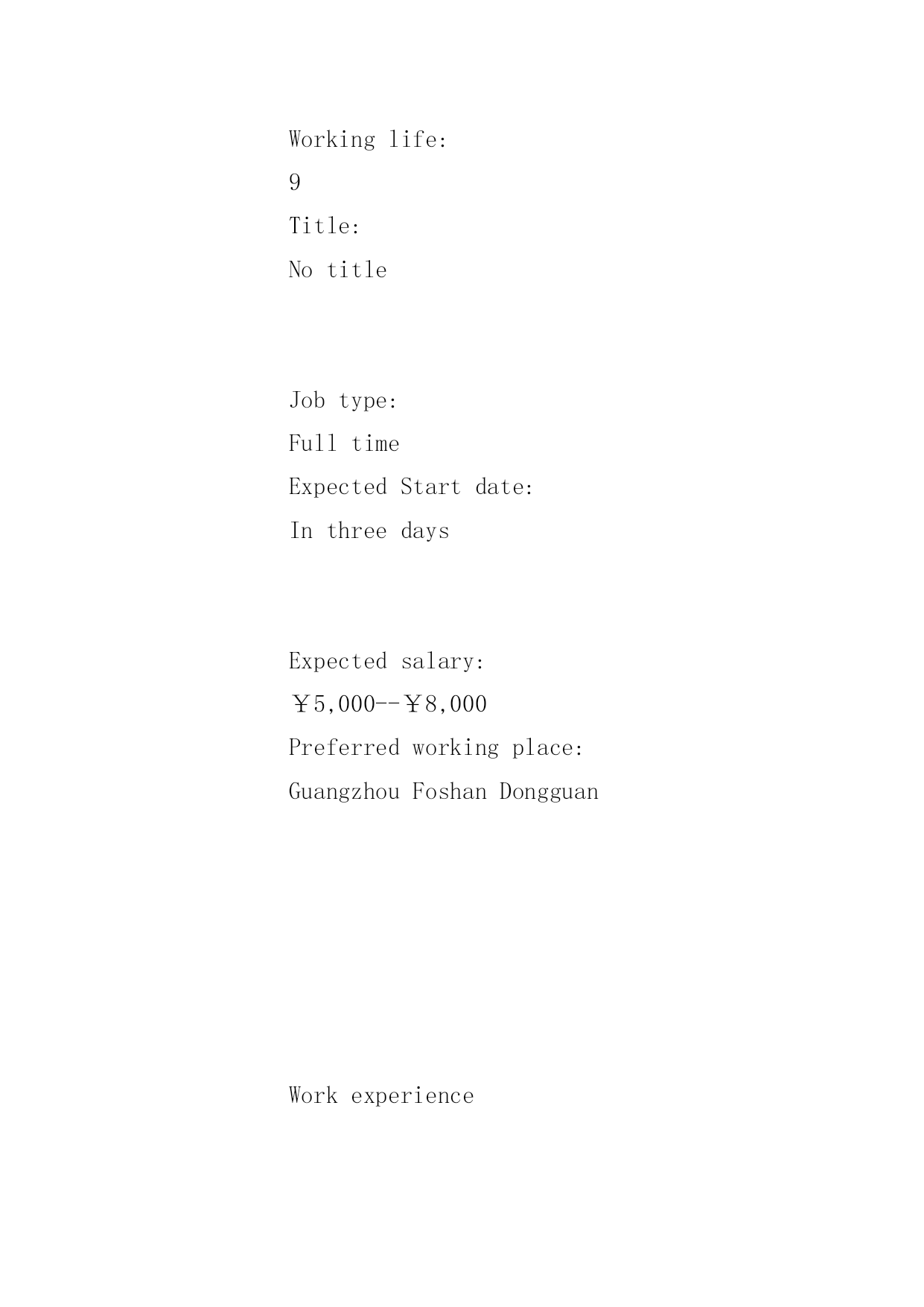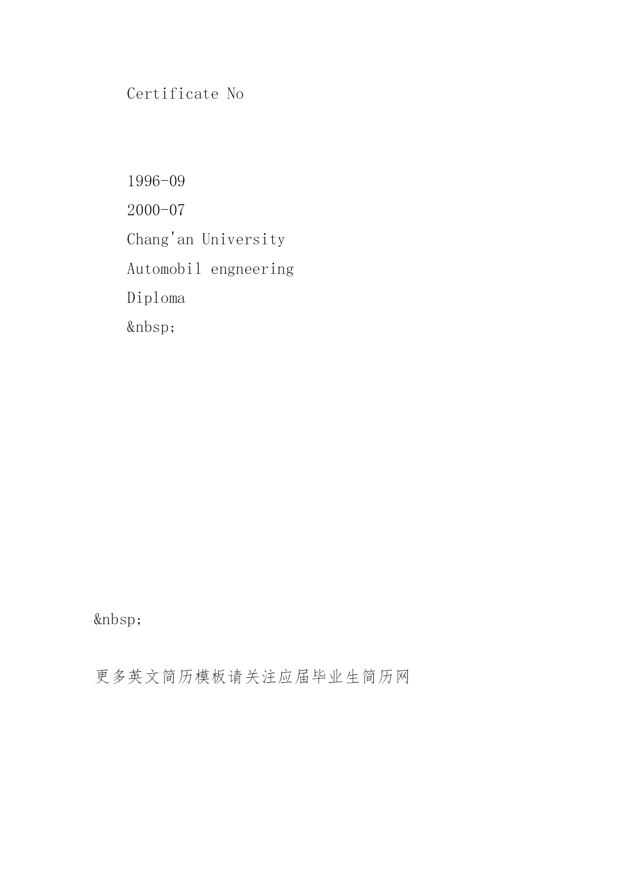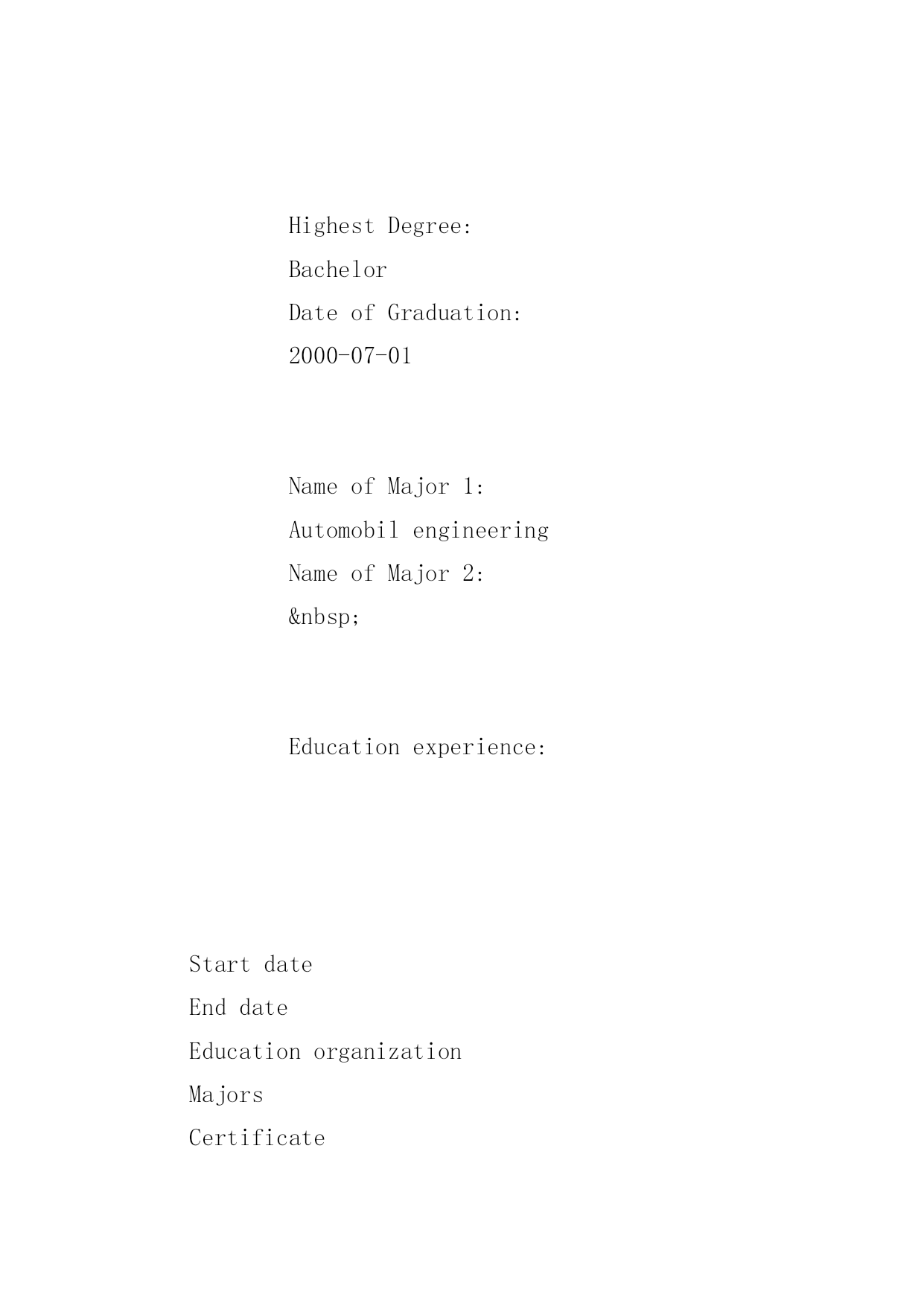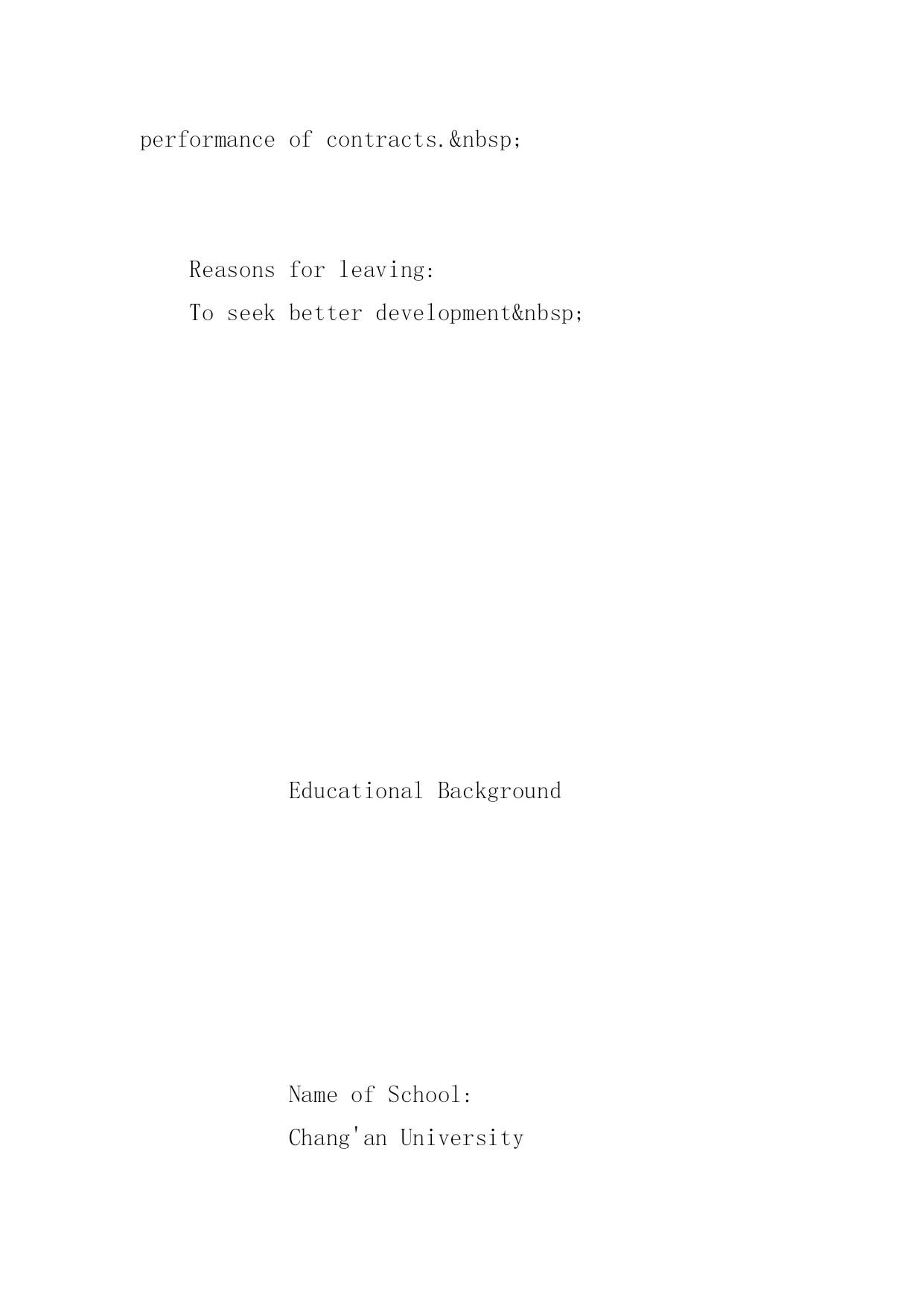 物流英文简历表格物流英文简历表格物流英文简历表格Name: Nationality:China(Mainland)CurrentPlace:GuangzhouHeight/Weight:170cm76kgMaritalStatus:SingleAge:32yearsCareerObjectiveApplicationtype:JobseekerPreferredjobtitle:Purchasingmanager/supervisor:PurchasingSupervisor、others:、others:Workinglife:9Title:NotitleJobtype:FulltimeExpectedStartdate:InthreedaysExpectedsalary:¥5,000--¥8,000Preferredworkingplace:GuangzhouFoshanDongguanWorkexperienceCompany'sname:Guanzhou***ElectricCo.,Ltd.Beginandenddate:2004-12-2010-06Enterprisenature:SolyforeignfundedenterprisesIndustry:Mechnical&elecricalequipment/electricalpower/powerJobTitle:PurchasingSupervisor Jobdescription:1.Ensurematerialsdeleveryontime.2.Meetcompany'sinventorytargetandensurecompany'scosttarget.3.Suppliers'management.4.Beresponsibleformonitoringenvironmentalelementsofmaterials. Reasonsforleaving:Companyrelocation Company'sname:GuangzhouAndaBearing Co.,Ltd.Beginandenddate:2002-09-2004-11Enterprisenature:PrivateenterprisesIndustry:Machinebuilding&equipmentJobTitle:PurchasingSupervisor Jobdescription:l.Arrangedday-to-dayworktostaffmembersinourdepartmentandassessedtheirsachievements.2.Maintainsmoothoperationofassemblyline.3.Developnewsuppliersandnegotiationpurchasingcontractsandrawmaterielprice.4.Suppierselection,evaluationandaudit.5.Maintaingoodrelationshipwithcorporationpartners.6.Ensurecompany'scosttarget. Reasonsforleaving:Toseekbetterdevelopment Company'sname:GuangzhouJunxingAutoPartsCo.,Ltd.Beginandenddate:2000-08-2002-08Enterprisenature:Industry:JobTitle:Buyer/PurchasingSpecialist/ Jobdescription:1.Beresponsibleformonitoringrawmaterials&indrectmaterialsourcingplan.2.Meetcompany'sinventorytarget.3.Closelymonitororderstatustoensureon-timeproductdelivery.4.Ensureallordersfromcommercialteamaretimelyandaccuratelyplaced.5.Identifyandassessnewsuppliers.6.Establishsuppliercontractandmonitorperformanceofcontracts. Reasonsforleaving:Toseekbetterdevelopment EducationalBac