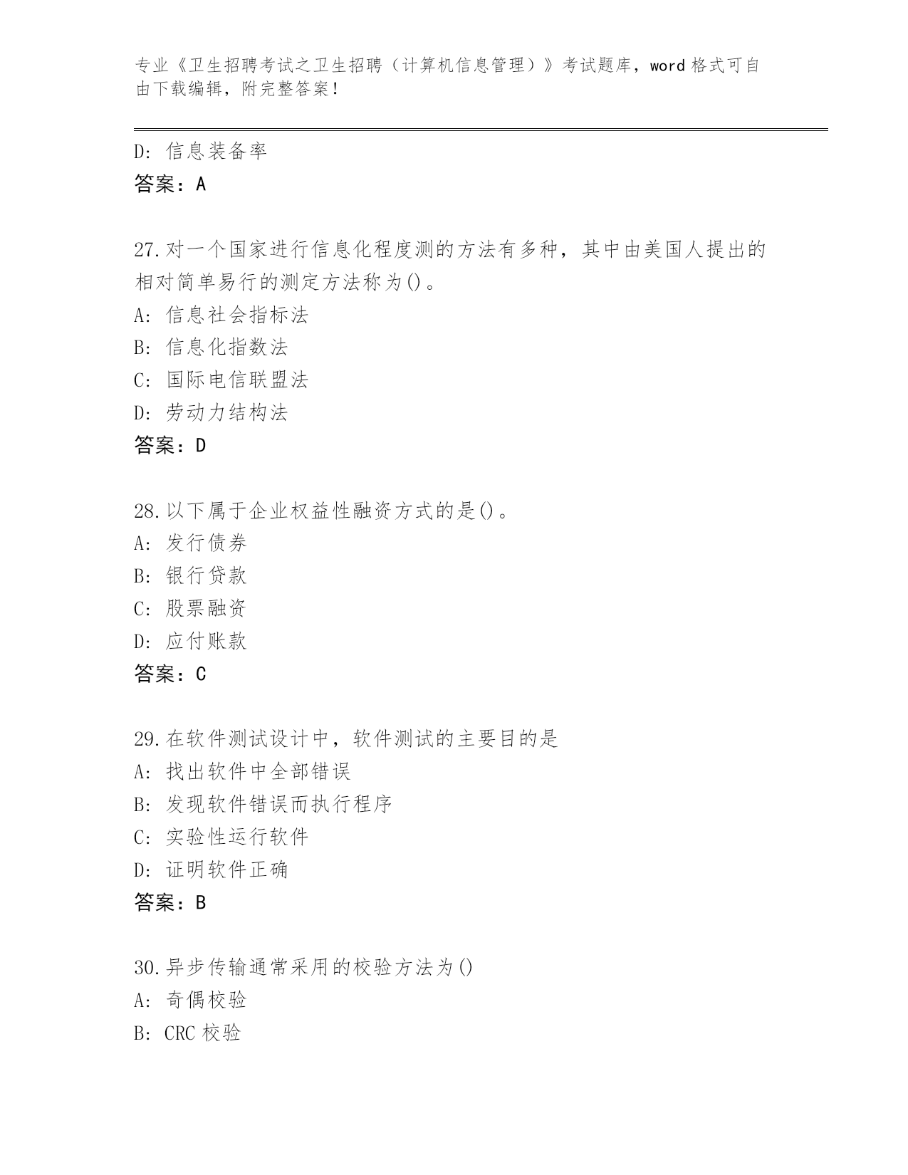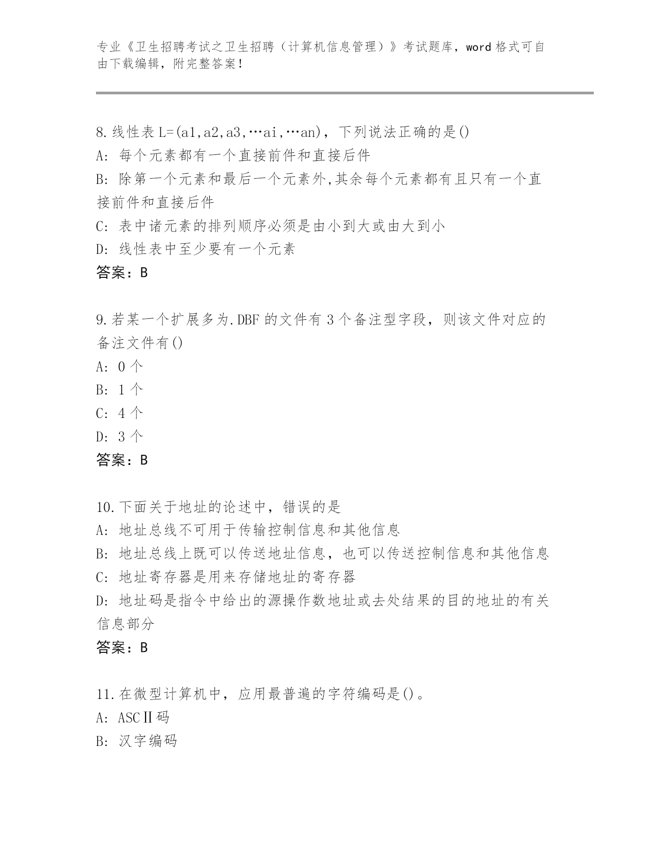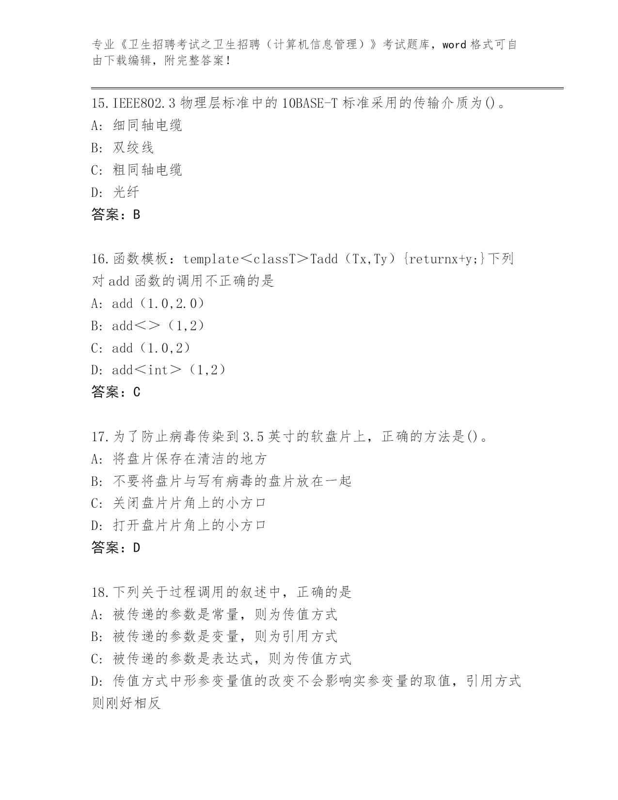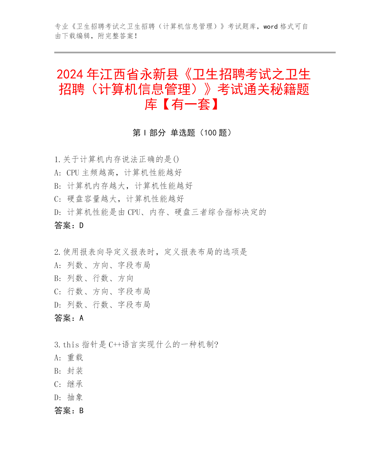 2024江西省《卫生招聘考试之卫生招聘(计算机信息管理)》资格考试通关秘籍题库加答案