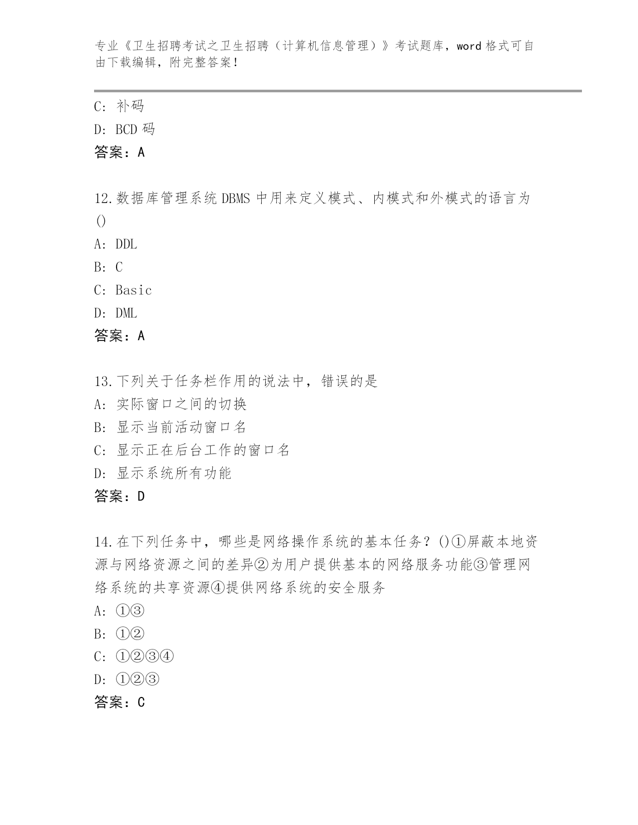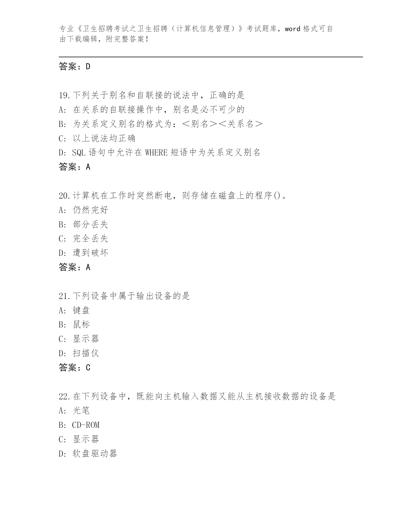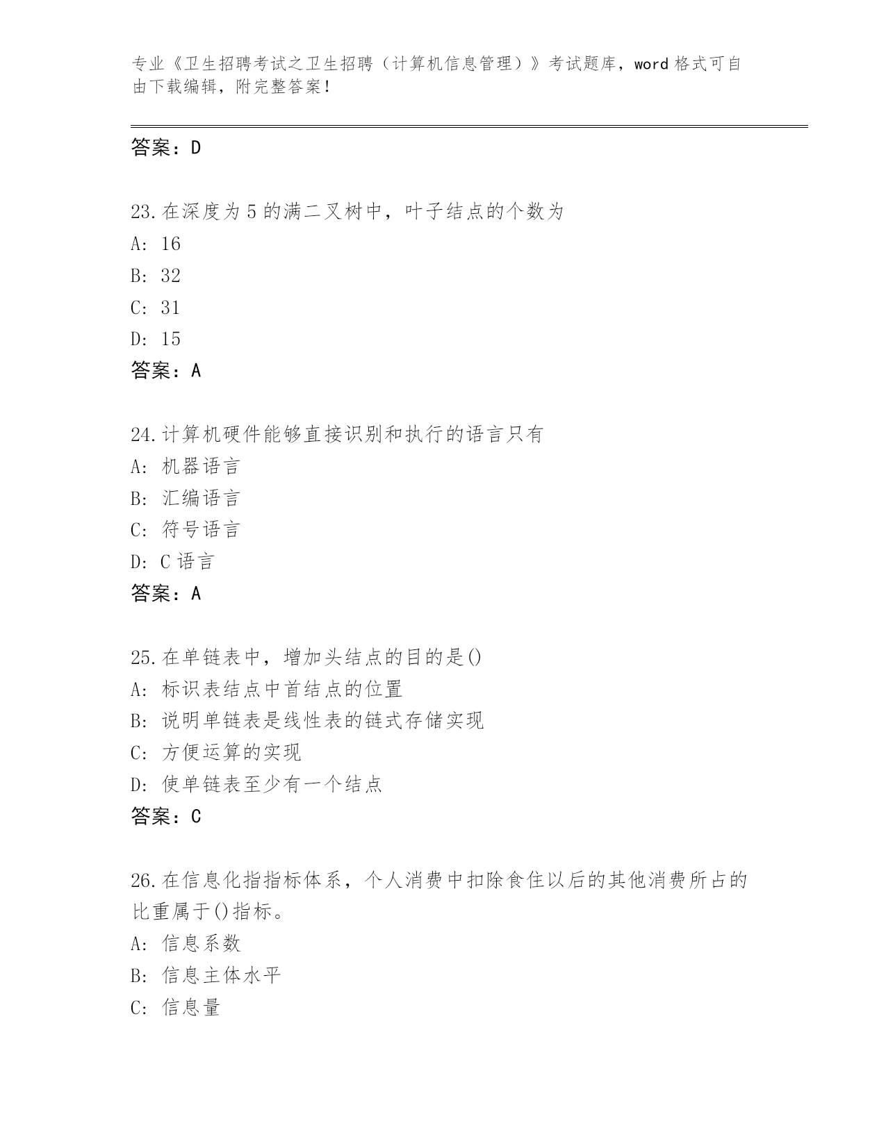 山东省2023-24年《卫生招聘考试之卫生招聘(计算机信息管理)》考试通关秘籍题库【有一套】