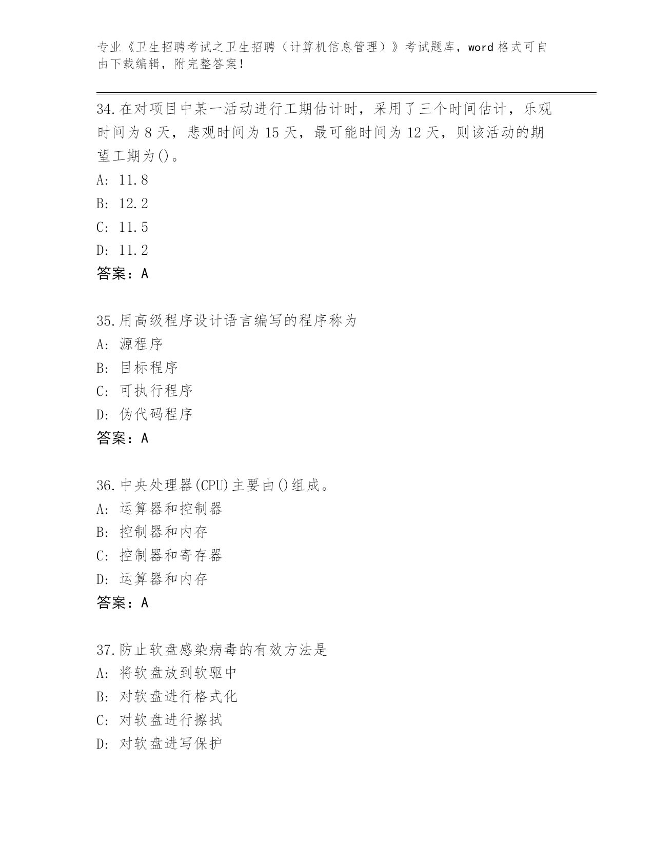 2024陕西省《卫生招聘考试之卫生招聘(计算机信息管理)》考试通关秘籍题库有答案