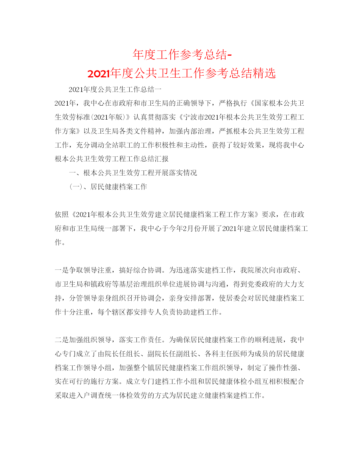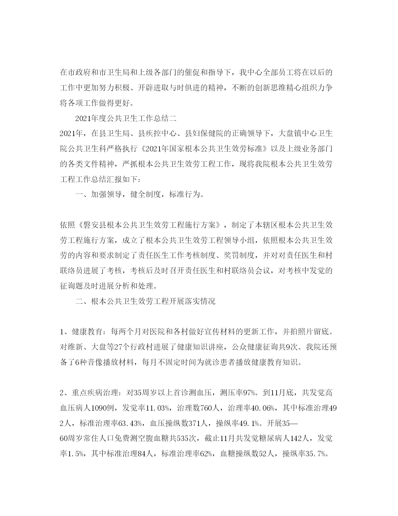 2022年度工作参考总结年度公共卫生工作参考总结精选