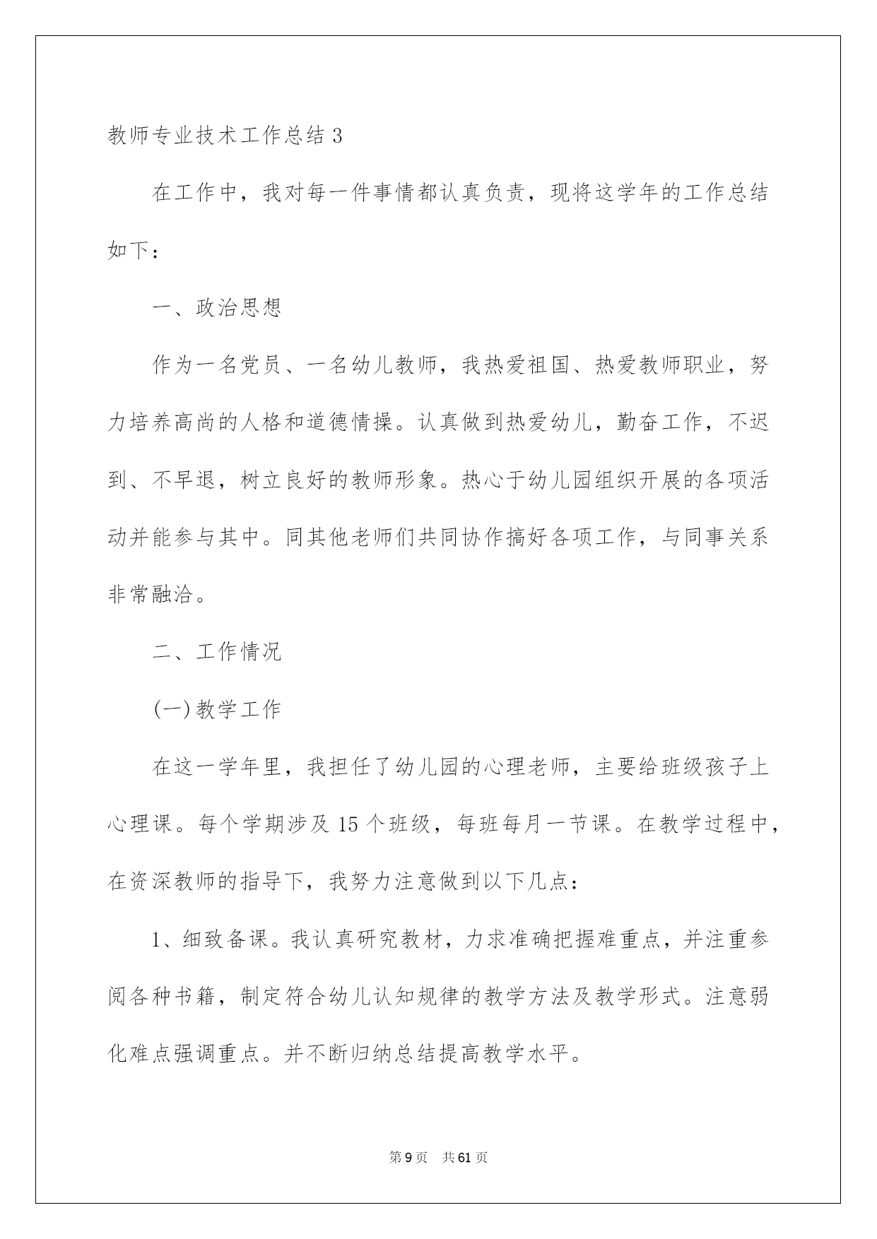第PAGE\*Arabic\*MERGEFORMAT61页共NUMPAGES\*Arabic\*MERGEFORMAT61页第PAGE\*MERGEFORMAT61页共NUMPAGES\*MERGEFORMAT61页第PAGE\*MERGEFORMAT61页共NUMPAGES\*MERGEFORMAT61页第PAGE\*MERGEFORMAT61页共NUMPAGES\*MERGEFORMAT61页第PAGE\*MERGEFORMAT61页共NUMPAGES\*MERGEFORMAT61页第PAGE\*MERGEFORMAT61页共NUMPAGES\*MERGEFORMAT61页第PAGE\*MERGEFORMAT61页共NUMPAGES\*MERGEFORMAT61页第PAGE\*MERGEFORMAT61页共NUMPAGES\*MERGEFORMAT61页第PAGE\*MERGEFORMAT61页共NUMPAGES\*MERGEFORMAT61页第PAGE\*MERGEFORMAT61页共NUMPAGES\*MERGEFORMAT61页第PAGE\*MERGEFORMAT61页共NUMPAGES\*MERGEFORMAT61页2022教师专业技术工作总结教师专业技术工作总结总结是把一定阶段内的有关情况分析研究,做出有指导性的经验方法以及结论的书面材料,它可以帮助我们有寻找学习和工作中的规律,我想我们需要写一份总结了吧。总结怎么写才不会千篇一律呢?下面是我为大家整理的教师专业技术工作总结,供大家参考借鉴,希望可以帮助到有需要的朋友。教师专业技术工作总结1一学年来,本人在教育教学工作中,始终坚持党的教育方针,面向全体学生,教书育人,为人师表,确立“以学生为主体”,“以培养学生主动发展”为中心的教学思想,重视学生的个性发展,重视激发学生的创造能力,培养学生德、智、体、美、劳全面发展,做到了工作责任心强,服从领导的分工积极做好本职工作,认真备课、上课、听课、评课,及时批改作业、讲评作业,做好课后辅导工作,广泛获取各种知识,形成比较完整的知识结构,严格要求学生,尊重学生,发扬教学民主,使学生学有所得,不断提高,从而不断提高自己的教学水平,并顺利完成教育教学任务。为了更好地发扬成绩,纠正不足,现将一年来的工作做一总结1、要提高教学质量,关键是上好课。为了上好课,我做了下面的工作:在教学工作方面,优化教学方法,按常规做好课前、课中、课后的各项工作,认真钻研教材,课堂教学真正体现“教师为主导,学生为主体”的教学思想,并结合学校德育科的对小学生心理健康教育,发展学生心理;创设情境,诱发学生的认知需求和创新欲望,使学生从情感、思维和行为上主动参与学习;在培养学生形象和抽象、分析和综合思维能力的同时,有意识地培养学生求新、求异、聚合、发散等创新学习活动所要求的思维方式和方法;以学生创新学习为主线组织课堂教学活动,鼓励学生主动参与、主动探索、主动思考、主动操作、主动评价,运用启发学习、尝试学习、发现学习、合作学习等方法,在教学中求创新,在活动中促发展,课堂教学重视学生的训练,精心设计练习作业,练习作业有层次有坡度,对学生的作业严格要求,培养良好的作业习惯。在进行计算能力训练时,我要求学生先要认真审题,边审题边思考:“题抄对了没有?先算什么?再算什么?能否简算?”计算过程中要求学生做到一步一回头,进行自觉检验。如果发现个别学生做错了题,及时要求学生纠正,自觉分析造成错误的原因,防止再错,养成认真计算的习惯。平时要求学生对题目中的数字、小数点、运算符号必须写得清楚工整、规范,作业做完后,要养成自觉检验的习惯,端正认真学习、刻苦钻研的学习态度,培养独立思考和克服困难的精神。2、要提高教学质量,还要做好课后辅导工作,部分学生缺乏自觉性,经常不能按时完成作业,甚至有的学生欠交作业,针对这种问题,我就进行对学生进行思想教育。树立学习的信心,有的学生学习成绩不理想,并不是他们没有潜能,而是不相信自己有潜能,在经历了一两次失败和挫折后,对自己失去了信心。因此形成“自己脑子笨”这种意识,久而久之,形成习惯,一遇到问题,先想自己不行,对自己没信心,结果自己什么都学不成,什么都不想学,作业不会做,造成成绩低下。我所教六年级的差生比较多,他们基础比较差,学习数学很吃力,多次测验都没有及格过。他们主要是对数学产生了畏难情绪。针对这种情况,在课堂上我有意识地通过一些浅显易懂的问题为他们提供发言机会,让他们到黑板上做题,给他们自我表现的机会,同时对他们在学习中的点滴进步,我都给以表扬和鼓励,使他们逐步树立起学习的信心。这样