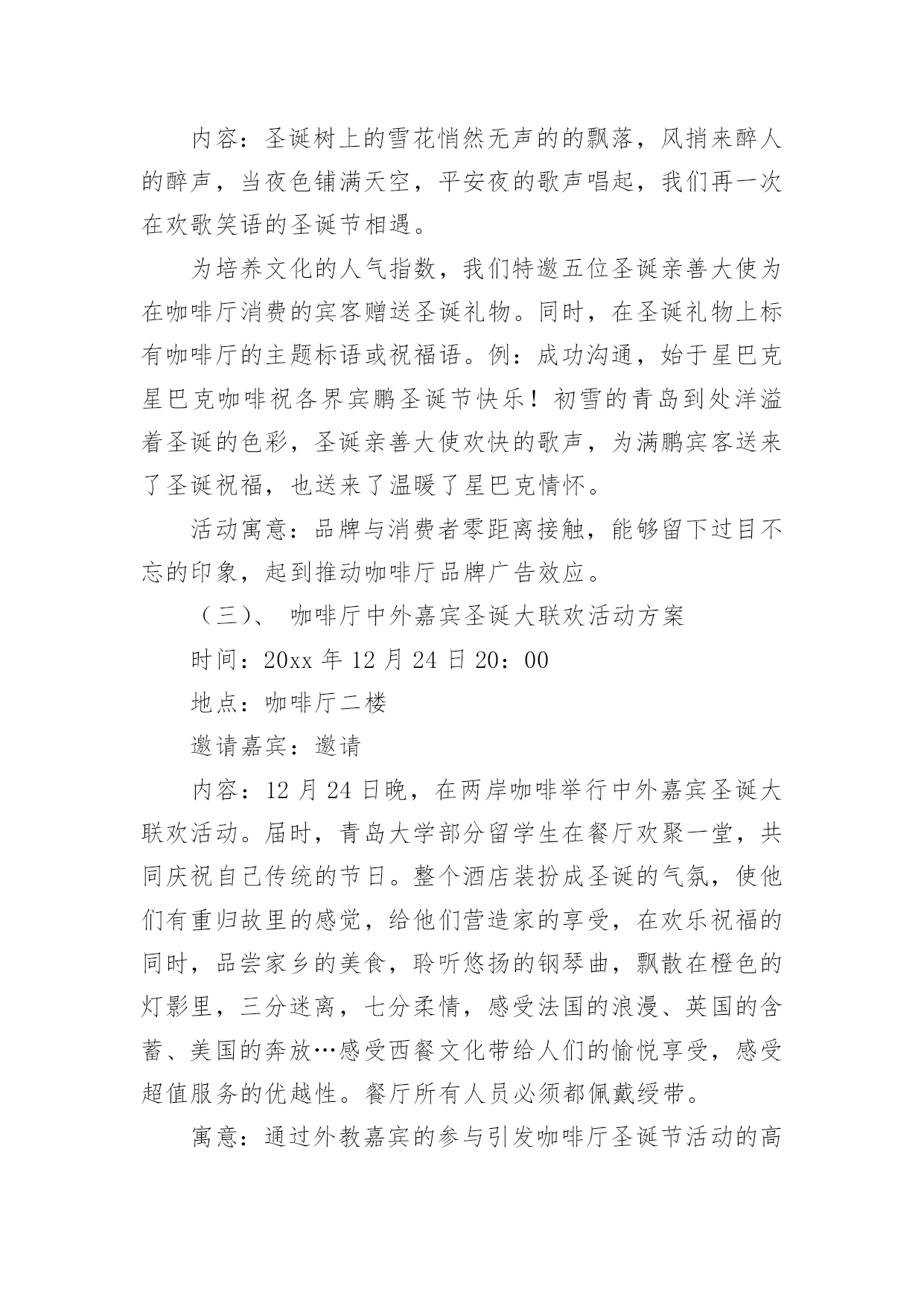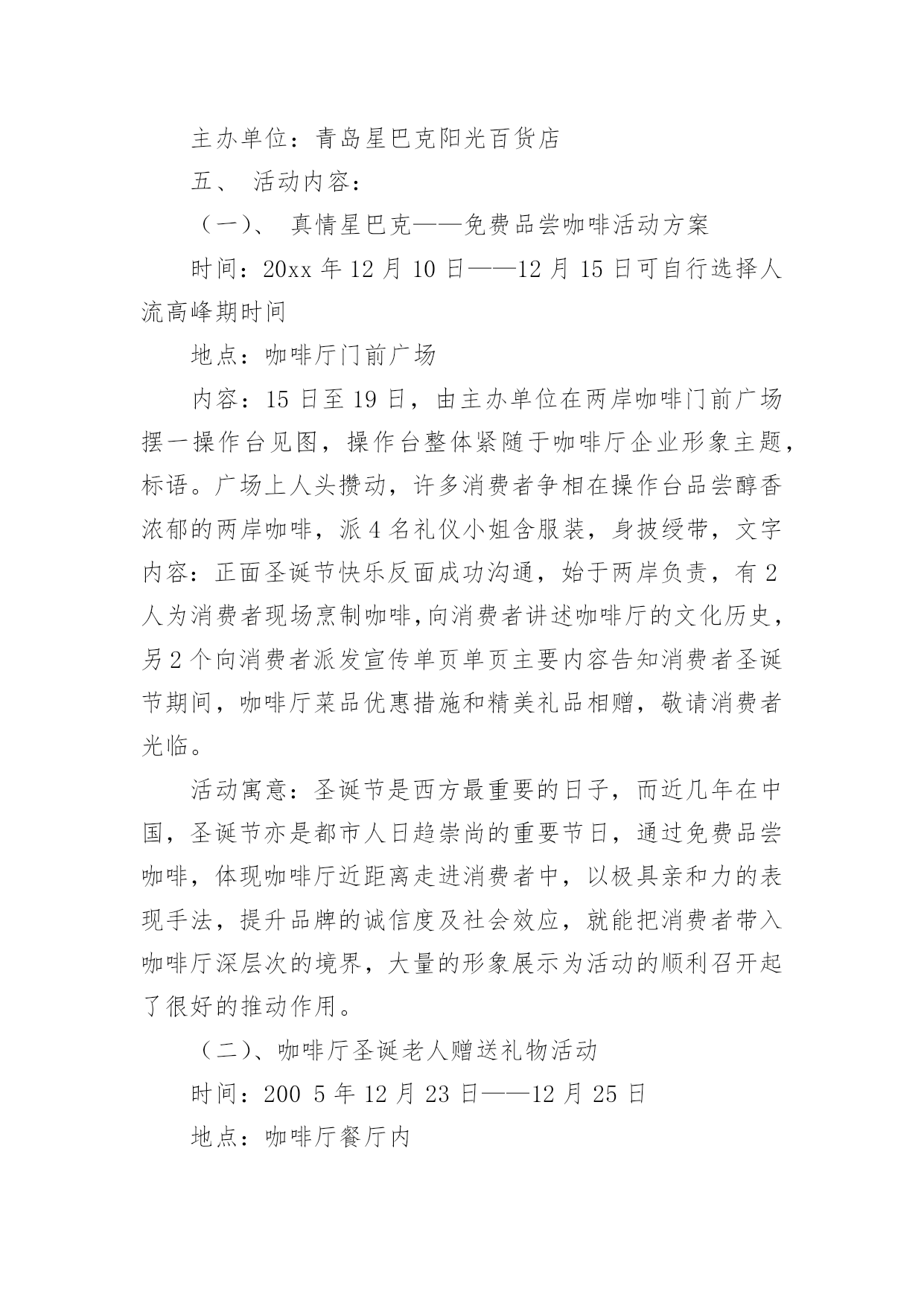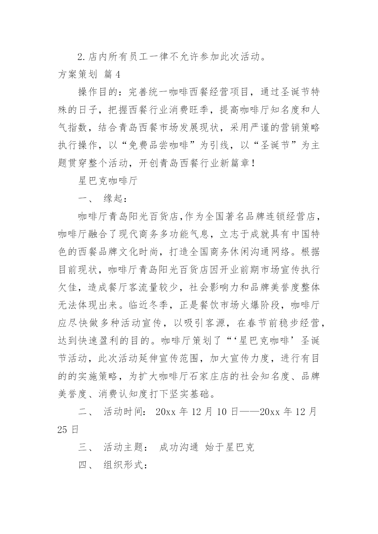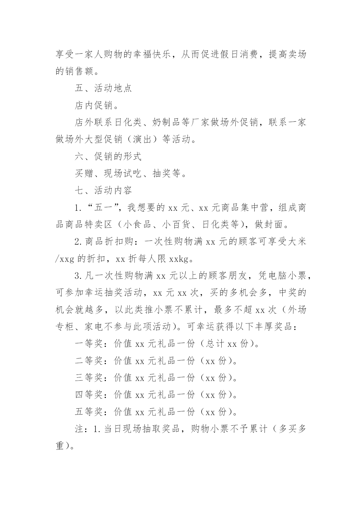 方案策划【推荐】方案策划集合5篇为了确保事情或工作安全顺利进行,常常需要提前制定一份优秀的方案,方案是阐明行动的时间,地点,目的,预期效果,预算及方法等的书面计划。优秀的方案都具备一些什么特点呢?以下是小编为大家整理的方案策划7篇,仅供参考,欢迎大家阅读。方案策划篇1活动目的:通过活动,让学生们进一步理解我国的国旗、国徽和国歌。赞美我们美丽的祖国,热爱祖国。从中树立起自己的理想,并为之努力奋斗,好好学习科学文化知识。活动准备:课件,音乐,电子琴,排演节目活动过程:中队长:集合。整队。(报告人数,请辅导员参加活动)出旗。唱队歌。主持人甲:陈心怡主持人乙:俞上主持人甲:祖国!多么神圣的名字。祖国!我们可爱的母亲。主持人乙:我们为伟大的中华民族而骄傲,我们为拥有这样的伟大祖国而自豪。主持人甲乙合:六(4)中队《我为祖国歌唱》主题班队现在开始。播放歌曲《春光美》请听诗朗诵《彩色的中国》。《彩色的中国》A:轻轻的打开地图。B:我第一眼看到了彩色的中国,碧绿的草原。A:金色的是沙漠。B:蓝蓝的是大海。A:弯弯的是江河。B:在我们祖国的版图上,一片五颜六色。A:就像盛开的鲜艳花朵。B:面对这美丽的图画,我们放声歌唱;AB::我爱您--中国!听到这么优美的歌曲你们的眼前可曾出现美丽的春光图画?小组交流:祖国的春天北京组:配图片长城长城修筑的历史悠久,工程雄伟浩大,是世界少有的奇迹。不到长城非好汉。长城东西南北交错,绵延伏于我们伟大祖国辽阔的土地上。它好像一条巨龙,翻越巍巍群山,穿过茫茫草原,跨过浩瀚的沙漠,奔向苍茫的大海。长城是我国古代劳动人民创造的奇迹。自秦始皇开始,修筑长城一直是一项大工程。四川组:乐山大佛乐山大佛位于四川省乐山市郊,建于唐代。依山开凿大佛一座,通高71米,脚背宽8.5米,为当今世界第一大佛。大佛为一尊弥勒座像,雍容大度,气魄雄伟,被诗人誉为“山是一尊佛,佛是一座山”。河南组:江苏组:西藏组:新疆组:香港组:……主持人乙:站在祖国的地图前,好像看见妈妈的`照片,祖国就是我亲爱的妈妈,我在祖国的怀抱里长大,多么幸福、多么温暖。下面让我们来领略一点祖国风光。方案策划篇2一、指导思想透过开展庆祝“六一”活动,体现一种用心向上、乐观进取的精神,使队员在用心的参与中体验群众合作的快乐,开展以丰富多彩的活动,激发学生热爱校园、热爱学习、热爱生活的情感,欢度一个能回味、有好处的六一儿童节。二、活动主题“我的六一,我做主”三、活动资料本次庆祝“六一儿童节”以上海世博会为契机,以玉树地震为教育主线,透过开展“祖国发展我成长”黑板报评比、“庆六一书画展”评比。庆六一合唱比赛,“快乐童年我做主”庆六一文艺汇演四个一活动来展现我们队员的风采。三、活动时间:20xx年5月18日——20xx年6月1日四、各部门工作安排:1、活动总负责:xxx2、活动安排:xxx3、后勤总负责:xxx(包括物品购买、分发等)4、安全负责人:xxx5、拍照:xxx6、音响:xxx7、节目编排:xxx7、环境布置:庆祝大会会场布置(吴清强张春雨负责)。五、具体活动安排:1、黑板报评比:5月18日周前会上布置,到5月27日统一评比。(吴清强负责)2、书画展评比:5月12日进行展板布置,书法展要求16开写字纸,绘画要求8开纸,对学生优秀作品做成展板进行展示于5月12日前上交。(教导处负责)3、合唱比赛:5月20日五、六年级每班最低20人,国歌必唱歌曲,再唱一首自选歌曲。(教导处负责)4、庆祝六一文艺汇演:8:00全校举行游街活动,由校园出发向西直镇政府回到,方队顺序:国旗、军乐队、花束队、花环队、少先队旗、各班方队、彩旗队。回到到校园后举行庆六一文艺汇演。六、活动要求:1、五月下旬请各班主任老师根据校园总方案设计用心准备,布置好具体的工作,个性是班级文艺庆祝活动的节目安排,各班级庆祝方案于5月25日前上交政教处。3、游街活动务必从安全性、观赏性、操作性等角度思考设计具体项目。6月1日,全体教师个性留心维护好安全工作。方案策划篇3“五一”节将是我们面对的第二个销售旺季,在此期间,“五一”长假,客流增加,需求旺盛,为了更好的抓住这一契机,特推出本次特别企划活动,让我们来看看这篇五一劳动节商场活动设计的具体内容吧!一、活动背景春节过后,“五一”节将是我们面对的第二个销售旺季,在此期间,“五一”长假,客流增加,需求旺盛,为了更好的抓住这一契机,特推出本次特别企划活动,本次促销活动将通过一定的低价敏感商品及应季商品的促销,拉动周遍顾客群,稳固周遍顾客群,从而树立好当家的形象。二、活动主题家的感觉,价的乐趣。三、活动时间xx月xx日~xx月xx日。四、活动目的让顾客朋友们度过一个轻松、休闲、娱乐、省钱的假期,享受一家人购物的幸福快乐,从而促进假日消费,提高卖场的销售额。五、活动地点店