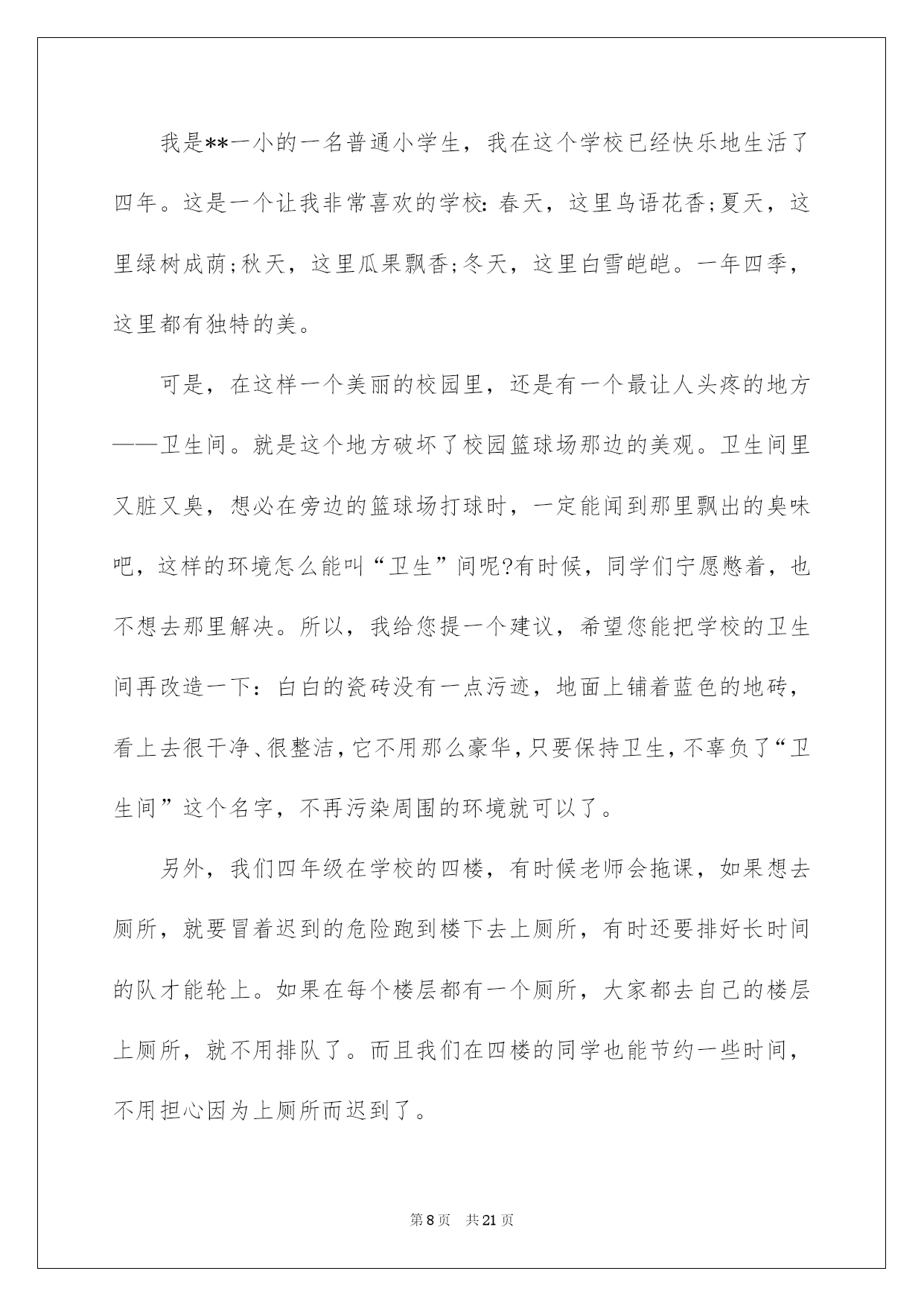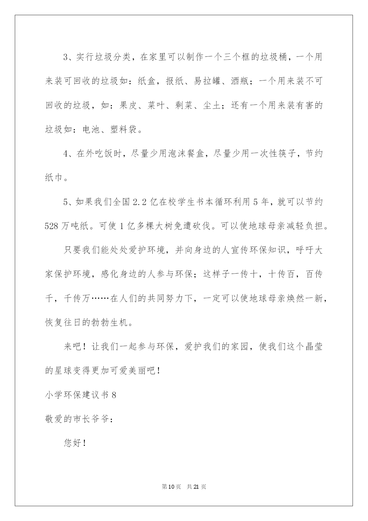 第PAGE\*Arabic\*MERGEFORMAT21页共NUMPAGES\*Arabic\*MERGEFORMAT21页第PAGE\*MERGEFORMAT21页共NUMPAGES\*MERGEFORMAT21页第PAGE\*MERGEFORMAT21页共NUMPAGES\*MERGEFORMAT21页第PAGE\*MERGEFORMAT21页共NUMPAGES\*MERGEFORMAT21页第PAGE\*MERGEFORMAT21页共NUMPAGES\*MERGEFORMAT21页第PAGE\*MERGEFORMAT21页共NUMPAGES\*MERGEFORMAT21页第PAGE\*MERGEFORMAT21页共NUMPAGES\*MERGEFORMAT21页第PAGE\*MERGEFORMAT21页共NUMPAGES\*MERGEFORMAT21页第PAGE\*MERGEFORMAT21页共NUMPAGES\*MERGEFORMAT21页第PAGE\*MERGEFORMAT21页共NUMPAGES\*MERGEFORMAT21页第PAGE\*MERGEFORMAT21页共NUMPAGES\*MERGEFORMAT21页2022小学环保建议书小学环保建议书在我们平凡的日常里,建议书的使用越来越广泛,建议书在写作上具有一定的格式要求。你写建议书时总是没有新意?以下是我帮大家整理的小学环保建议书,仅供参考,大家一起来看看吧。小学环保建议书1尊敬的环保局局长:你好!我是柯桥轻纺陈的一名六年级学生,我冒昧的给你写了一封信,是有关于环保和环境的问题,今天我想给你提些意见。地球是我们的家,也是我们的亲生“母亲。”如果没有了地球,就没有资源,没有了资源我们人类就无法生存。而地球母亲无私的供我们吃、穿,让我们人类能生存下去,我们本应该保护地球保护自然资源。但我们看到的并不是这样,伐木工人无节制的砍倒一棵又一棵的树木,却不懂一手种树,一手砍树的道理,导致森林面积大幅度流失。人类也无节制地浪费水,洗手时喜欢把水开到最大,使水花四溅,浪费水的现象在我们身边一波又一波的出现,而导致地球上的淡水也大幅度的减少。而且的矿物开采量日渐加大,就像水一样,而被我们一口一口的“喝掉,”据统计煤炭只有30%如果在不无节制地开采,矿物迟早被砍光的。现在的科技非常发达,各种各样的化工工厂建起,每一条离这进的小溪都被废水给污染了,每一个人一进过这都要捂着鼻子……这样的例子随处可见,为此我提出以下条件:一、多植树,禁止乱砍伐,这样可以增加绿化面积,防止水土流失。二、少用一次性筷子。三、尽量使用可快速溶解的塑料,这样可以减少白色垃圾。四、不用的废水可以冲厕所,洗菜水可以浇花。让我们携手共建家园,为国家作贡献。中国轻纺城小学的一名学生20xx年11月8日小学环保建议书2敬爱的市长爷爷:您好!我是生活在这里的一名五年级的小学生,您也许会感到奇怪,一个小学生怎么会给市长写信呢?我写信是因为我热爱这里,同情这里,关心这里,爱护这里。市长爷爷,我热爱这里!黝黑的土壤,为人类提供了各种各样的食物;美丽的松花江,赖以生存的水源;埋藏在这里的石油、煤和其他矿产,为咱们提供了生活的能源。市长爷爷,我同情这里!由于人类的无知和目光短浅,对这里进行着长期的无情伤害:滥砍乱伐,破坏森林,使这里的环境受到严重破坏;滥挖乱采,严重地破坏矿产资源,这些不可再生的资源的过渡浪费和消耗是对子孙后代的不负责任。唉!人们无情地伤害着地球,必然会受到大自然无情地惩罚。市长爷爷我想对您说:“虽然人们已经把每年的6月5日定为“世界环境日”,但是真正为地球着想的人不多!每年的这一天,我们小学生就像过年一样地兴奋,我们都打扮得干干净净,与小伙伴们一起参加环保活动。希望您也能来加入我们的队伍中!关心环保,人人有责,行动起来,每时每刻!建议人:xxx20xx年x月x日小学环保建议书3尊敬的校长、老师们:最近我们在值日中发现了一些经常存在的垃圾,例如:糖果纸、碎纸屑、烟蒂、喝完的矿泉水瓶等。我们既有些抱怨又疑惑,糖果按理是不能带进校园的,怎么会出现在这?烟蒂又是怎么回事,学生是不可能抽烟的,那只可能是老师了。校园里不是有垃圾桶的么,矿泉水瓶怎么会出现在茂密的丛林里?一个接着一个的问题向我们涌来。除此之外,我们还发现厕所里的水龙头不停的流出水,而用水人却不知去向;地上经常出现一些写着字的纸张等。这些到底是谁做的呢?答案不攻自破,这都是人为。有调皮捣蛋的学生趁着老师不注意把糖果带进了校园;有些学生不讲文明的把矿泉水瓶扔进了花坛;某个老师不小心把烟蒂随处乱扔……对于这些