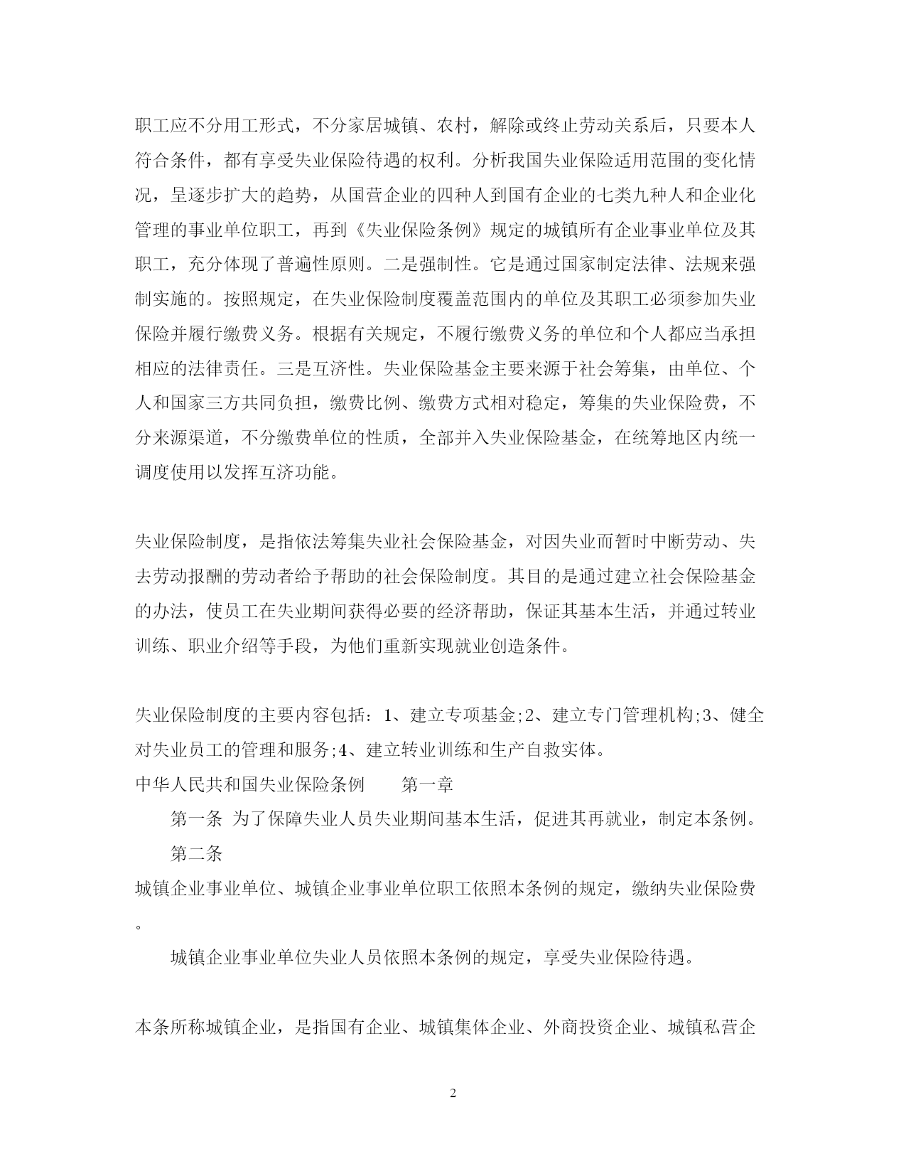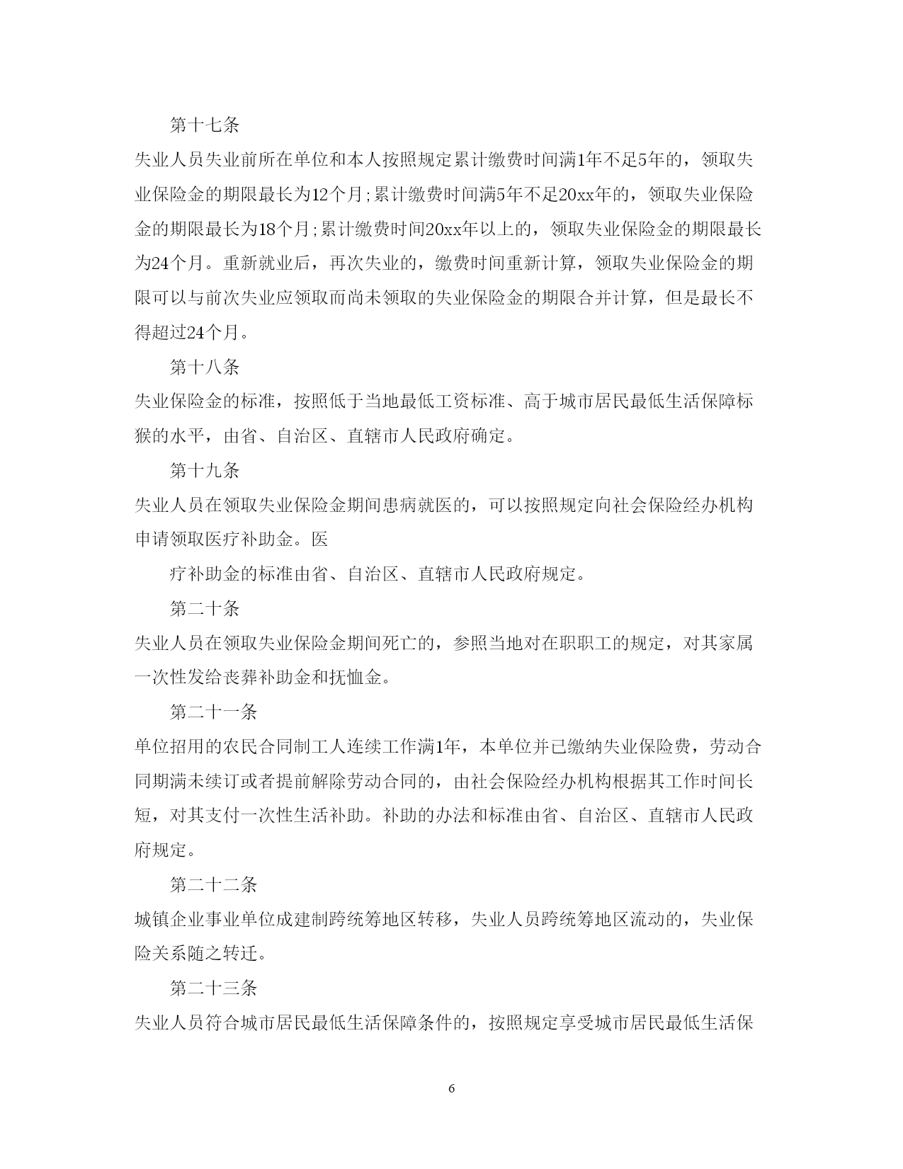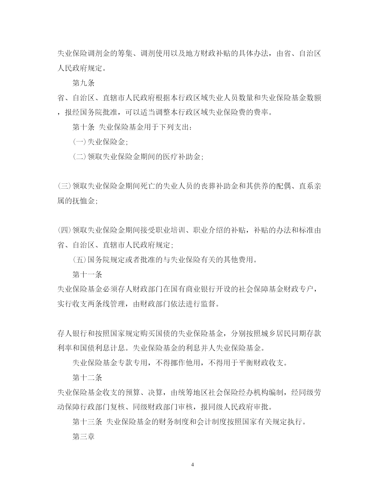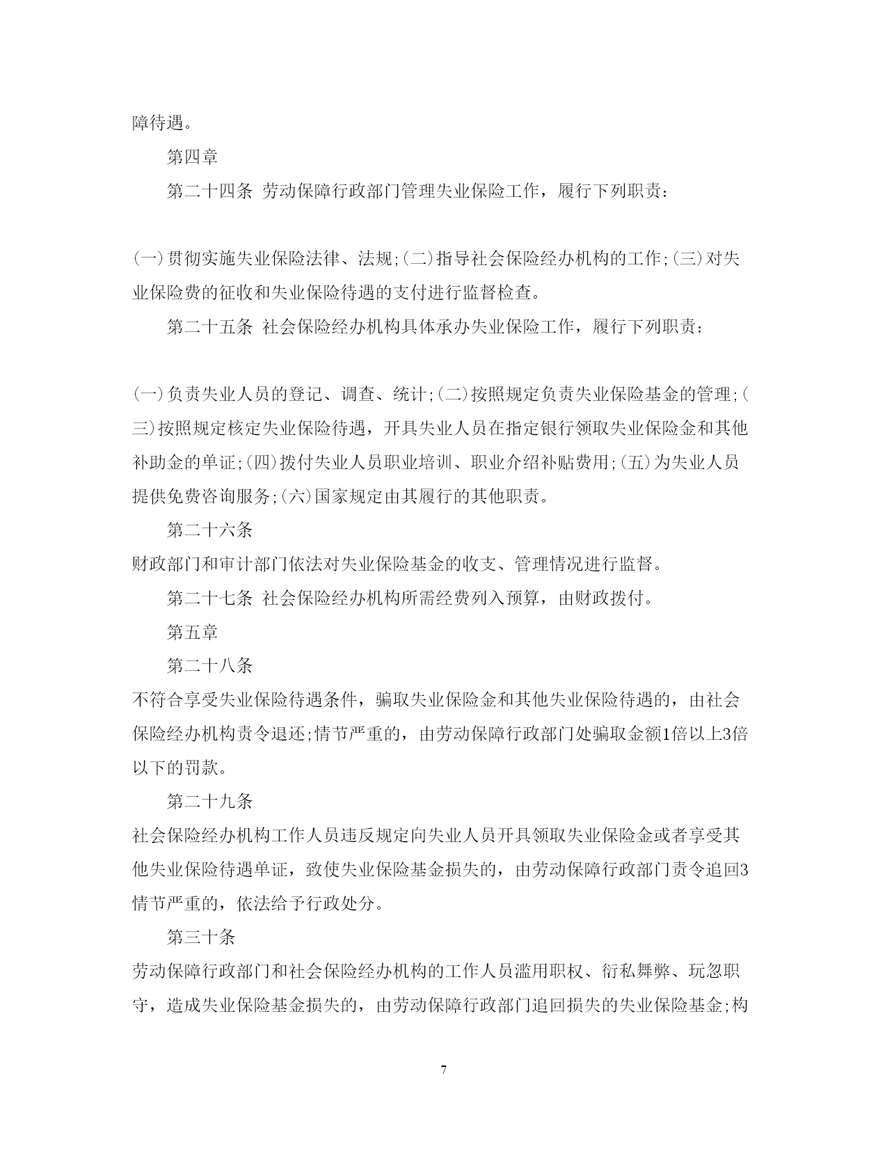 此资料由网络收集而来,如有侵权请告知上传者立即删除。资料共分享,我们负责传递知识。PAGEPAGE8失业保险条例失业保险制度是国家通过立法强制实施,由社会集中建立失业保险基金,对非因本人意愿中断就业失去工资收入的劳动者提供一定时期的物质帮助及再就业服务的一项社会保险制度。下文是小编收集的失业保险条例,欢迎阅读!失业保险条例是什么失业保险既是社会保障体系的重要组成部分,又是形成市场就业机制的必要条件。为充分发挥失业保险的作用,进一步改革和完善失业保险制度,劳动和社会保障部成立后,在原有工作的基础上,与有关部门密切结合,加快了制订新的失业保险行政法规节奏,经过广泛征求意见、反复研究论证,向国务院上报了《失业保险条例》(草案)。1998年12月16日,国务院常务会议通过,并于1999年1月22日,发布了国务院第258号令,颁布了《失业保险条例》。《条例》吸取了我国失业保险制度建立和发展的实践经验,借鉴了国外有益做法,在许多方面做了重大调整,体现了社会主义市场经济对失业保险制度的要求,体现了失业保险制度服务改革和稳定大局的精神,为形成具有中国特色的基本完善的失业保险制度打下了坚实基础。失业保险制度是国家通过立法强制实施,由社会集中建立失业保险基金,对非因本人意愿中断就业失去工资收入的劳动者提供一定时期的物质帮助及再就业服务的一项社会保险制度。它是社会保障体系的重要组成部分,是社会保险的重要项目之一。失业保险具有如下几个主要特点:一是普遍性。它主要是为了保障有工资收入的劳动者失业后的基本生活而建立的,其覆盖范围包括劳动力队伍中的大部分成员。因此,在确定适用范围时,参保单位应不分部门和行业,不分所有制性质,其职工应不分用工形式,不分家居城镇、农村,解除或终止劳动关系后,只要本人符合条件,都有享受失业保险待遇的权利。分析我国失业保险适用范围的变化情况,呈逐步扩大的趋势,从国营企业的四种人到国有企业的七类九种人和企业化管理的事业单位职工,再到《失业保险条例》规定的城镇所有企业事业单位及其职工,充分体现了普遍性原则。二是强制性。它是通过国家制定法律、法规来强制实施的。按照规定,在失业保险制度覆盖范围内的单位及其职工必须参加失业保险并履行缴费义务。根据有关规定,不履行缴费义务的单位和个人都应当承担相应的法律责任。三是互济性。失业保险基金主要来源于社会筹集,由单位、个人和国家三方共同负担,缴费比例、缴费方式相对稳定,筹集的失业保险费,不分来源渠道,不分缴费单位的性质,全部并入失业保险基金,在统筹地区内统一调度使用以发挥互济功能。失业保险制度,是指依法筹集失业社会保险基金,对因失业而暂时中断劳动、失去劳动报酬的劳动者给予帮助的社会保险制度。其目的是通过建立社会保险基金的办法,使员工在失业期间获得必要的经济帮助,保证其基本生活,并通过转业训练、职业介绍等手段,为他们重新实现就业创造条件。失业保险制度的主要内容包括:1、建立专项基金;2、建立专门管理机构;3、健全对失业员工的管理和服务;4、建立转业训练和生产自救实体。中华人民共和国失业保险条例第一章第一条为了保障失业人员失业期间基本生活,促进其再就业,制定本条例。第二条城镇企业事业单位、城镇企业事业单位职工依照本条例的规定,缴纳失业保险费。城镇企业事业单位失业人员依照本条例的规定,享受失业保险待遇。本条所称城镇企业,是指国有企业、城镇集体企业、外商投资企业、城镇私营企业以及其他城镇企业。第三条国务院劳动保障行政部门主管全国的失业保险工作。县级以上地方各级人民政府劳动保障行政部门主管本行政区域内的失业保险工作。劳动保障行政部门按照国务院规定设立的经办失业保险业务的社会保险经办机构依照本条例的规定,具体承办失业保险工作。第四条失业保险费按照国家有关规定征缴。第二章第五条失业保险基金由下列各项构成:(一)城镇企业事业单位、城镇企业事业单位职工缴纳的失业保险费;(二)失业保险基金的利息;(三)财政补贴;(四)依法纳入失业保险基金的其他资金。第六条城镇企业事业单位按照本单位工资总额的2%缴纳失业保险费。城镇企业事业单位职工按照本人工资的1%缴纳失业保险费。城镇企业事业单位招用的农民合同制工人本人不缴纳失业保险费。第七条失业保险基金在直辖市和设区的市实行全市统筹;其他地区的统筹层次由省、自治区人民政府规定。第八条省、自治区可以建立失业保险调剂金。失业保险调剂金以统筹地区依法应当征收的失业保险费为基数,按照省、自治区人民政府规定的比例筹集。统筹地区的失业保险基金不敷使用时,由失业保险调剂金调剂、地方财政补贴。失业保险调剂金的筹集、调剂使用以及地方财政补贴的具体办法,由省、自治区人民政府规定。第九条省、自治区、直辖市人民政府根据本行政区域失业